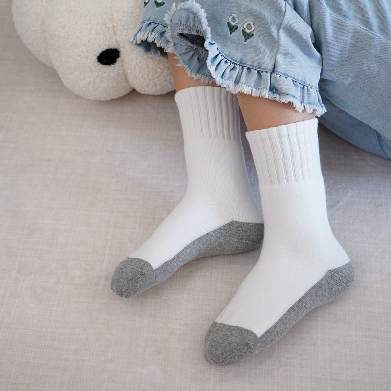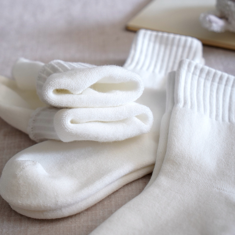 도매 가을과 겨울 기모 두꺼운 어린이 양말 따뜻한 테리 양말 뼈없는 중간 튜브 양말 얼룩 방지 흰색 학생 양말