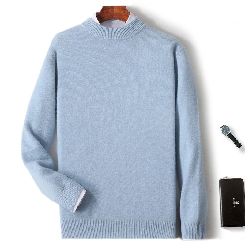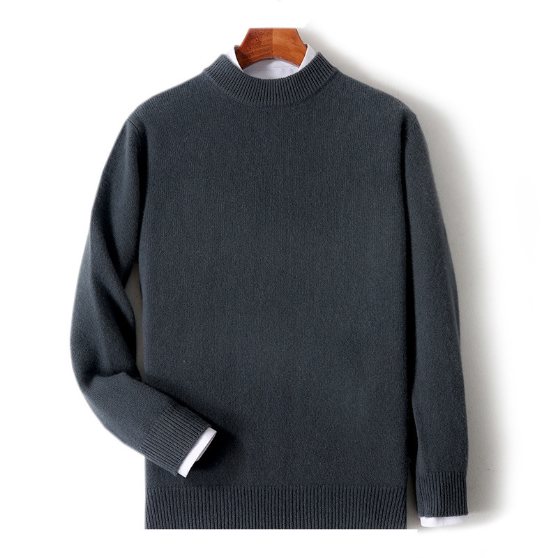순양모 스웨터 남성용 2025 가을 겨울 신상 루즈핏 두꺼운 반하이넥 풀오버 단색 캐주얼 니트 스웨터 베이스웨어