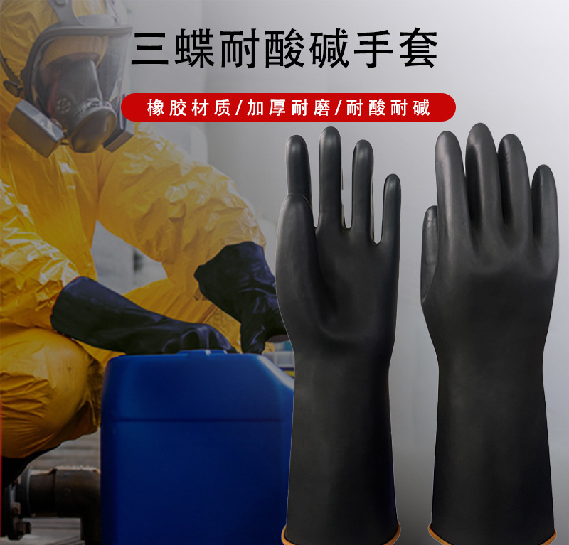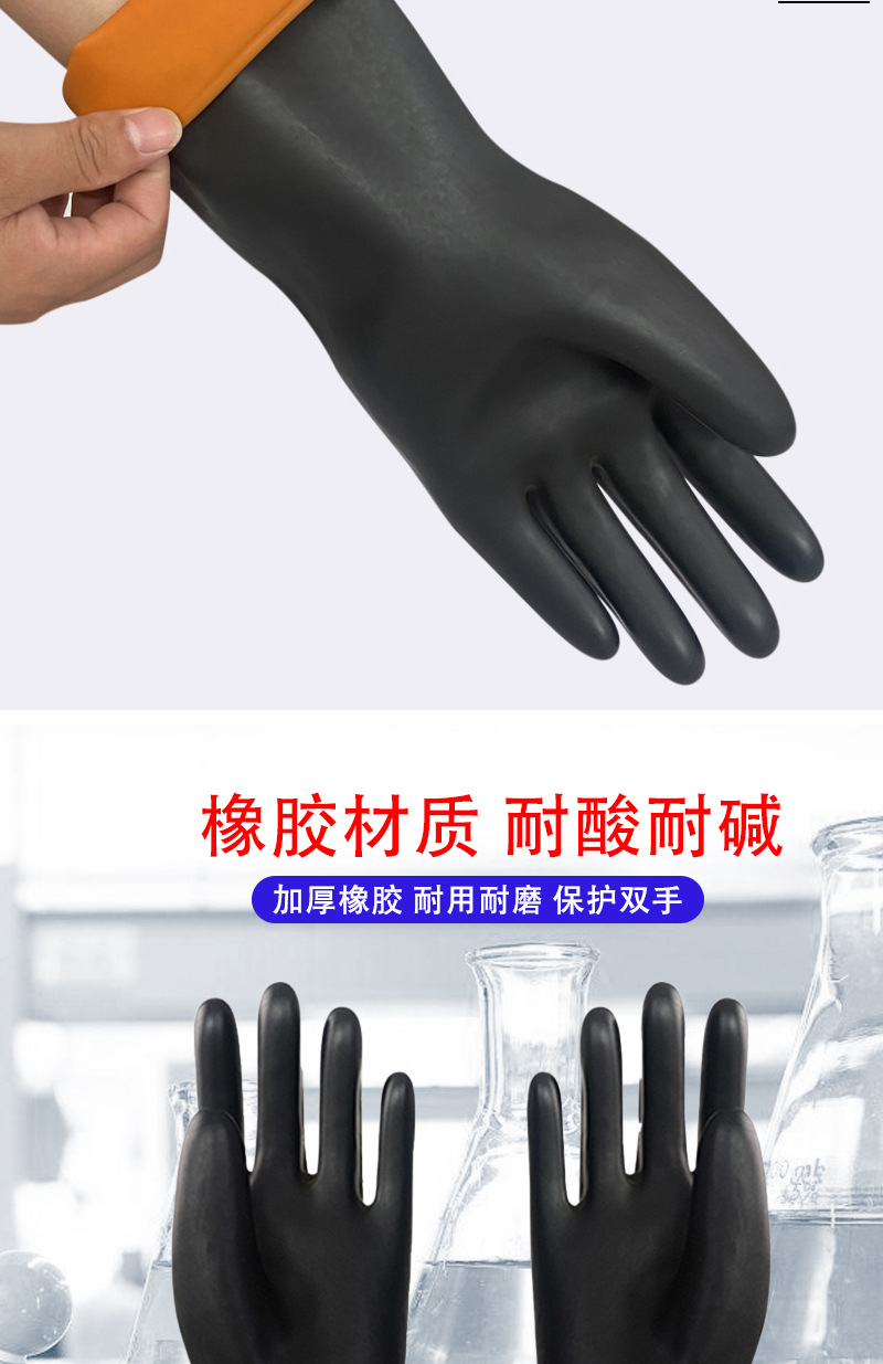 산디산 및 알칼리 저항성 장갑 블랙 및 레드 라텍스 고무 두꺼운 눈물 저항성 눈물 저항성 오일-저항성 스테인산 및 알칼리 저항성 노동 보호 장갑스토어 가기