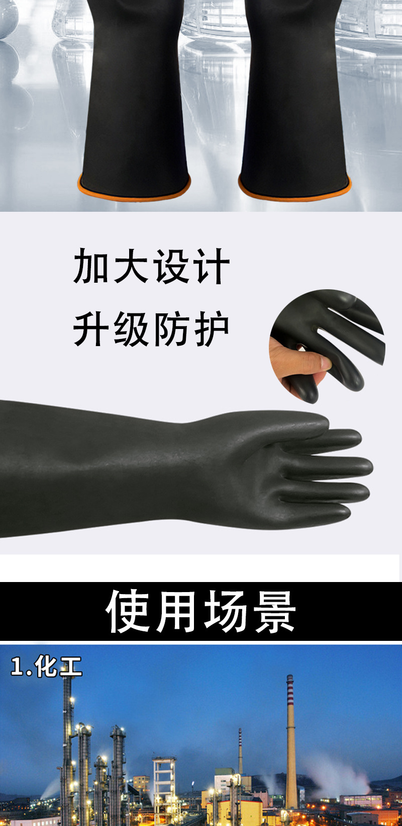 산디산 및 알칼리 저항성 장갑 블랙 및 레드 라텍스 고무 두꺼운 눈물 저항성 눈물 저항성 오일-저항성 스테인산 및 알칼리 저항성 노동 보호 장갑