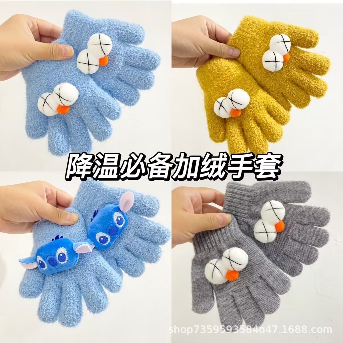 어린이 장갑 가을과 겨울 기모 두꺼운 따뜻한 모든 것을 포함하는 손가락 장갑 남성 아기 만화 다섯 손가락 학생 쓰기스토어 가기