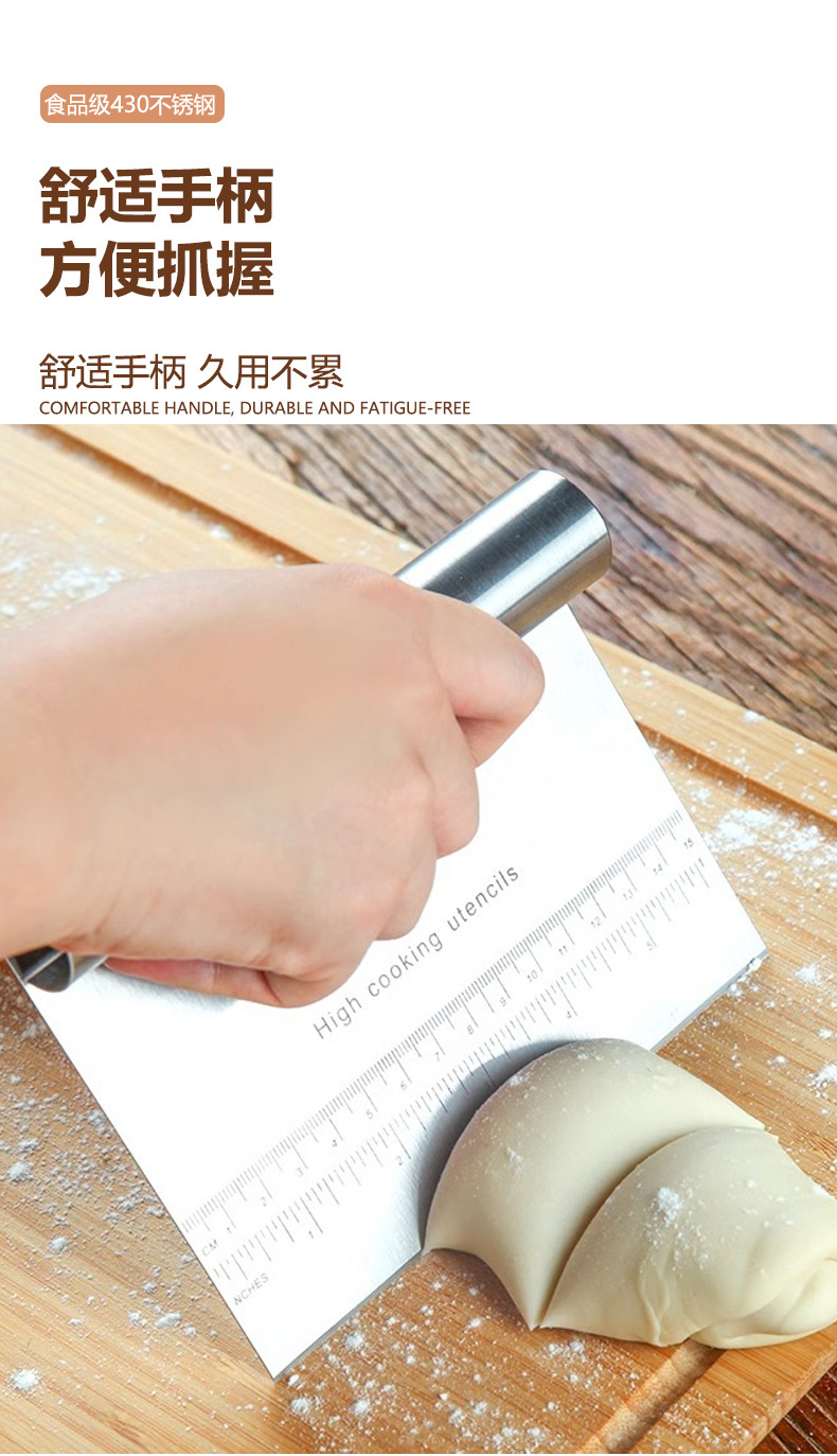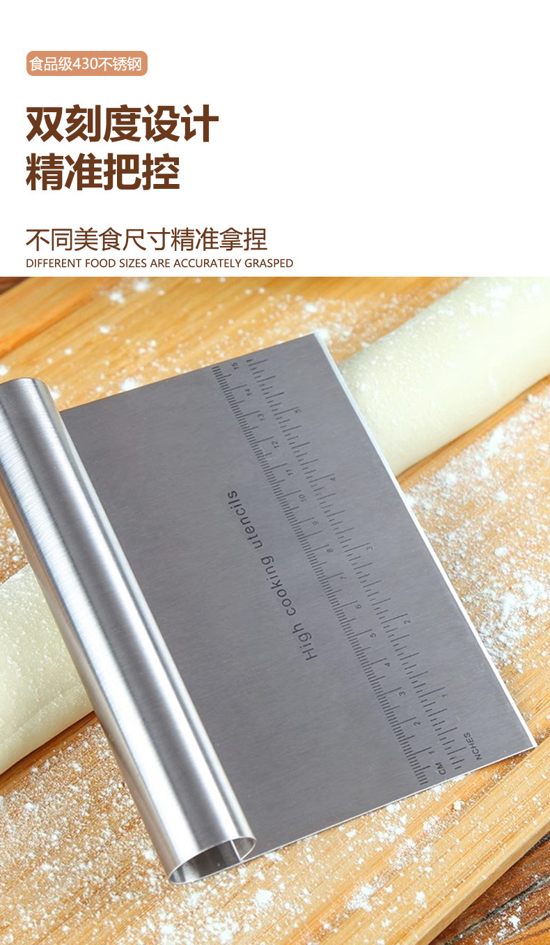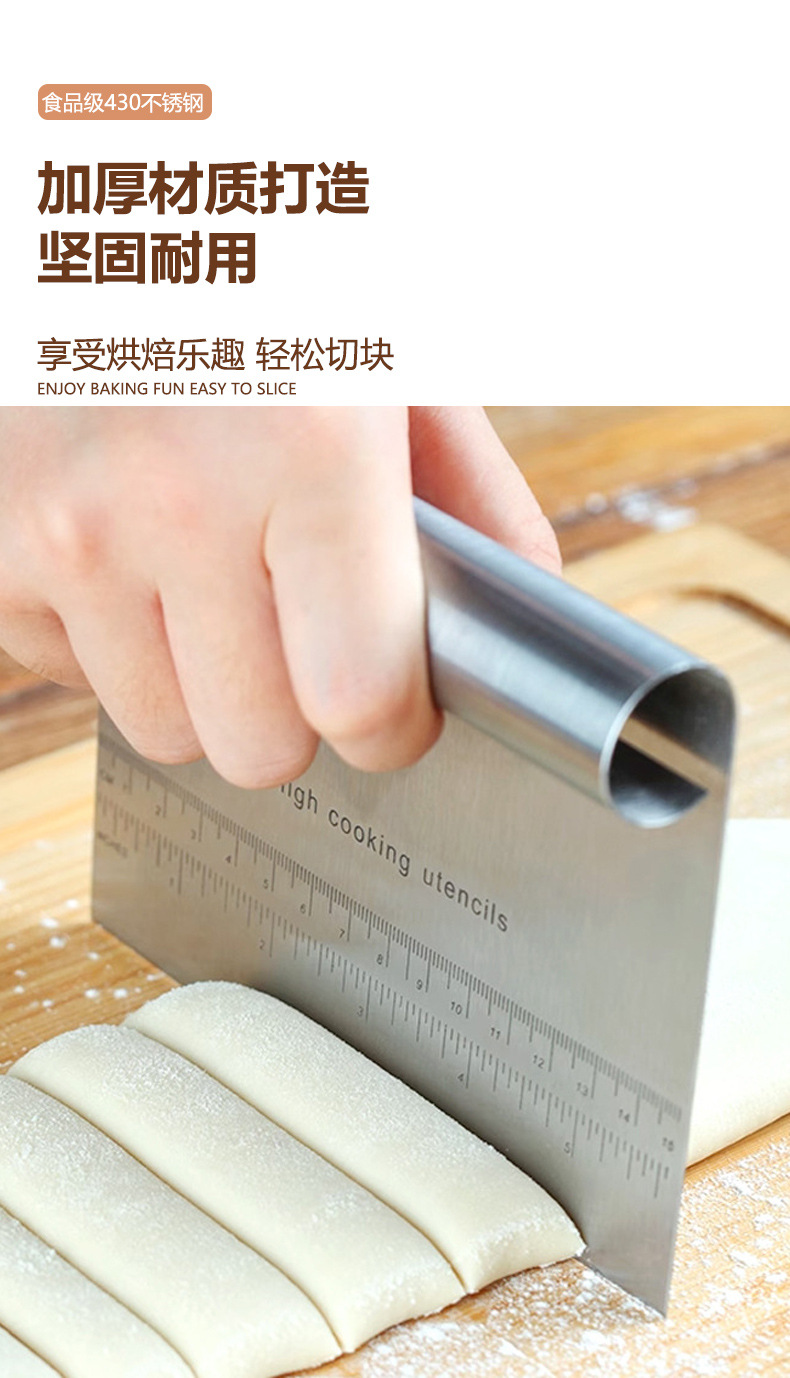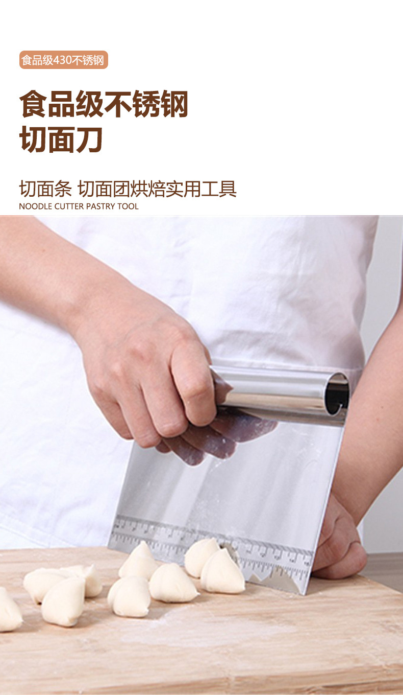 스케일 스크레이퍼 베이킹 도구가있는 국경 스테인레스 스틸 국수 커터 쌀 롤 케이크 스크레이퍼 반원형 스크레이퍼스토어 가기