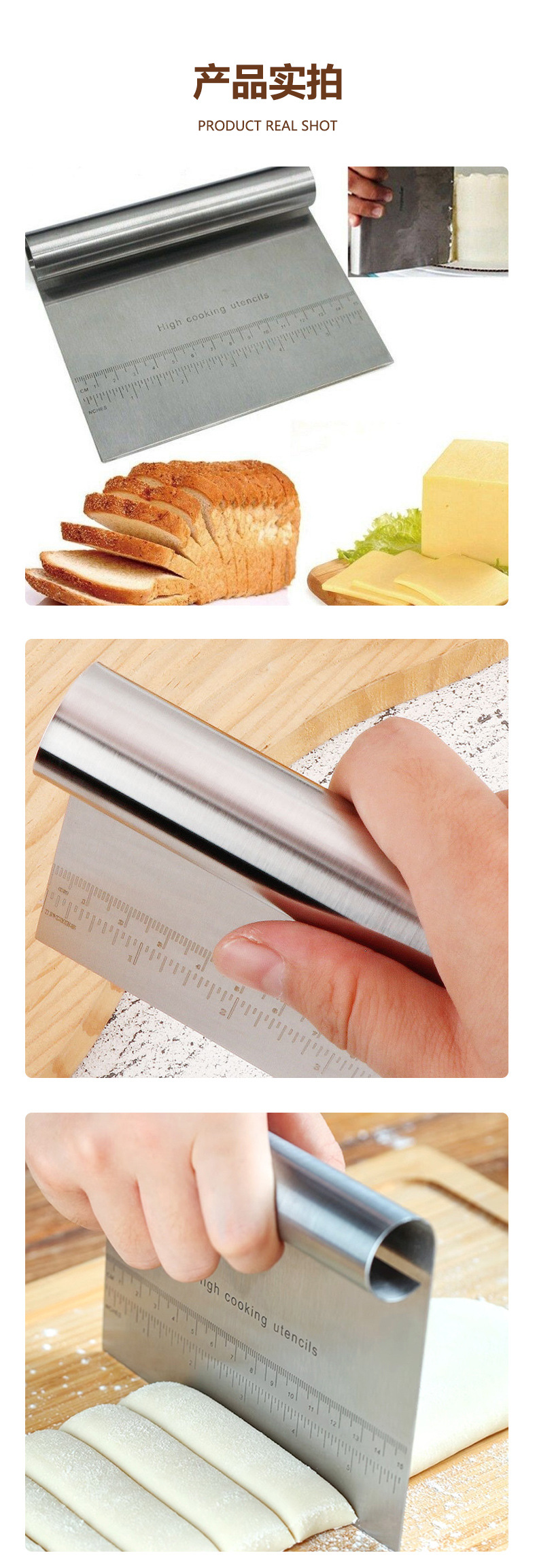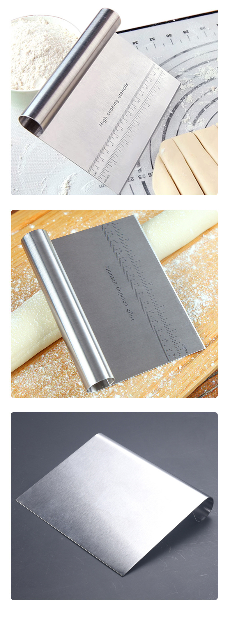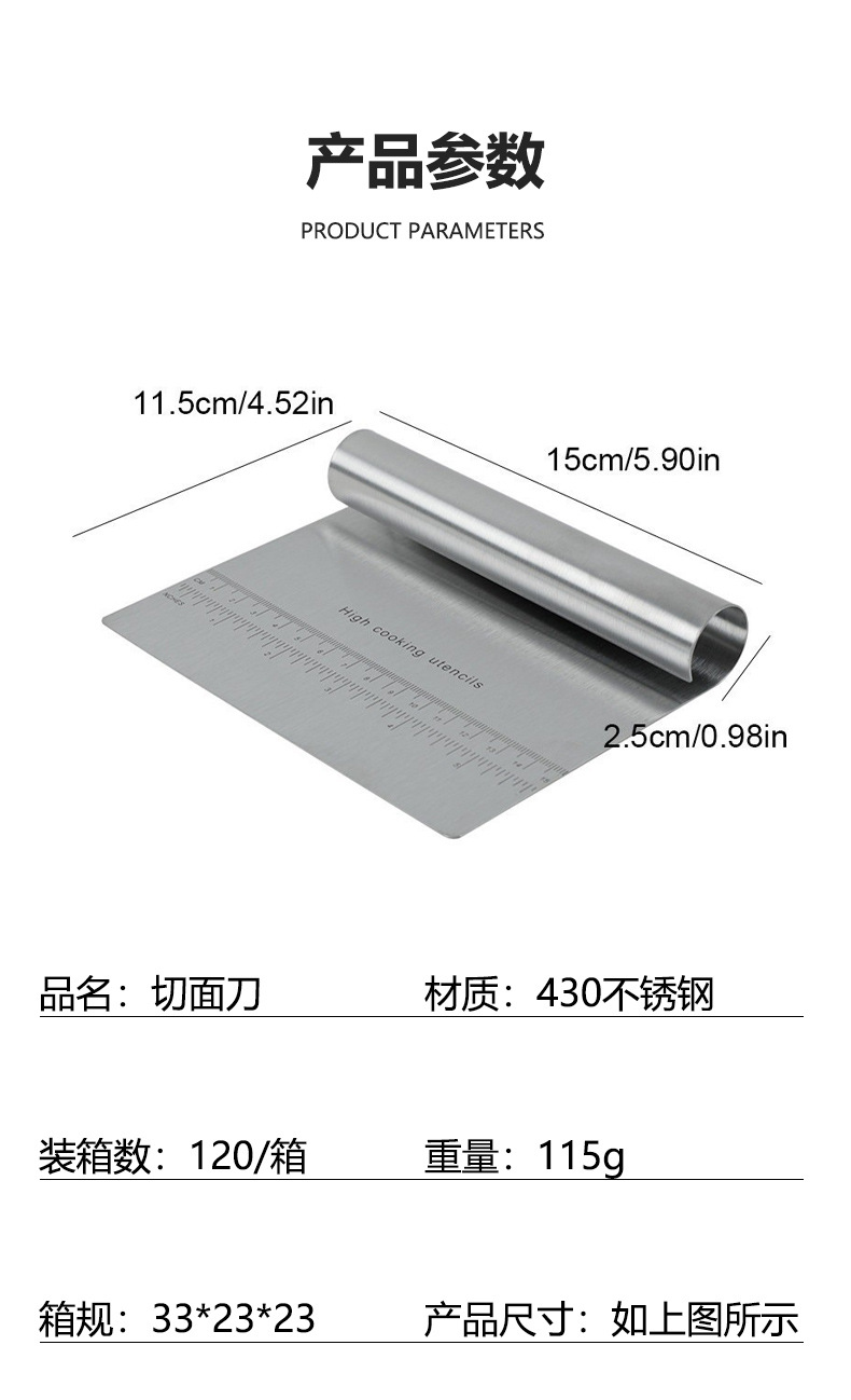 스케일 스크레이퍼 베이킹 도구가있는 국경 스테인레스 스틸 국수 커터 쌀 롤 케이크 스크레이퍼 반원형 스크레이퍼스토어 가기