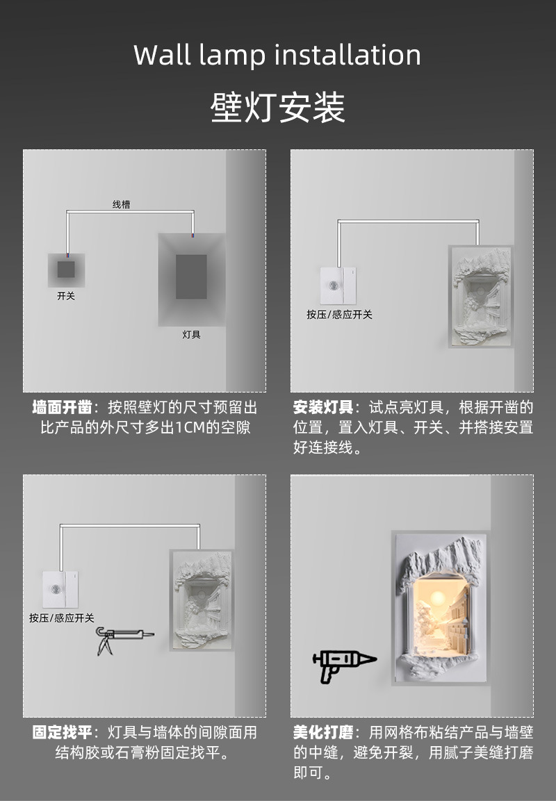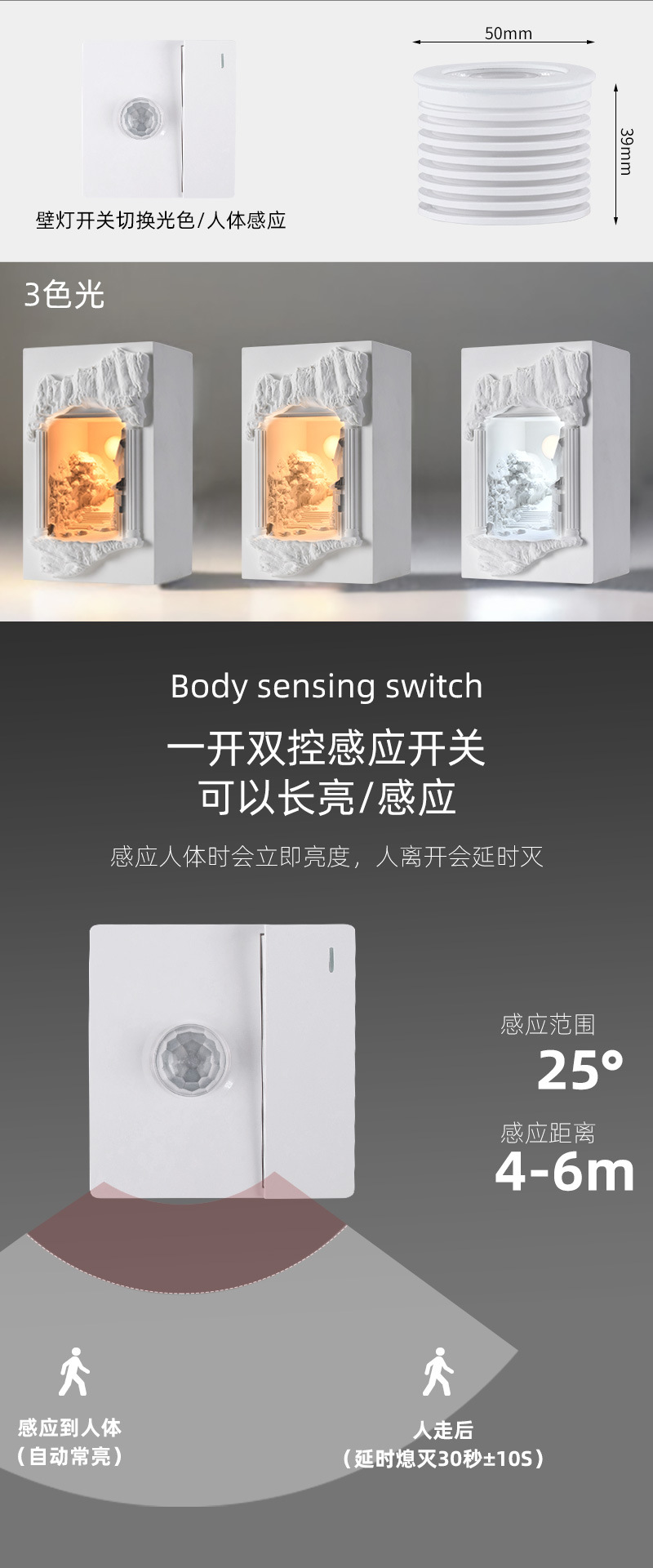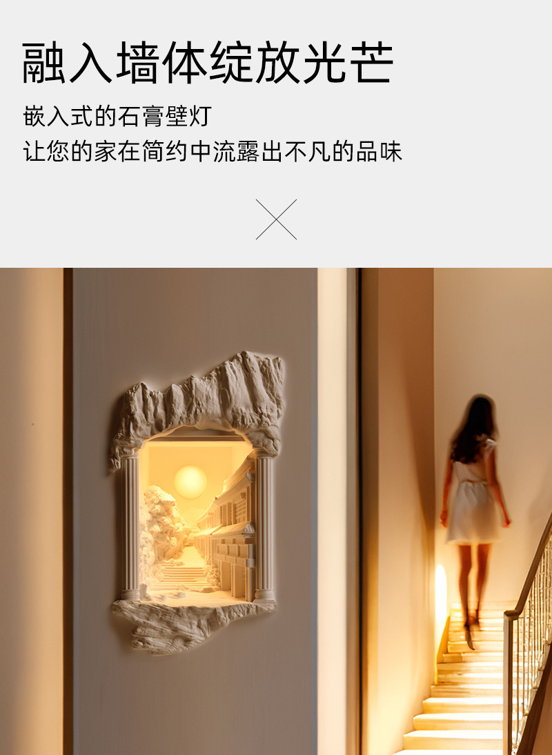 렉신 선셋 고대도시 석고 벽등 복도 침실 계단 매립형 센서 벽 코너 매립형 분위기 벽등