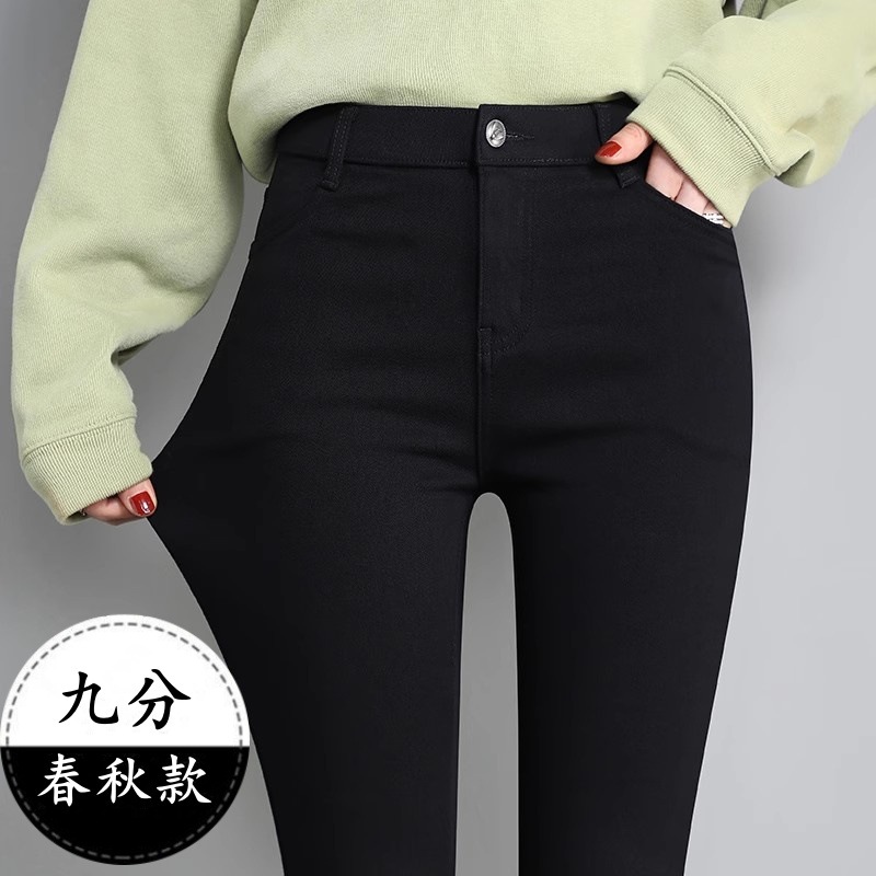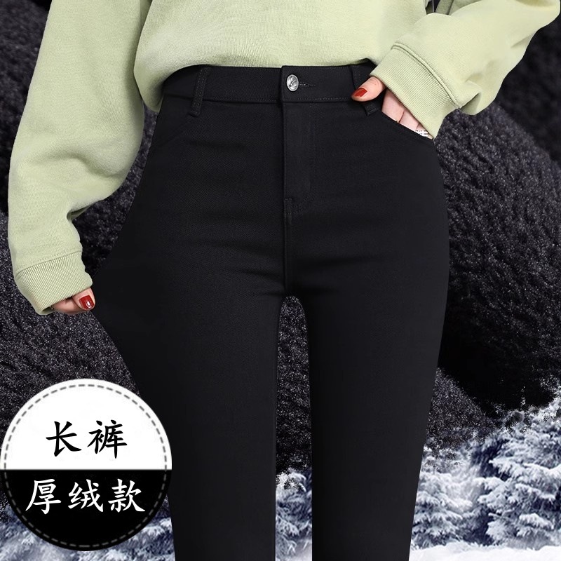 벨벳 안감 여성용 레깅스 2025 신상 가을 겨울 두꺼운 바지 여성용 블랙 신축성 있는 슬림핏 펜슬 팬츠스토어 가기