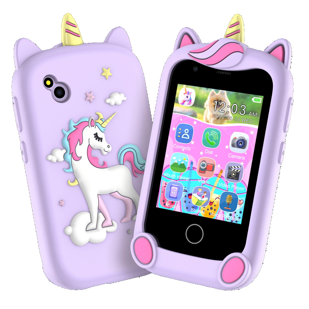 • 보라색 어린이 휴대폰 + 유니콘 실리콘 케이스
