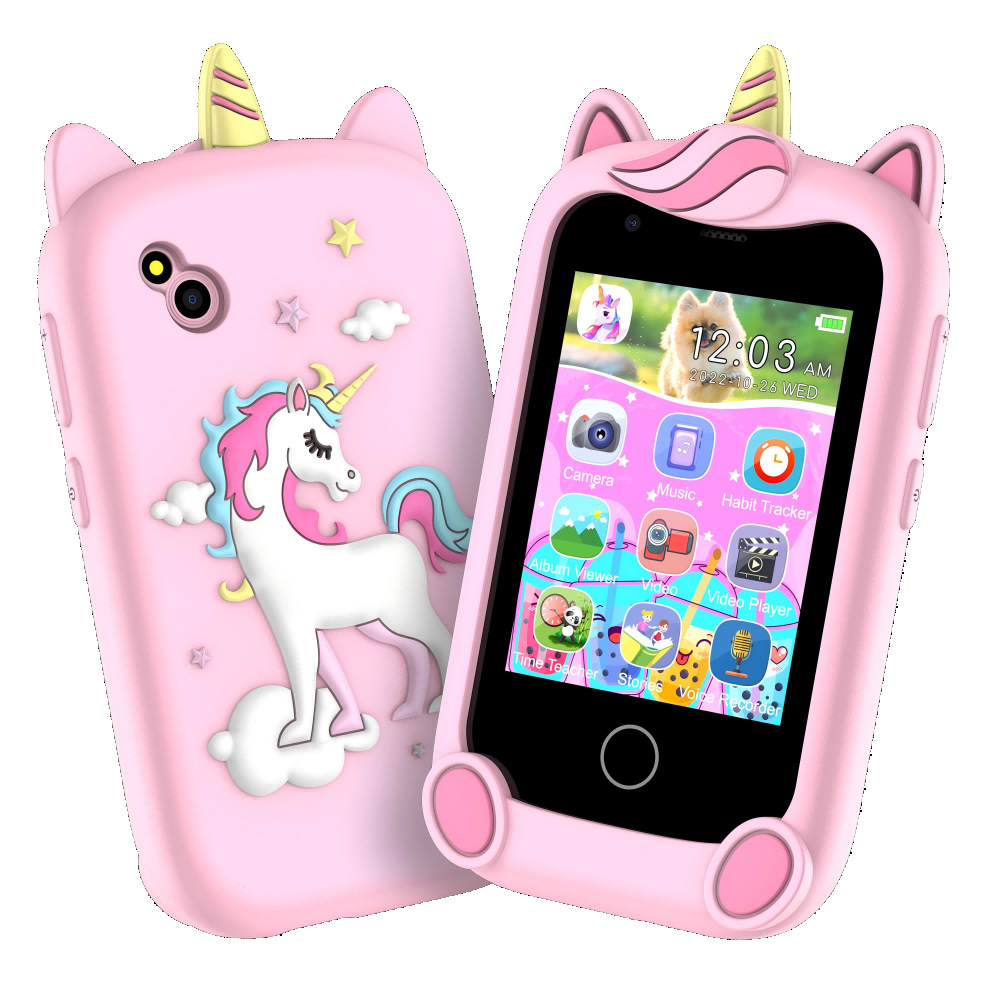 • 핑크 어린이 휴대폰 + 유니콘 실리콘 케이스