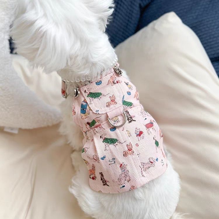 애완 동물 옷 개 봄과 여름 스트랩 원피스 견인 작은 개 요크셔 곰 Malzis 섬유 귀여운스토어 가기
