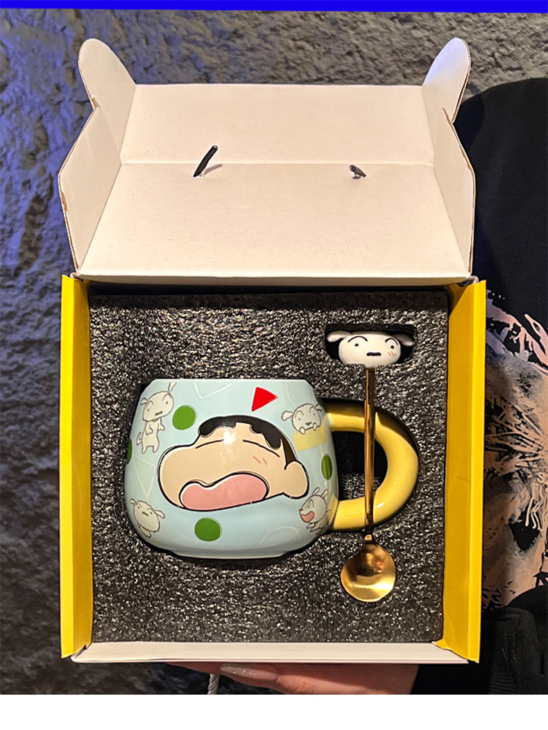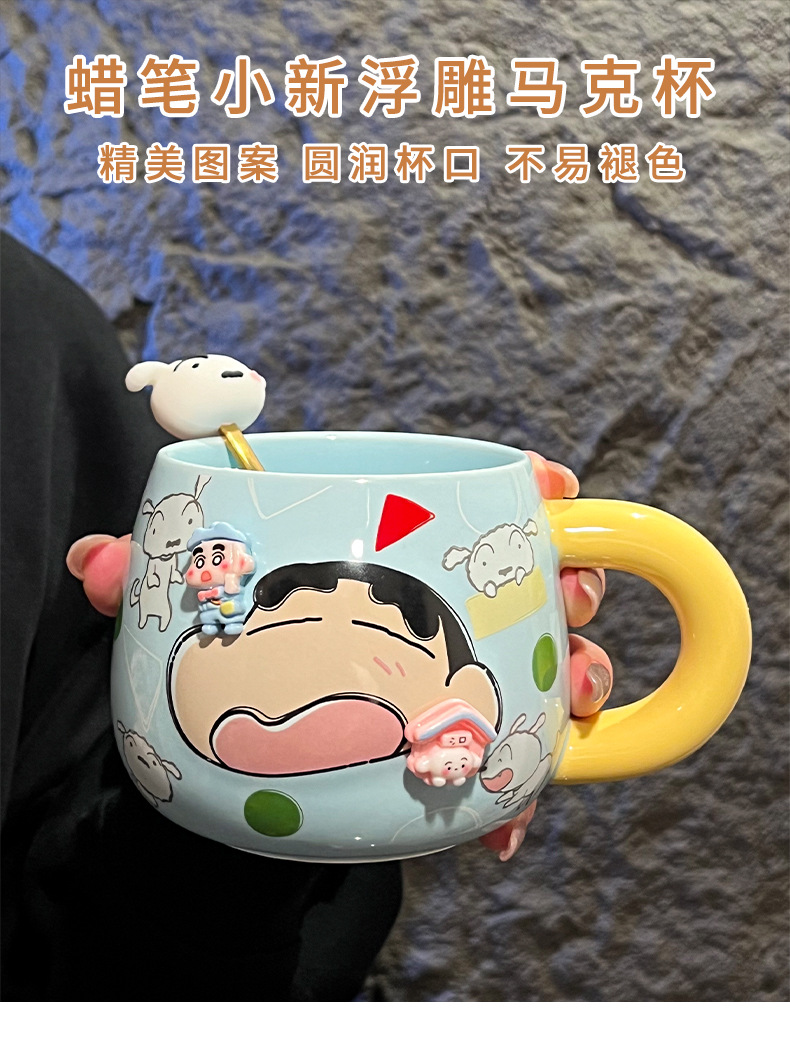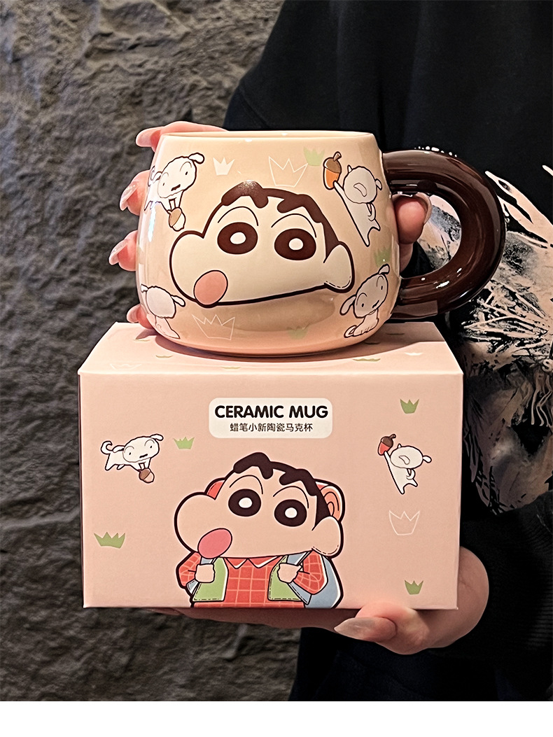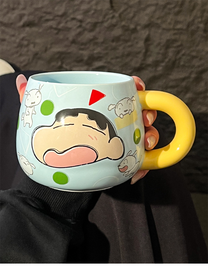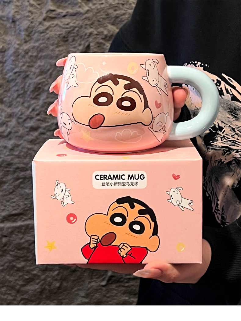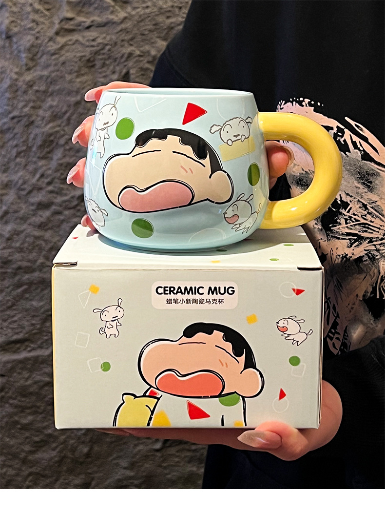 정품 공인 크레용 작은 새로운 구호 세라믹 머그잔 귀여운 만화 높은 색상 가치 사무실 커플 컵스토어 가기