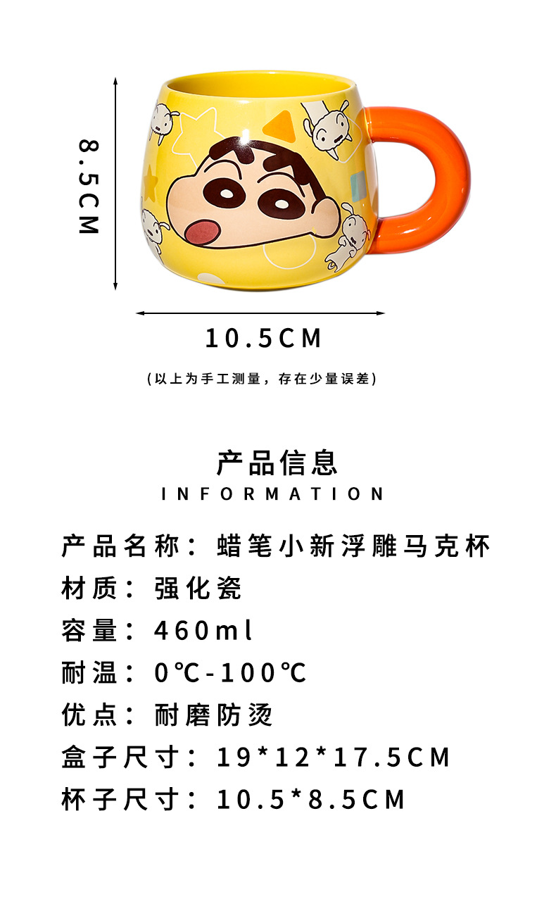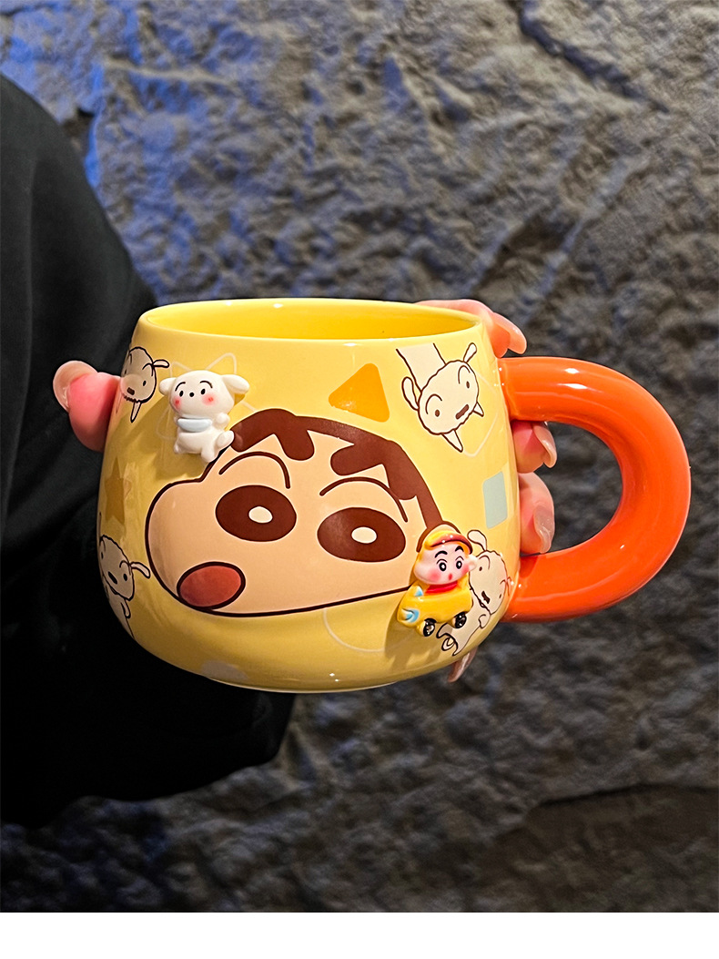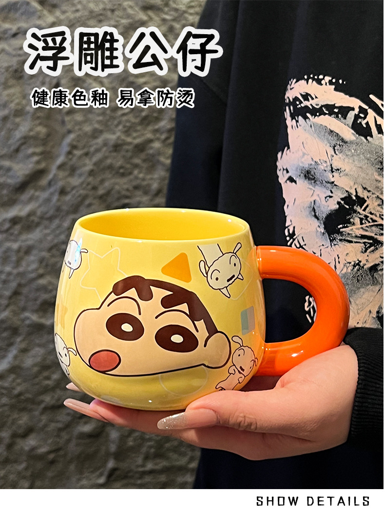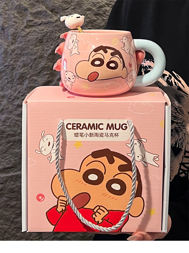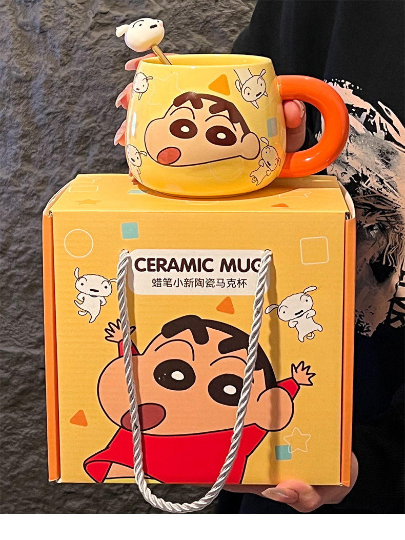 정품 공인 크레용 작은 새로운 구호 세라믹 머그잔 귀여운 만화 높은 색상 가치 사무실 커플 컵스토어 가기