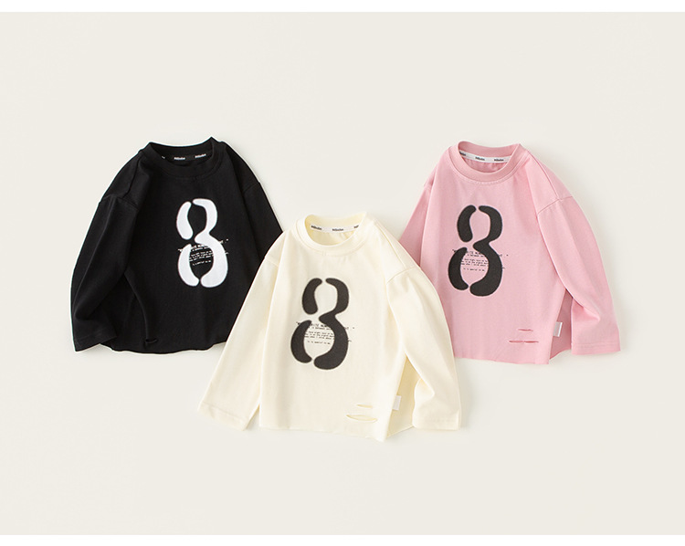 유바오 아동복 아동용 티셔츠 2025 봄 새 아기 가방 셔츠 소년의 서양식 편지 긴 소매 탑스토어 가기