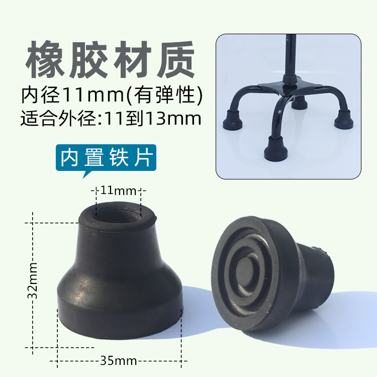 겨드랑이 목발 의자 미끄럼 방지 고무 헤드 4 피트 패드 풋 커버 더블 목각 베이스 워킹 스틱 클라이밍 스틱 액세서리