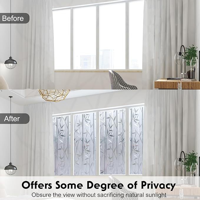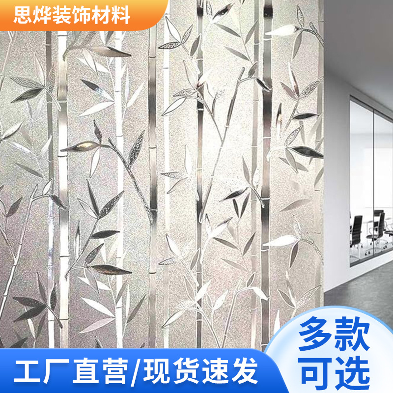 Fugui 대나무 정전기 유리 스티커 투명 불투명 한 욕실 침실 젖빛 유리 필름 창 스티커 방지스토어 가기