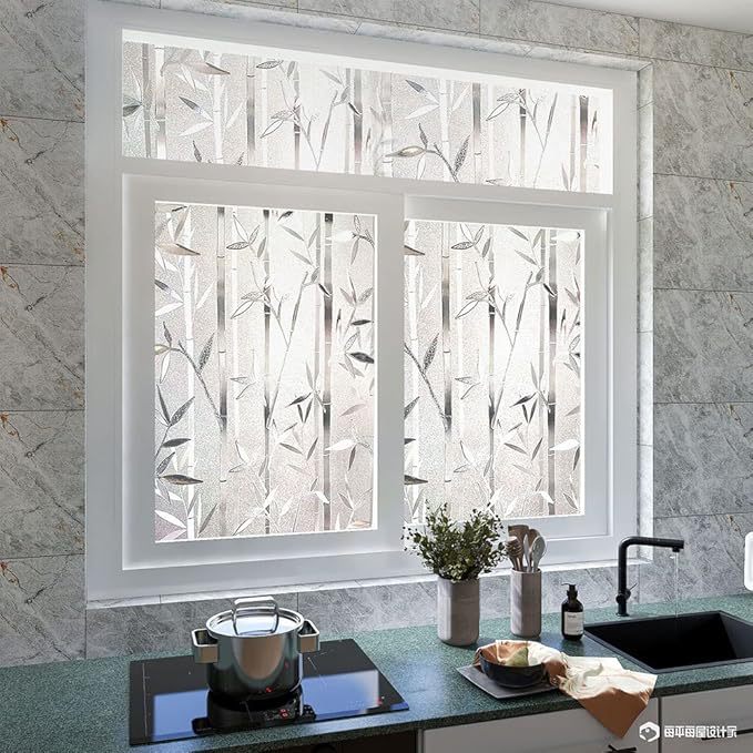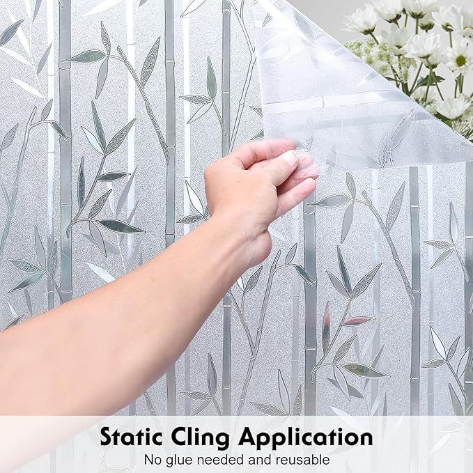 Fugui 대나무 정전기 유리 스티커 투명 불투명 한 욕실 침실 젖빛 유리 필름 창 스티커 방지