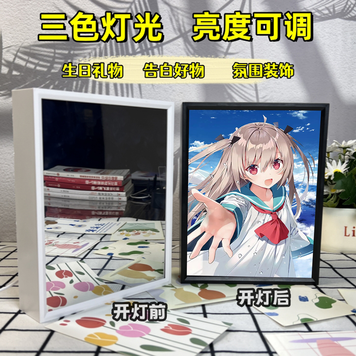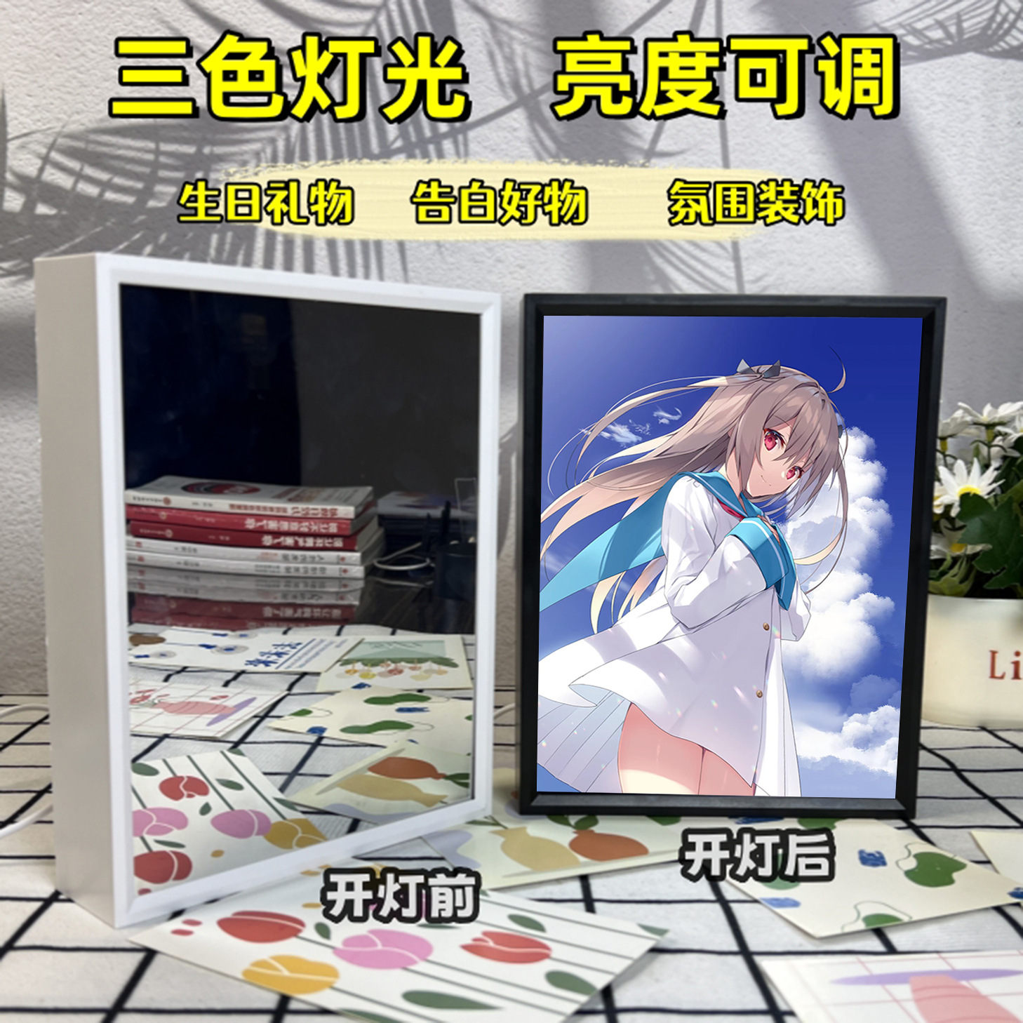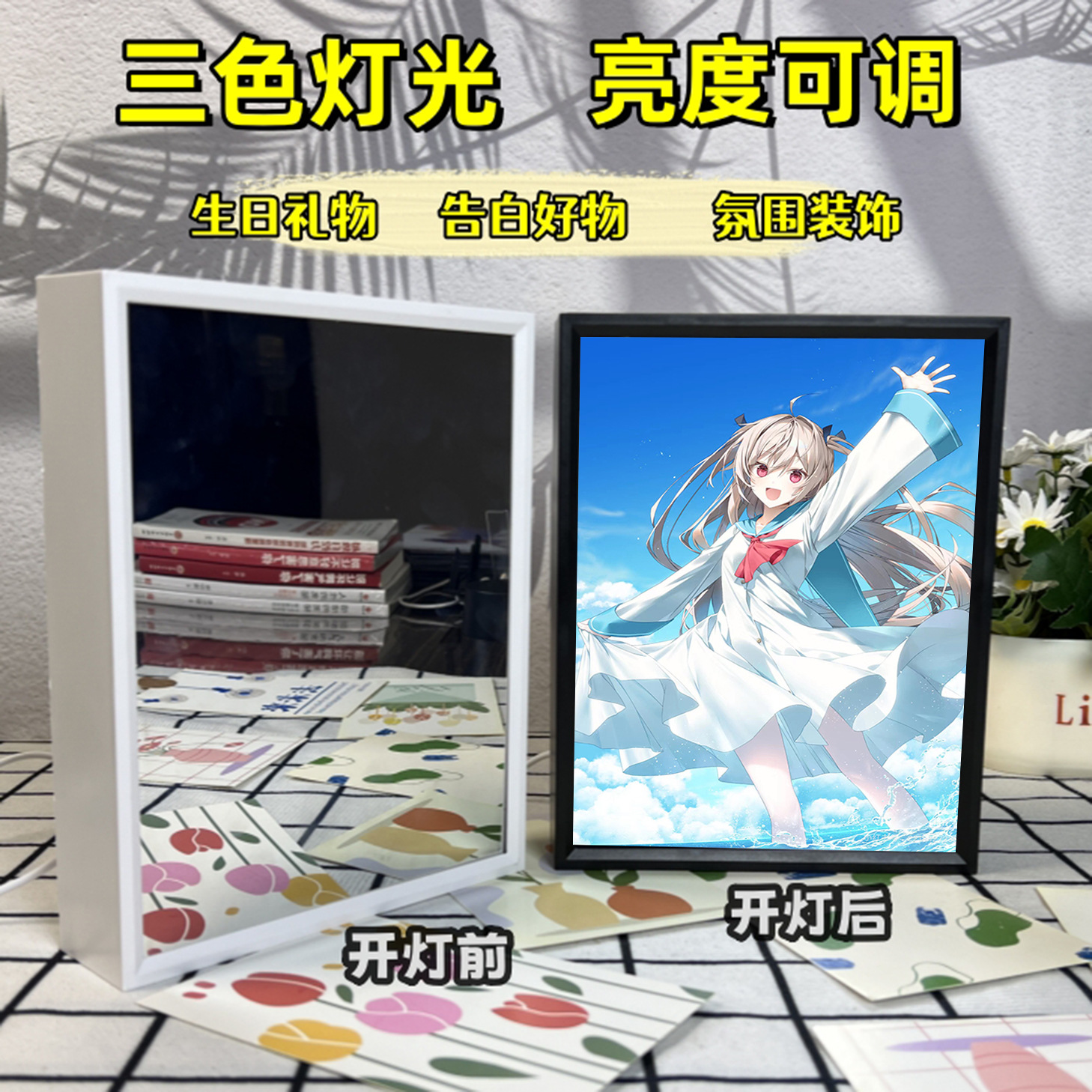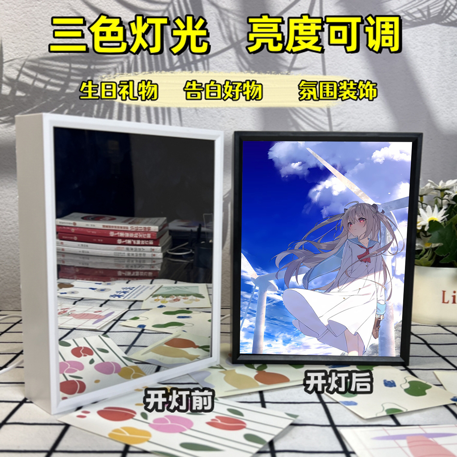 Yatoli 내 사랑하는 시간 주변 거울 조명 그림 테이블 장식품 그림 앨범 사진 프레임 친구 선물스토어 가기