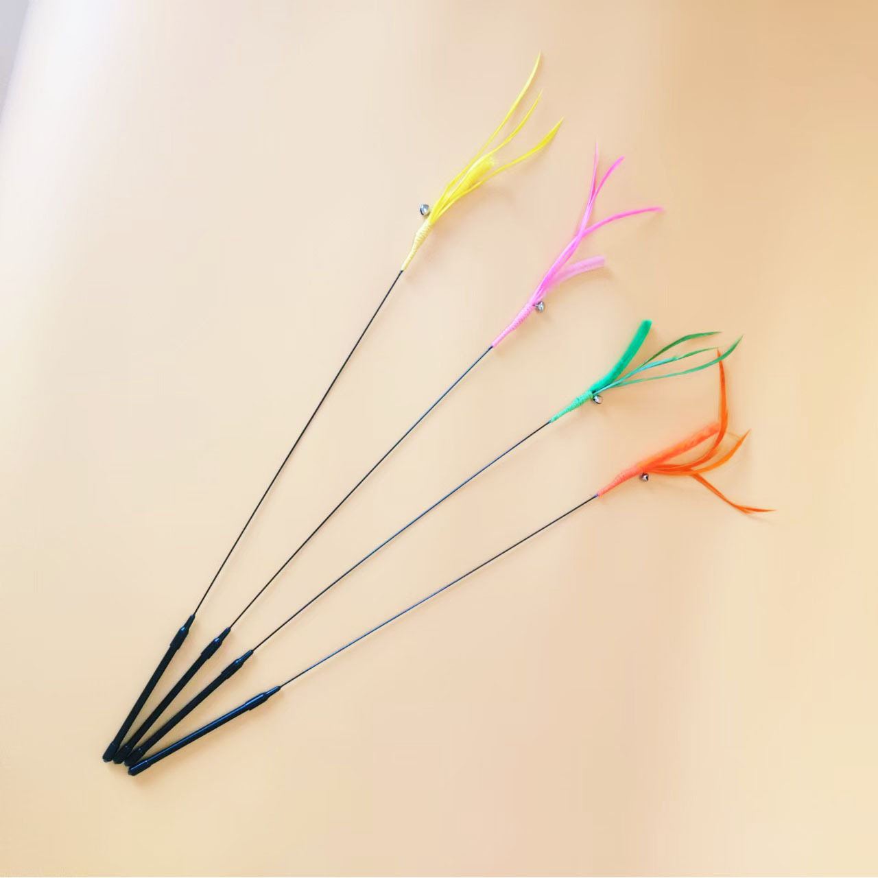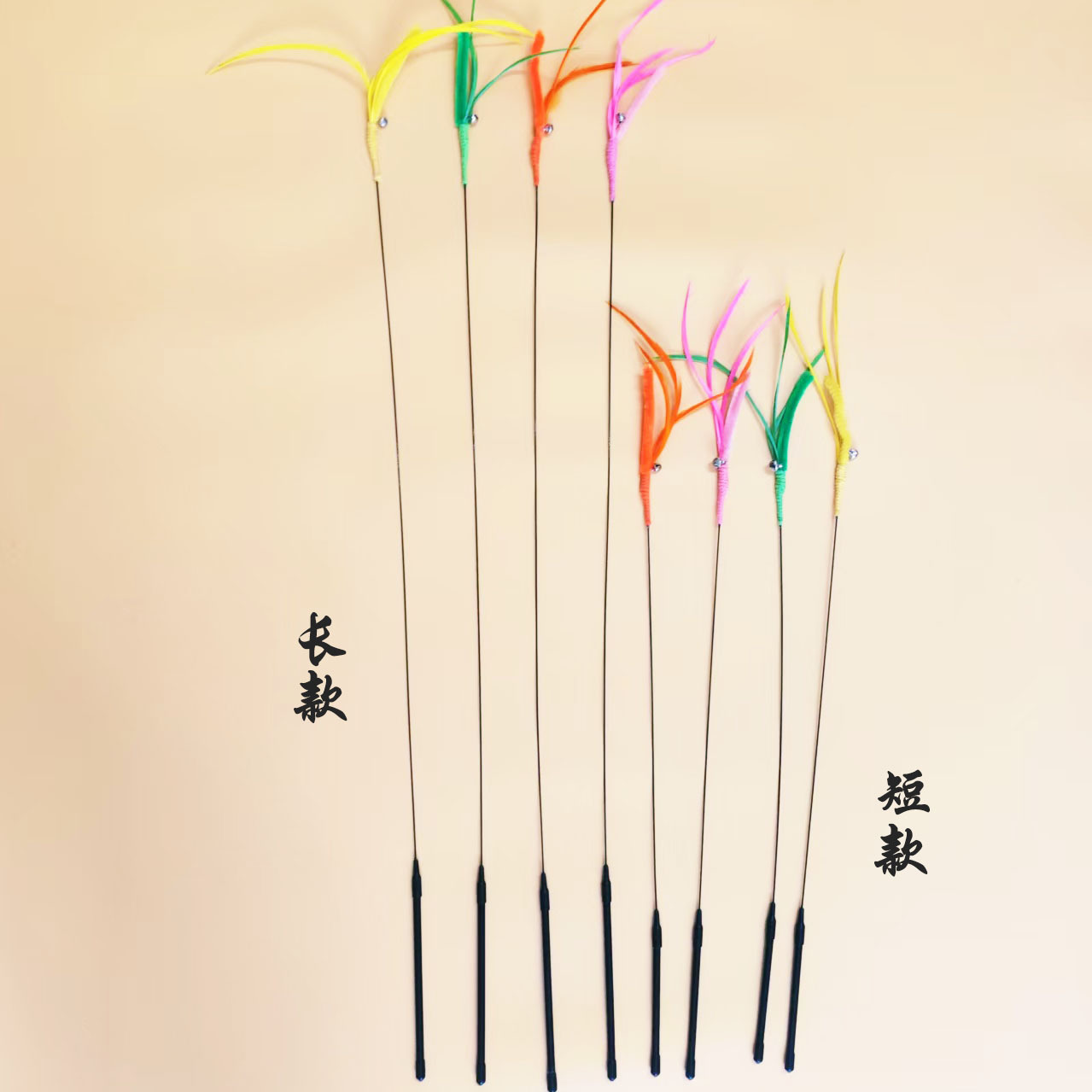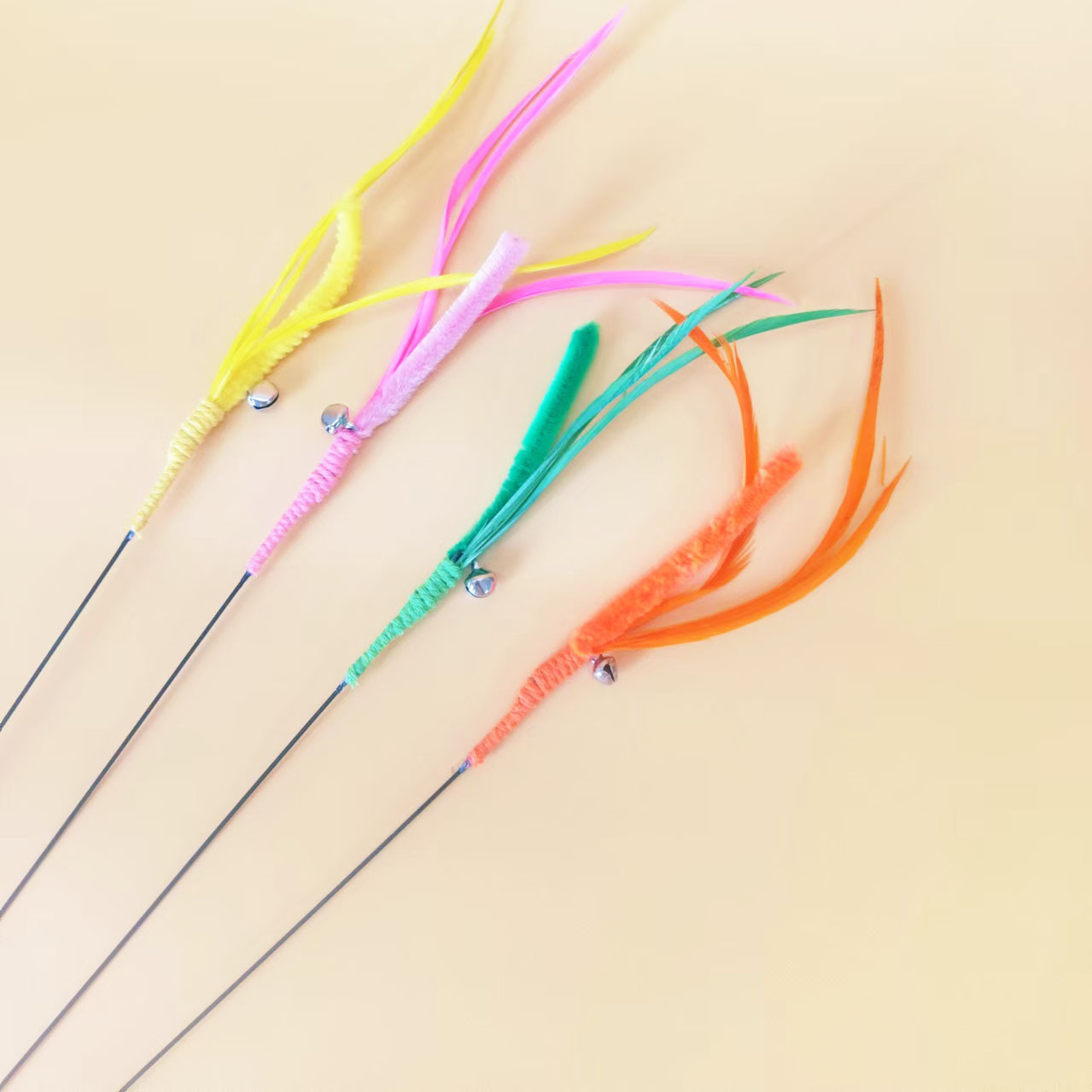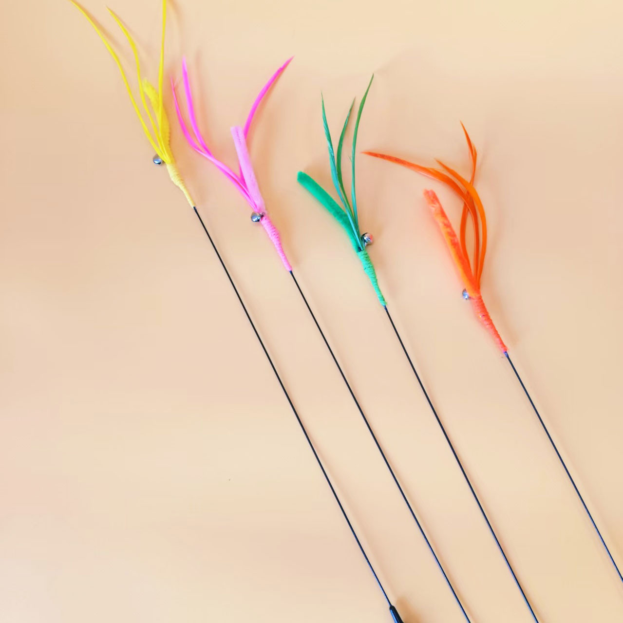 공장 직접 고양이 장난감 개 꼬리 잔디 긴 막대 고양이 스틱 깃털 강철 와이어 유연한 재고 지루함 자기 안녕