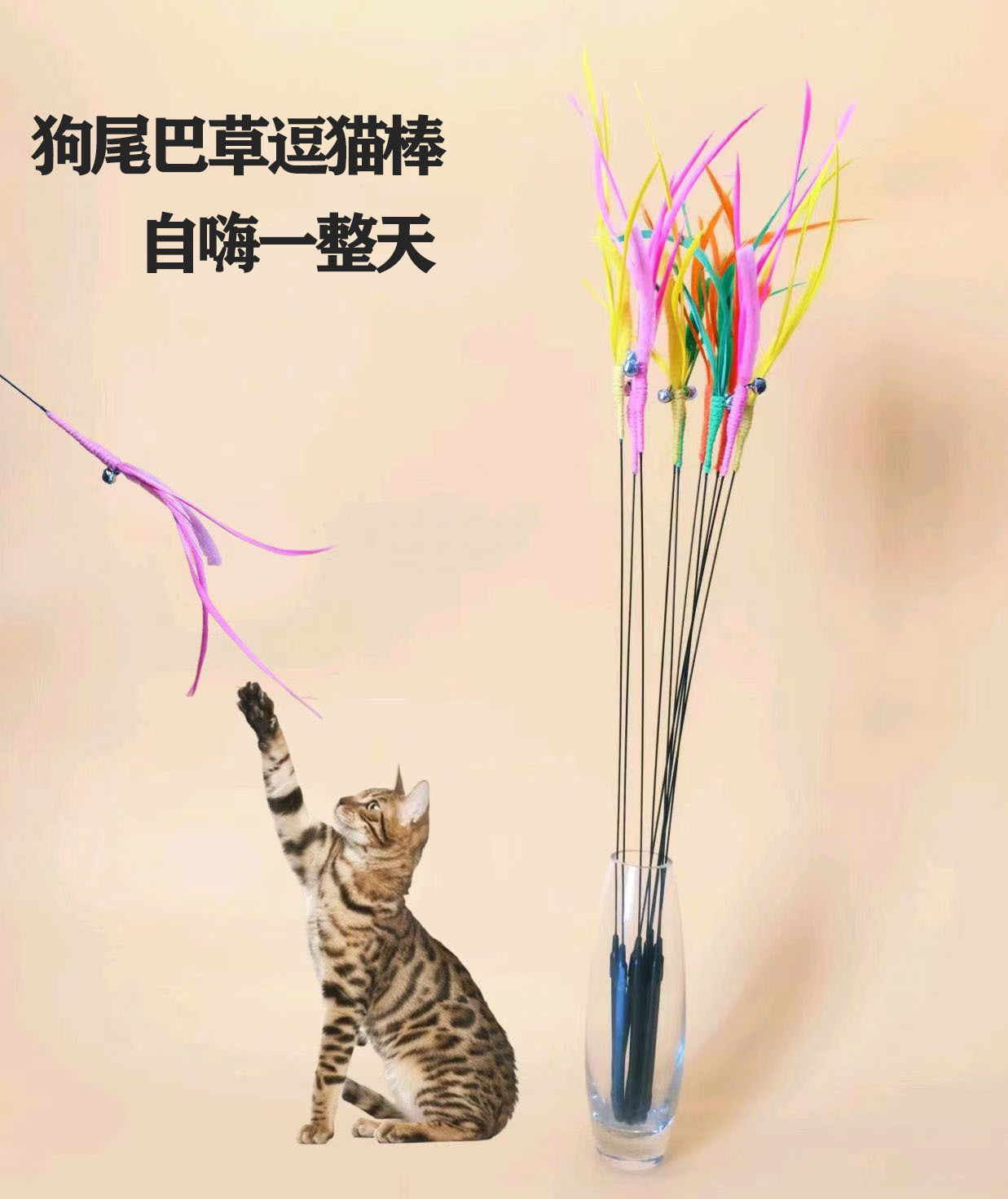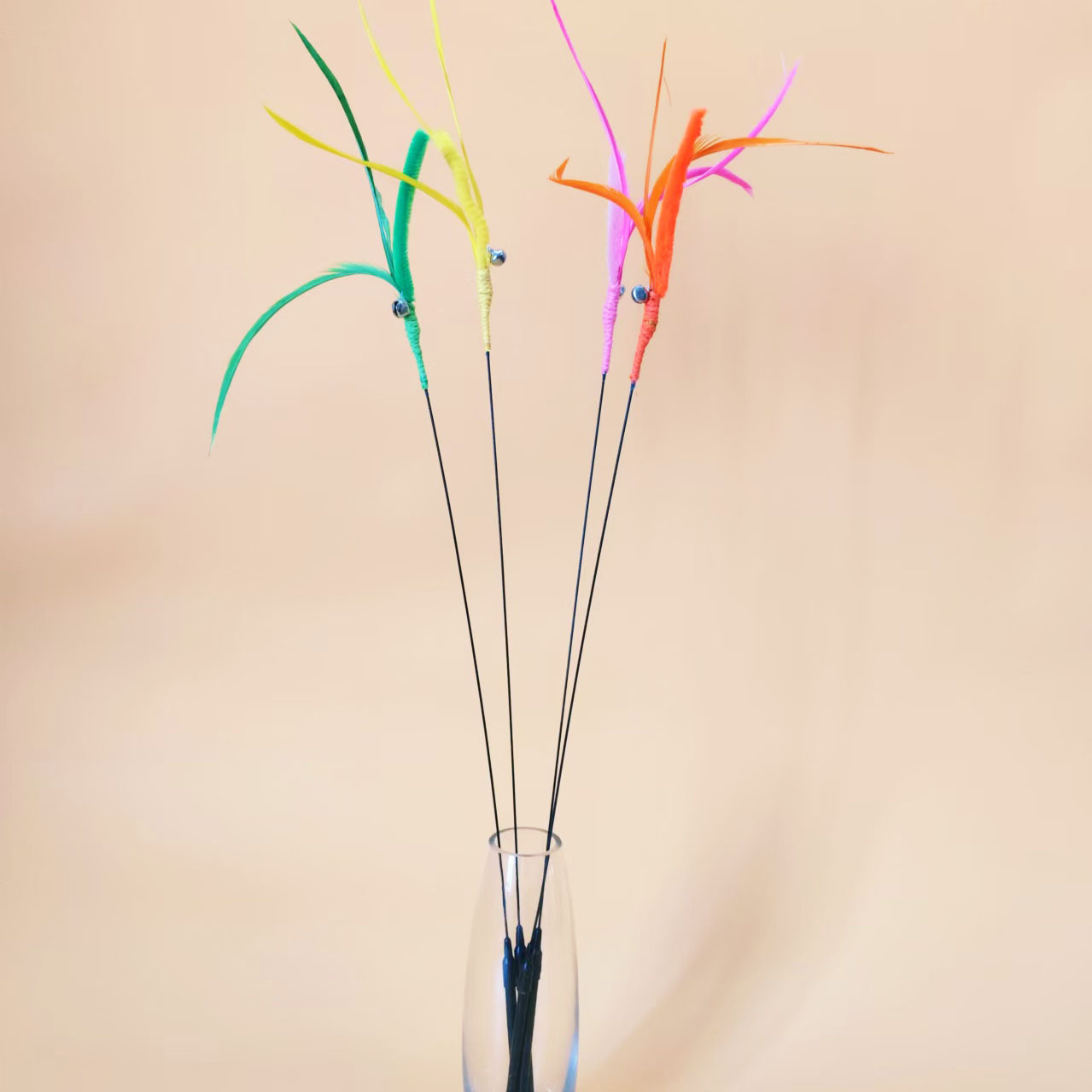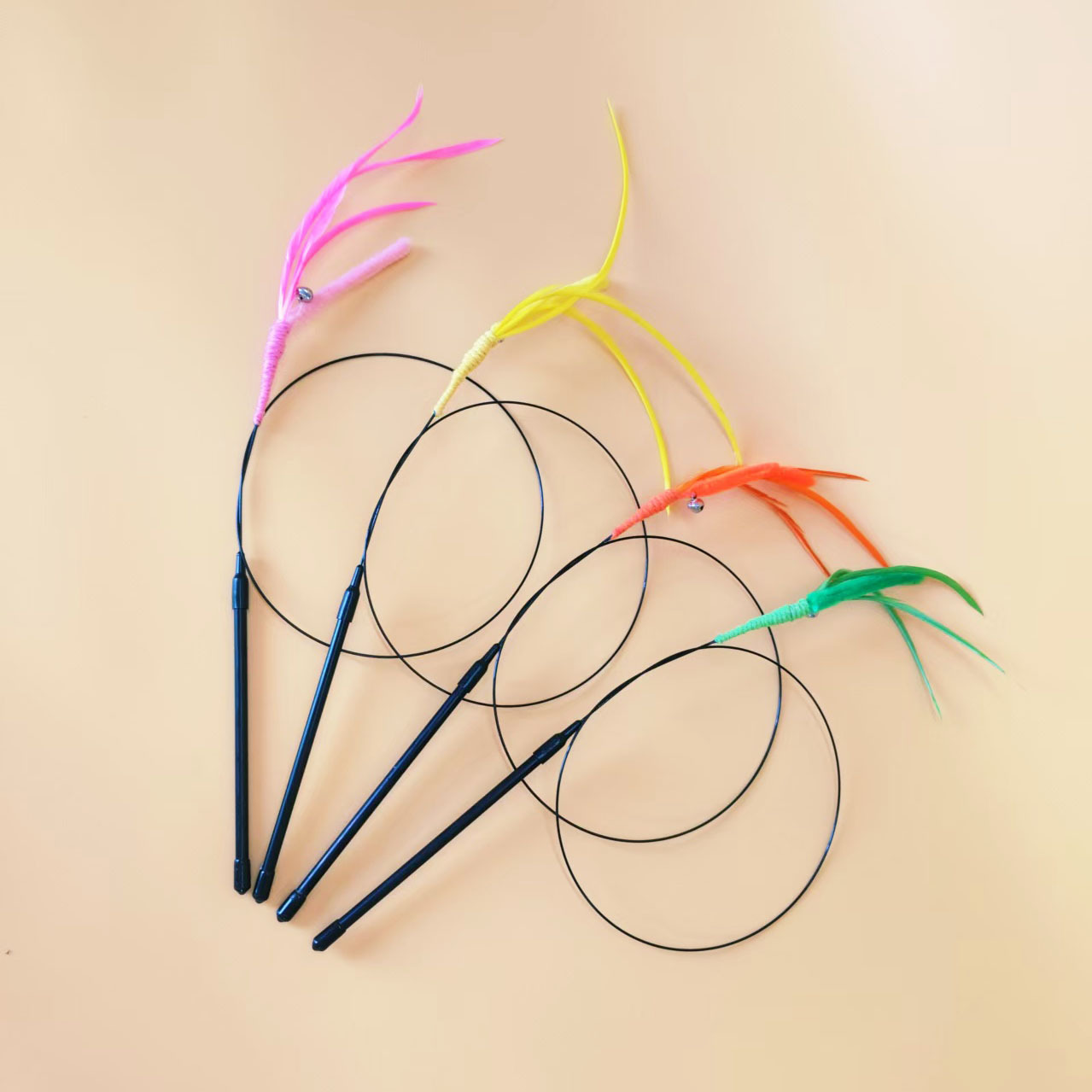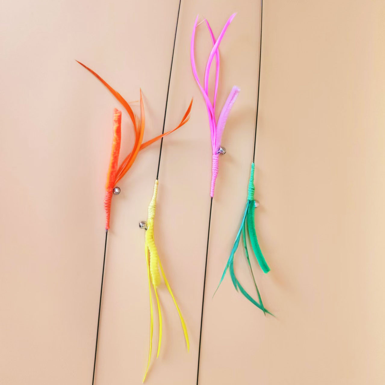 공장 직접 고양이 장난감 개 꼬리 잔디 긴 막대 고양이 스틱 깃털 강철 와이어 유연한 재고 지루함 자기 안녕