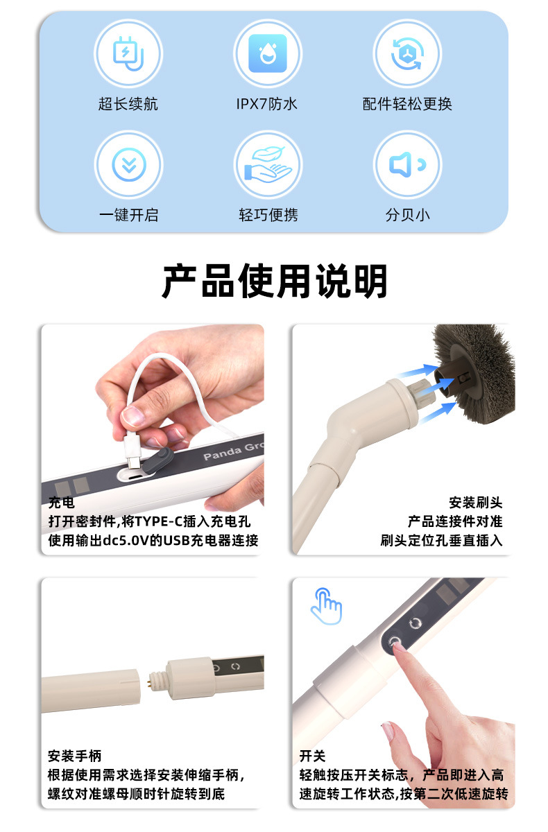 1.全新私模专利款电动浴缸清洁刷