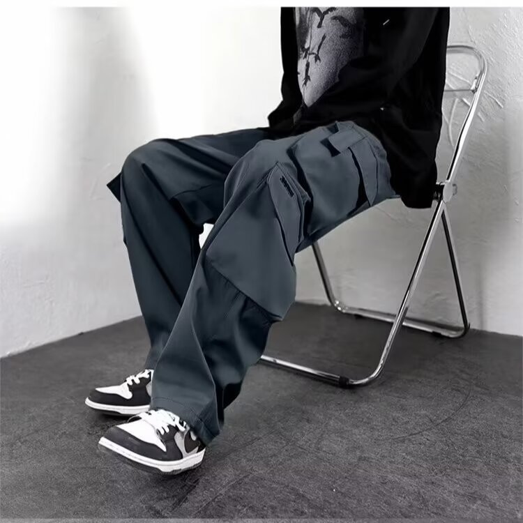 기모 두꺼운 작업복 남성 아메리칸 스타일 복고풍 작업복 패션 브랜드 와이드 레그 캐주얼 바지 느슨한 스트레이트 바지