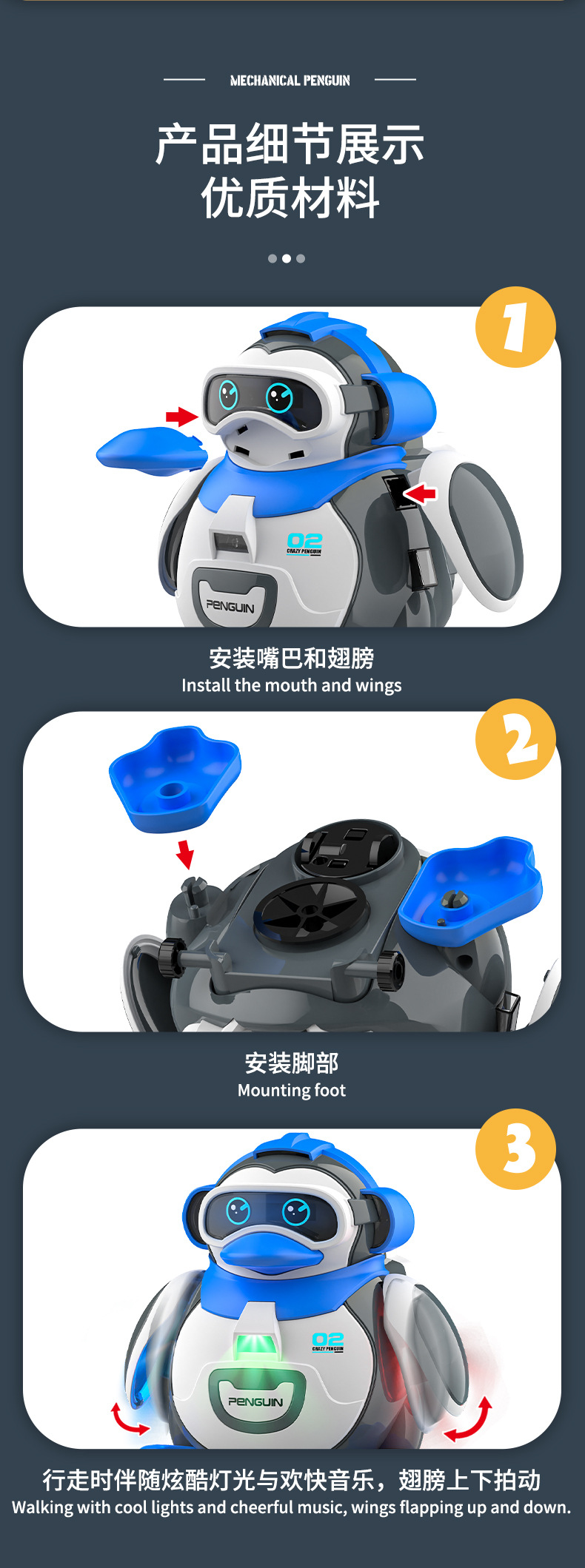 국경을 넘는 신제품 어린이 전동 음악 흔들 펭귄 유아 장난감 도매 조기 교육 걷기 계발 모델스토어 가기