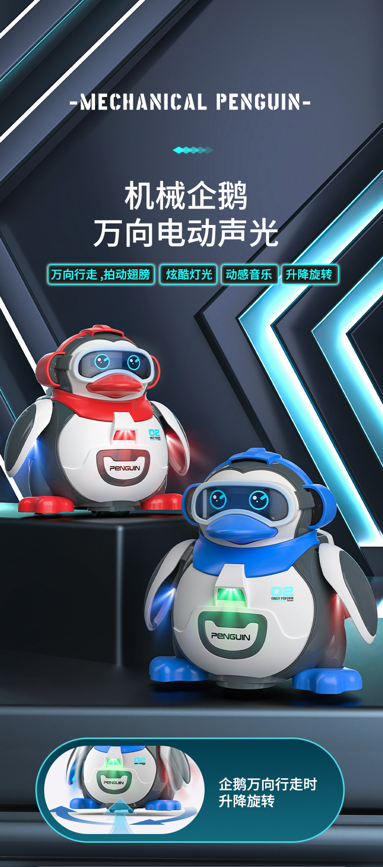 국경을 넘는 신제품 어린이 전동 음악 흔들 펭귄 유아 장난감 도매 조기 교육 걷기 계발 모델