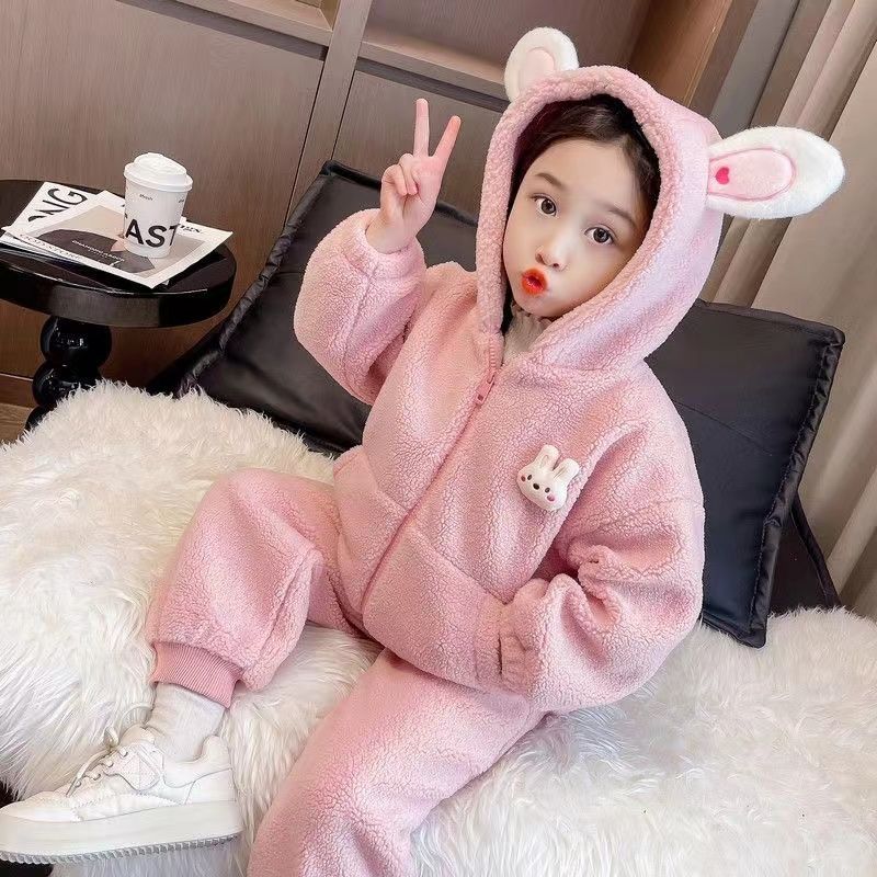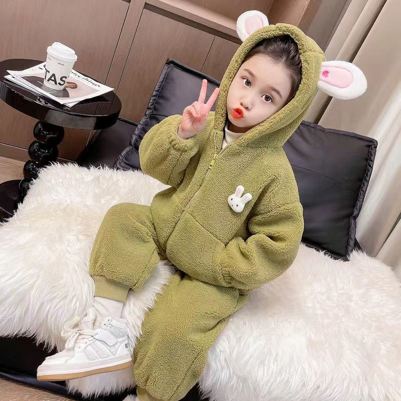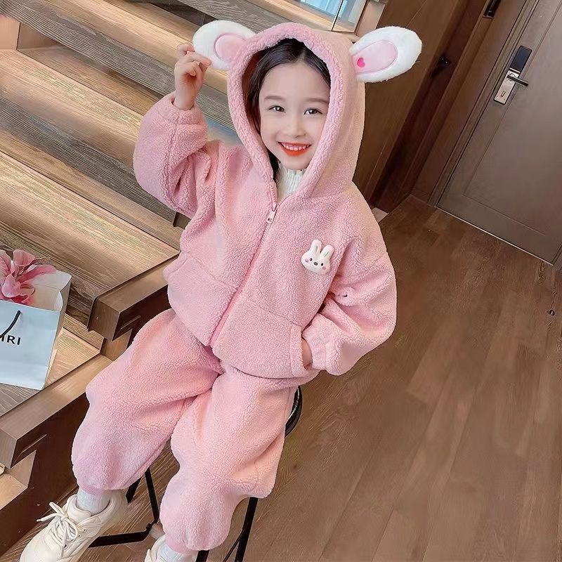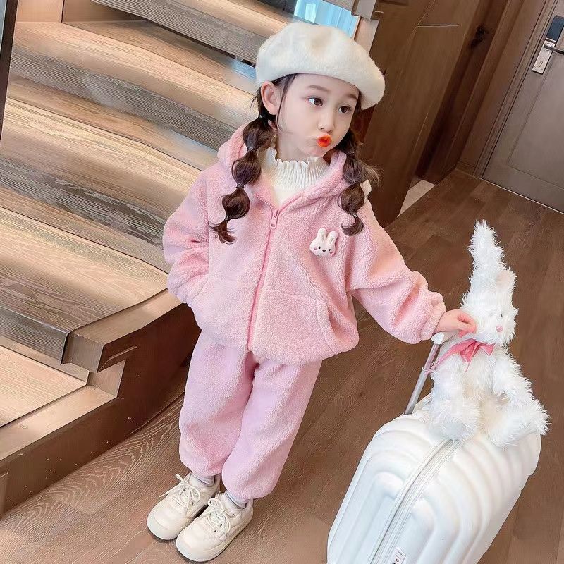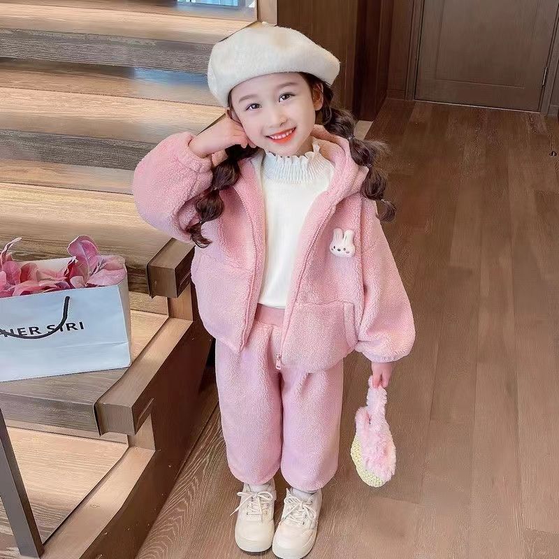 소녀 패션 따뜻한 기모 투피스 세트 2024 가을/겨울 새로운 후드 스웨트 재킷 캐주얼 바지 소녀 트렌디스토어 가기