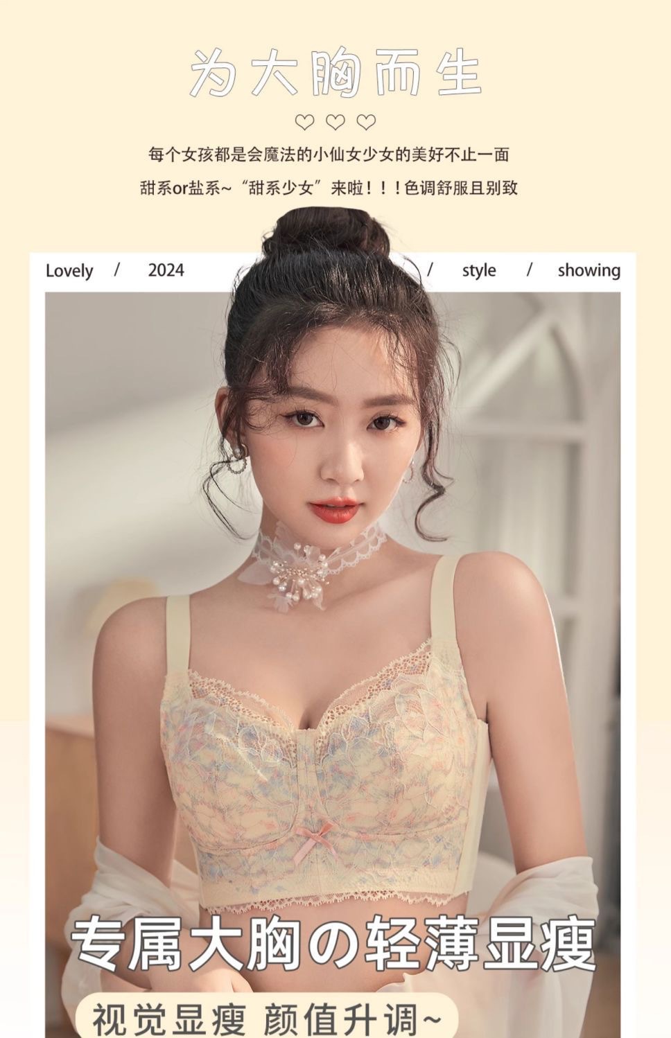 여성용 속옷, 큰 가슴을 더 작아 보이게 하는 풀컵 브라, 옆가슴을 모아주는 브라, 큰 사이즈, 처짐 방지, 노와이어 브라, 얇고 가벼운 모델, 푸쉬업 브라