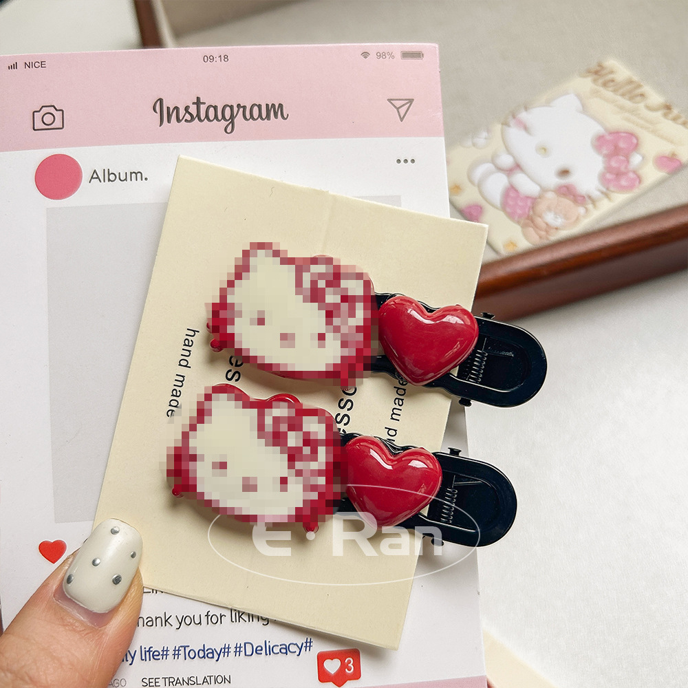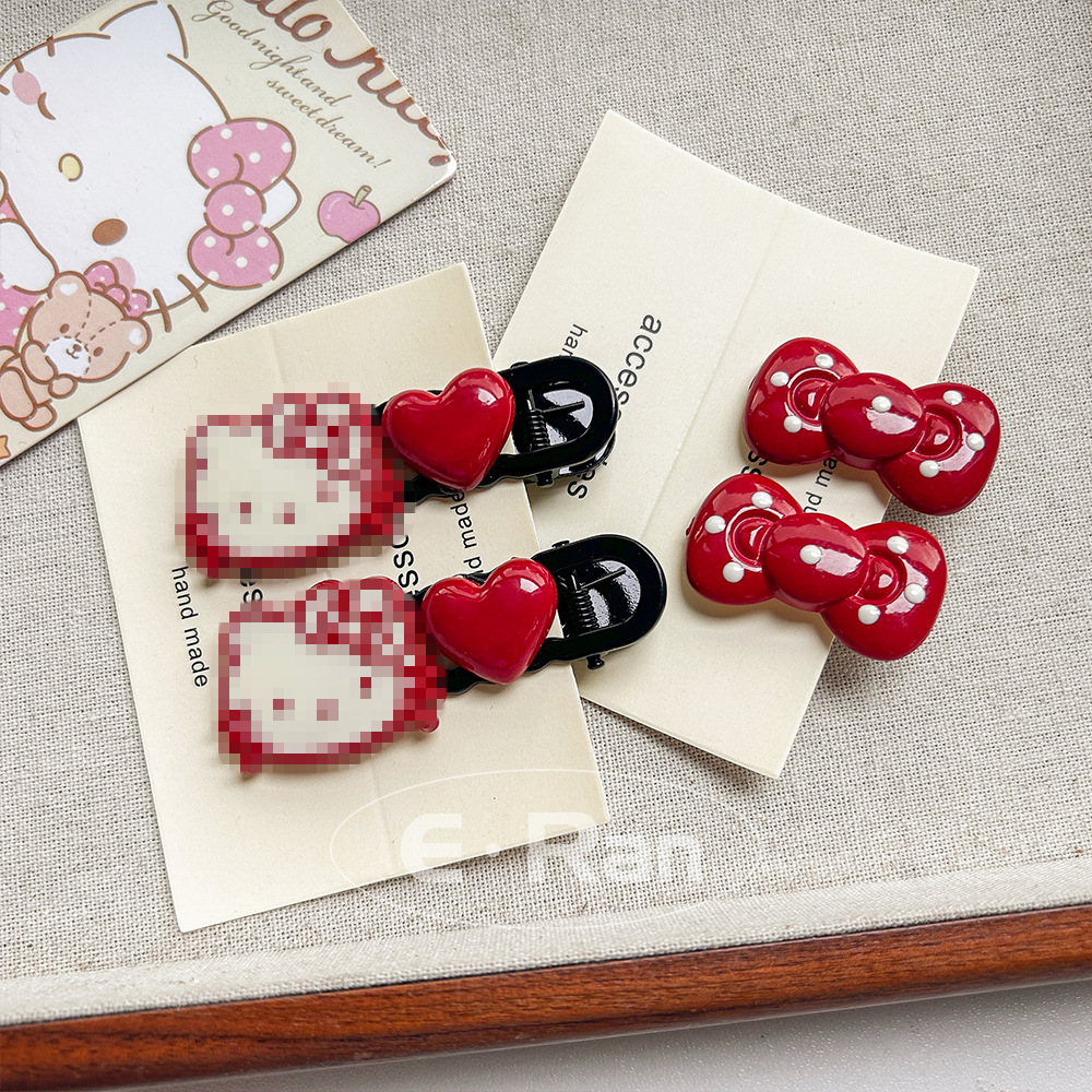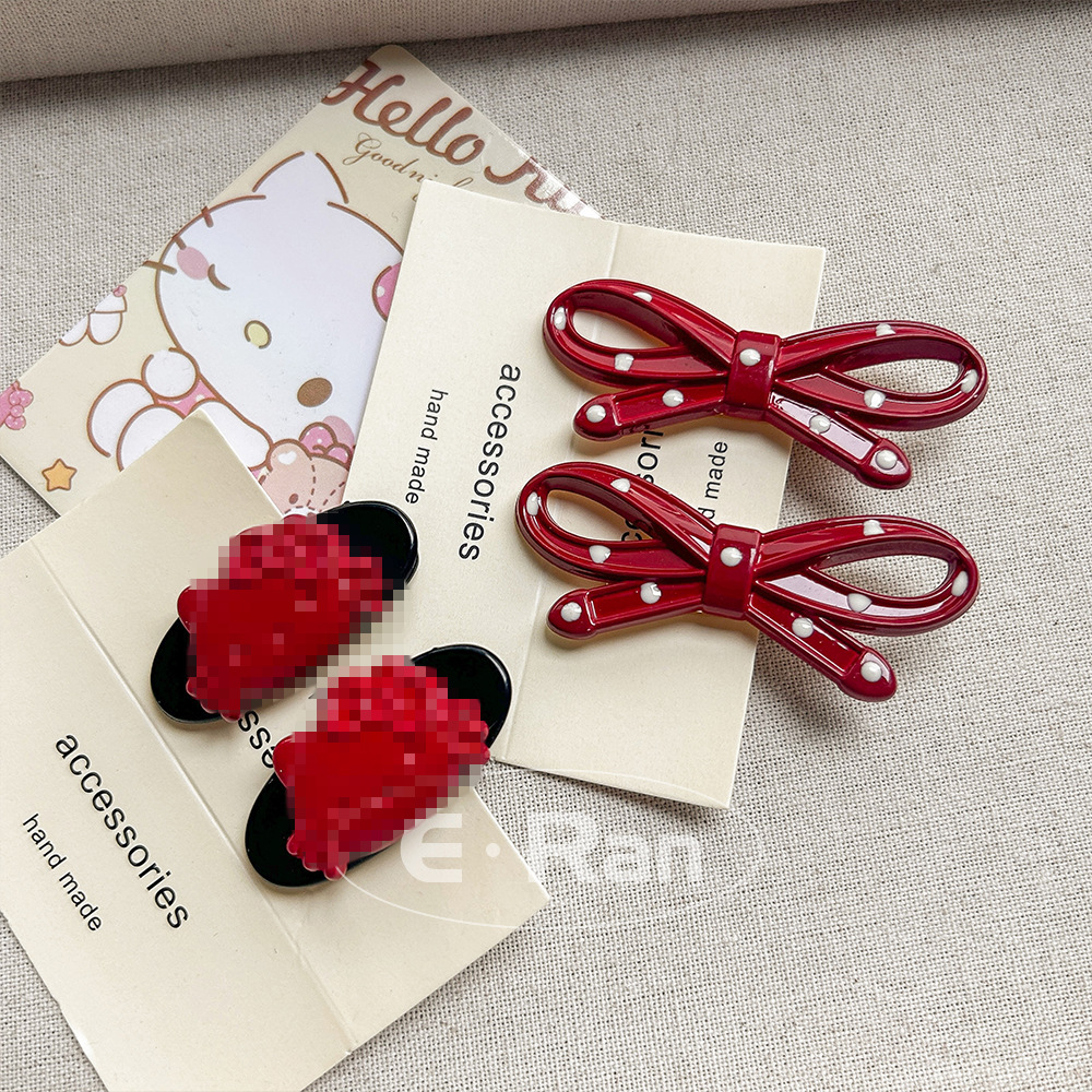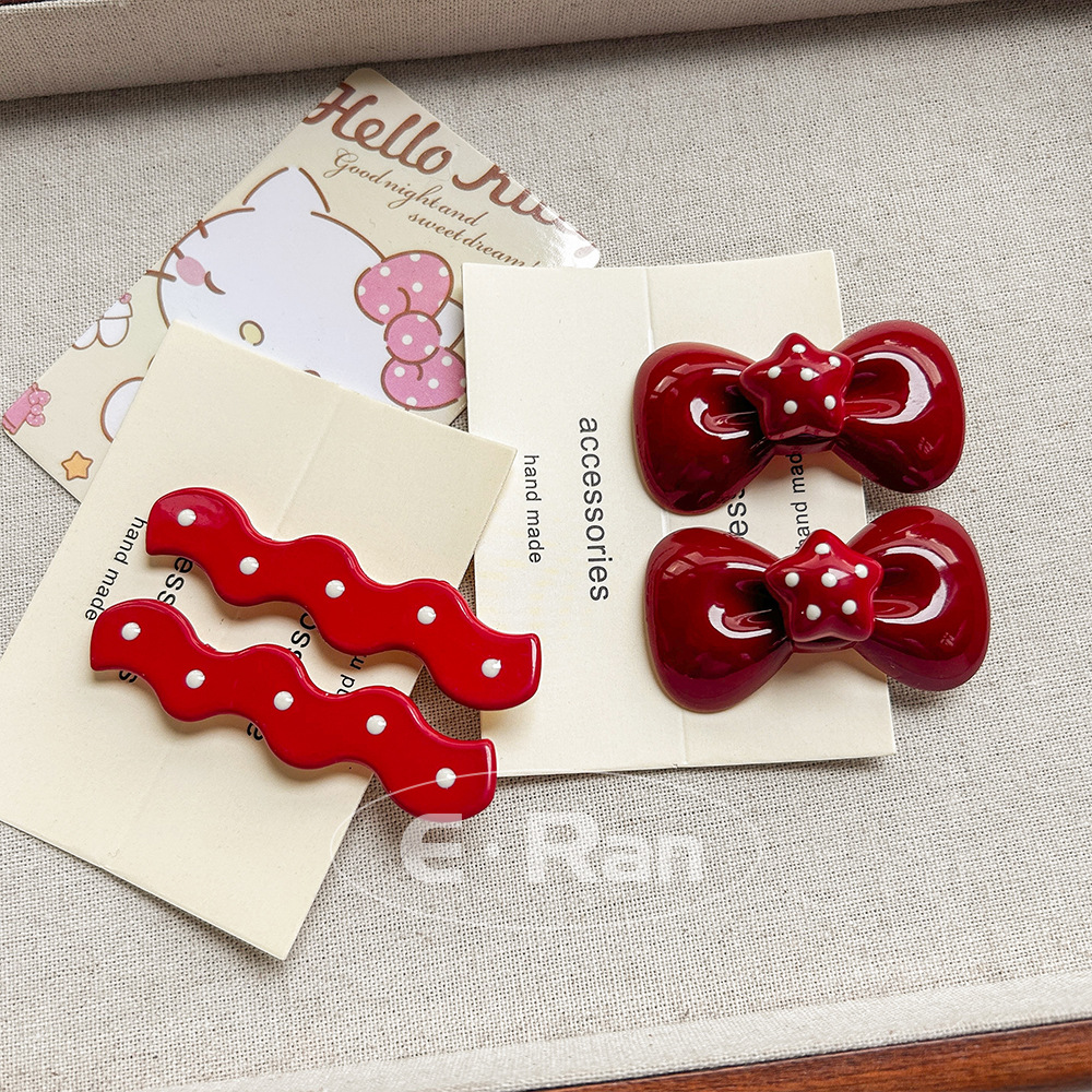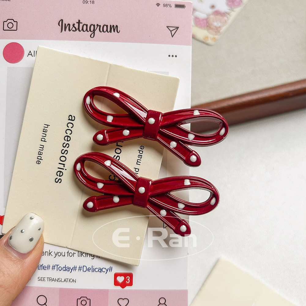 새로운 앙고라 레드 도트무늬 리본 머리핀 인스타 감성 헤어 액세서리 앞머리핀 사이드핀 여성용 헤어 장식스토어 가기
