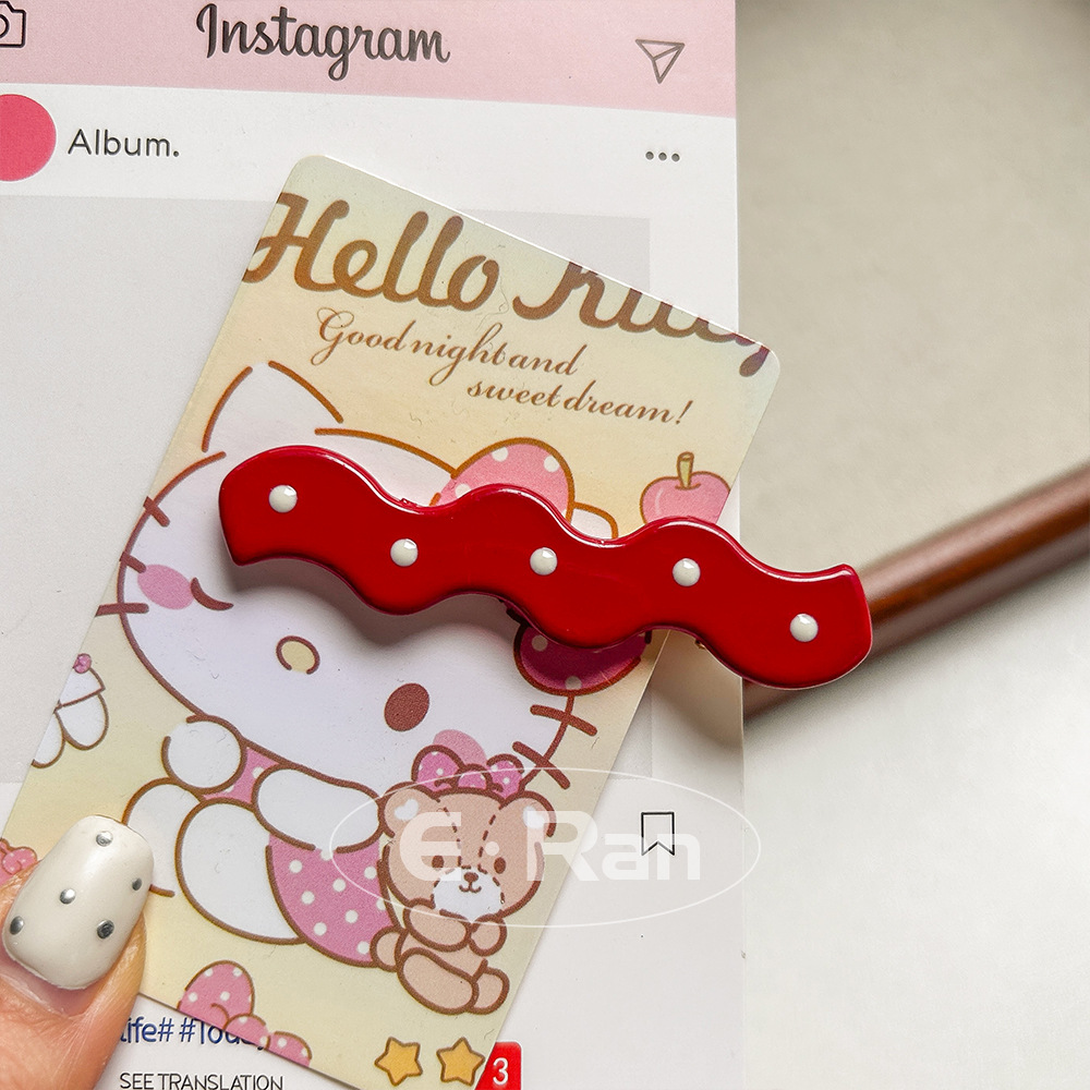 새로운 앙고라 레드 도트무늬 리본 머리핀 인스타 감성 헤어 액세서리 앞머리핀 사이드핀 여성용 헤어 장식