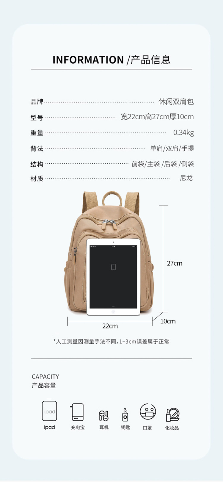 새로운 나일론 방수 대용량 학생 Schoolbag 야외 여행 통근 배낭 여성 경량 올 매치 배낭