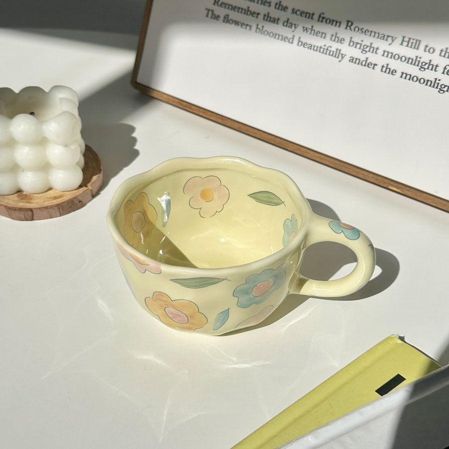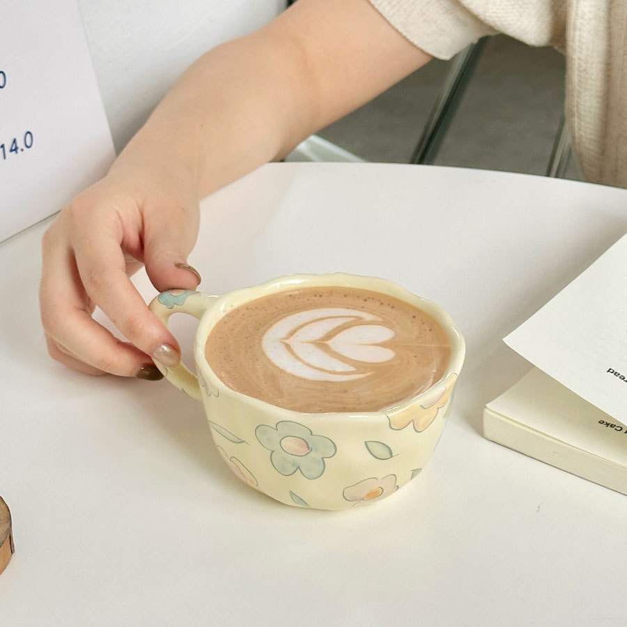 밀크 후푸 세라믹 커피 컵 플로럴 인 스타일 커플 머그잔 홈 아침 식사 컵 우유 물 컵