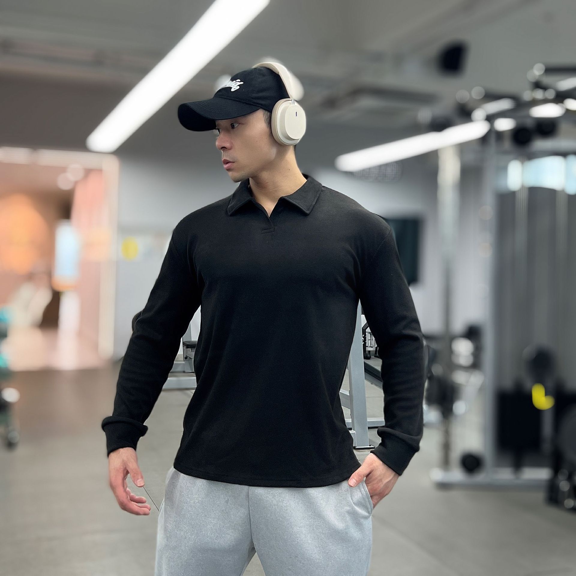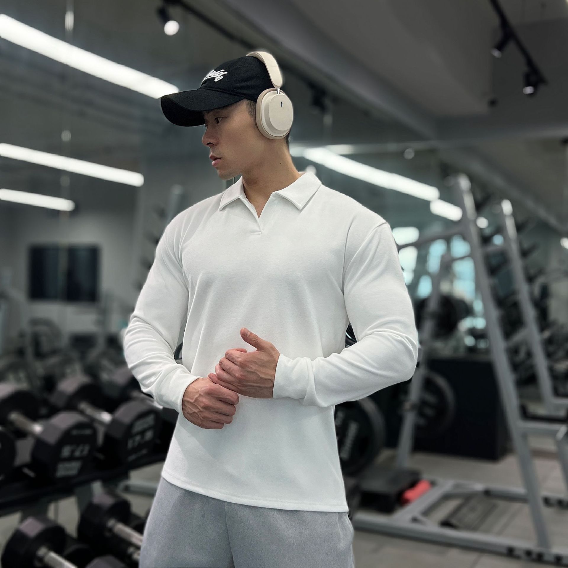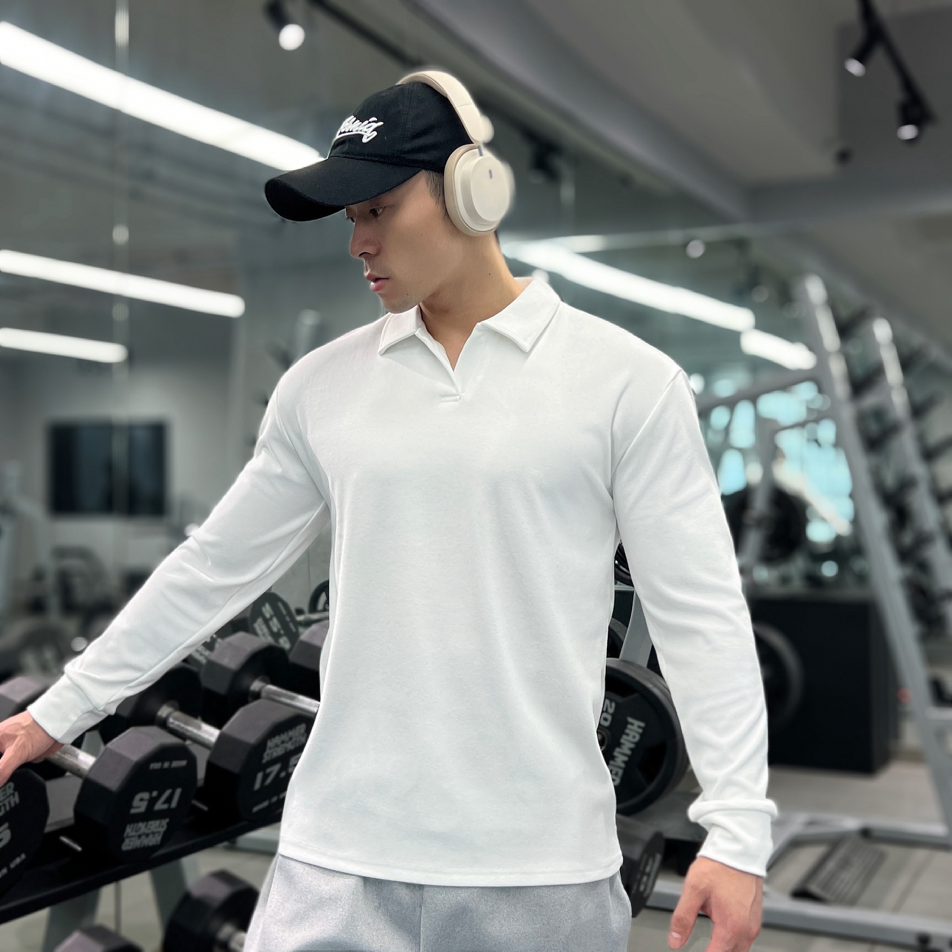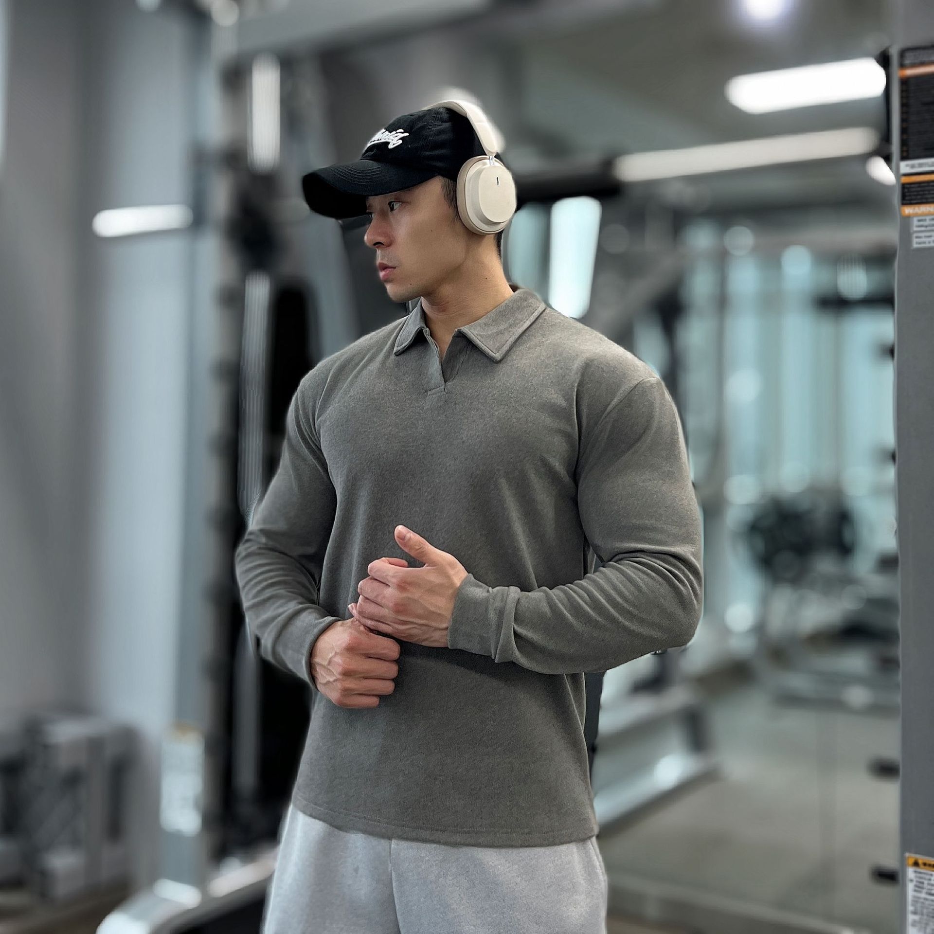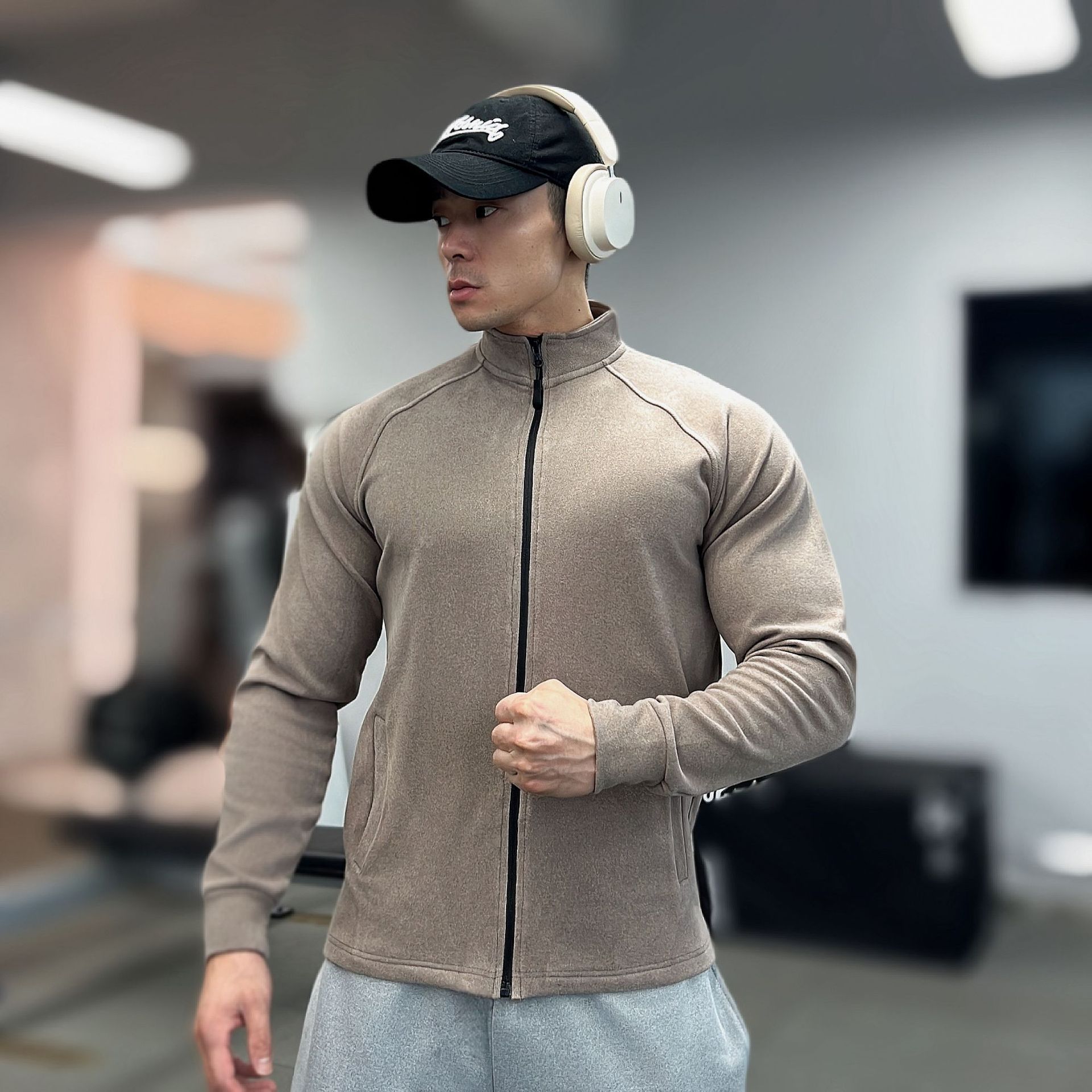 가을, 겨울 무거운 양면 독일 벨벳 따뜻한 슬림 피트니스 지퍼/레트로 폴로 칼라 스포츠 고탄력 바닥 긴팔 T스토어 가기