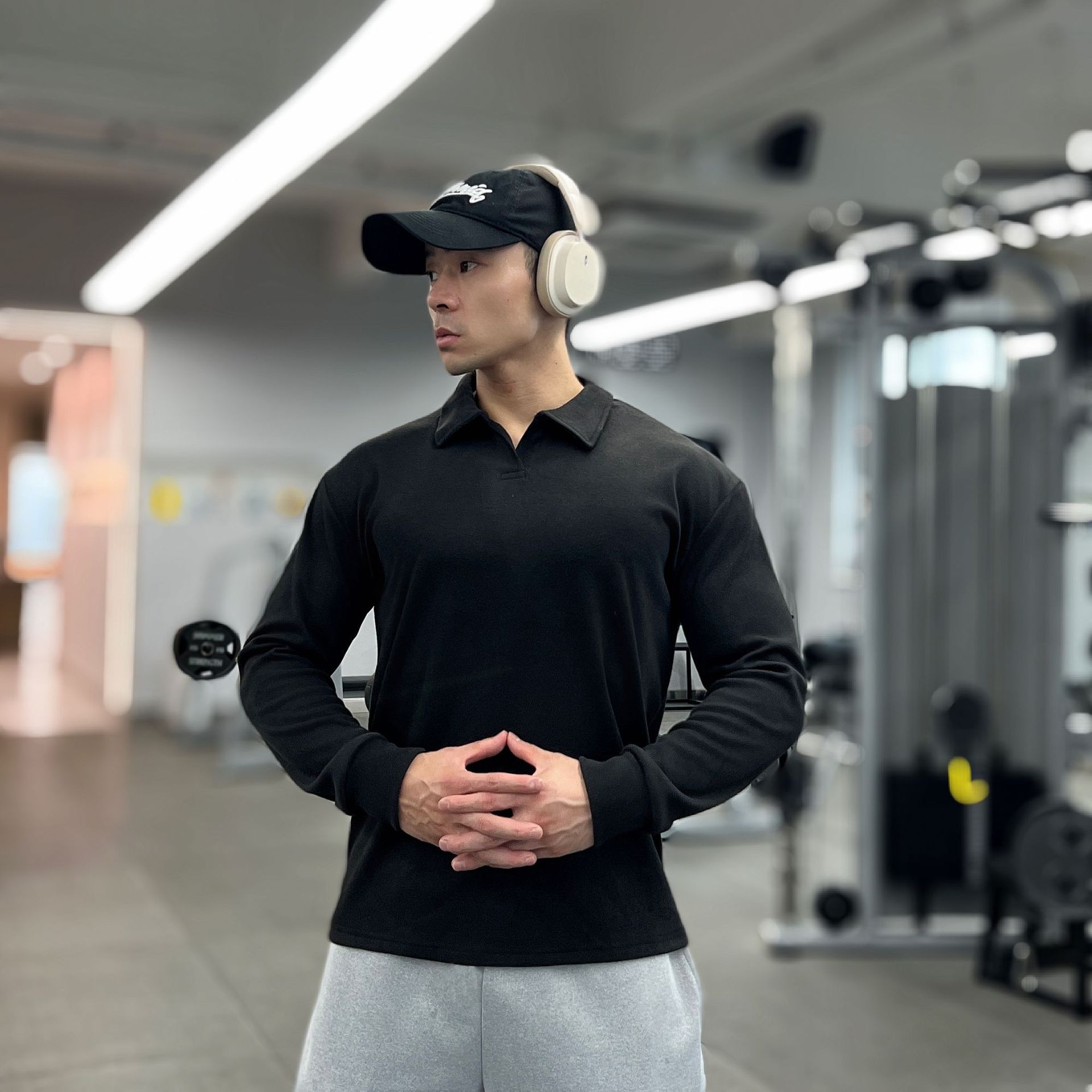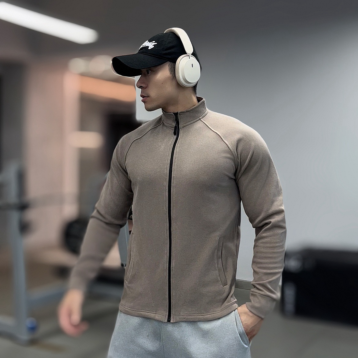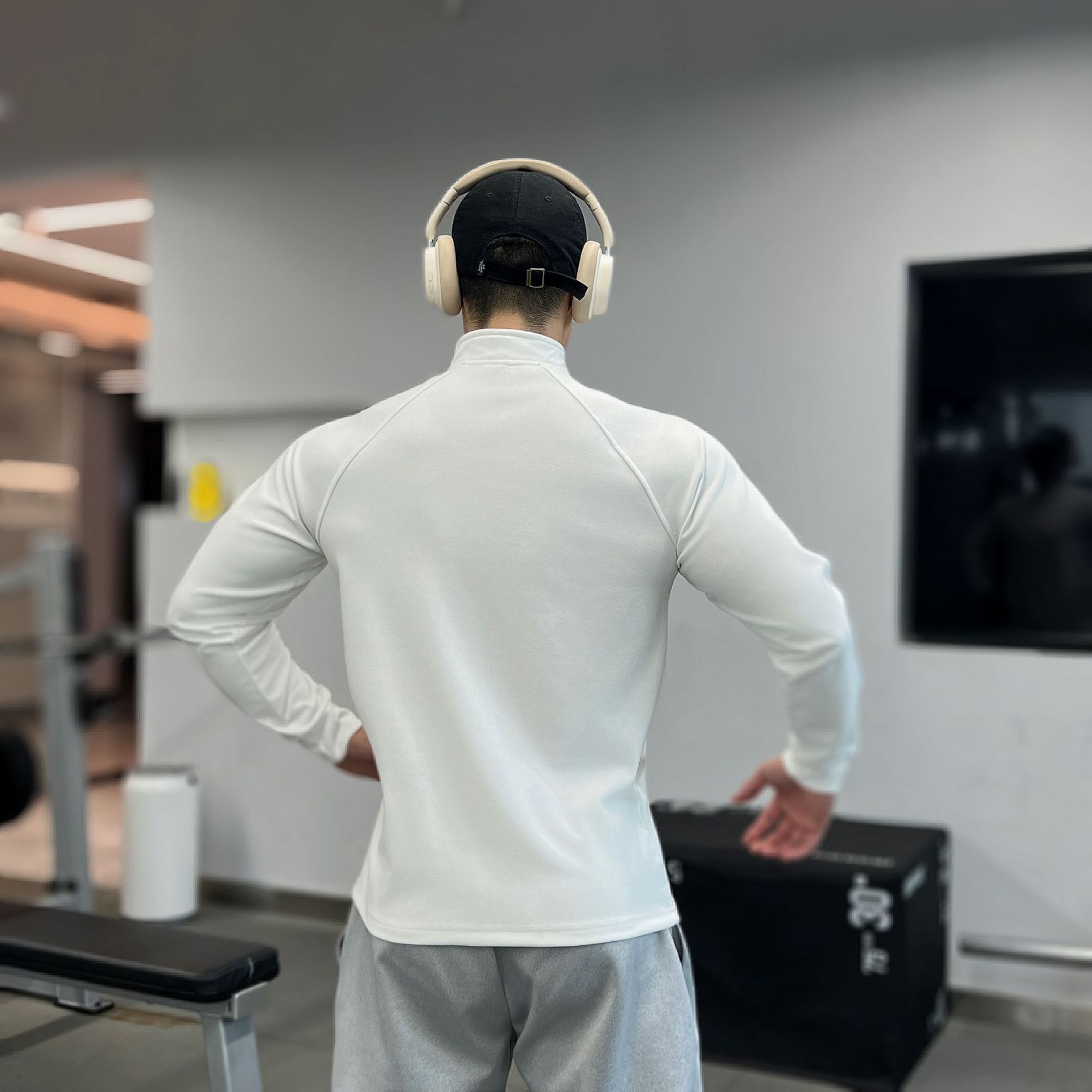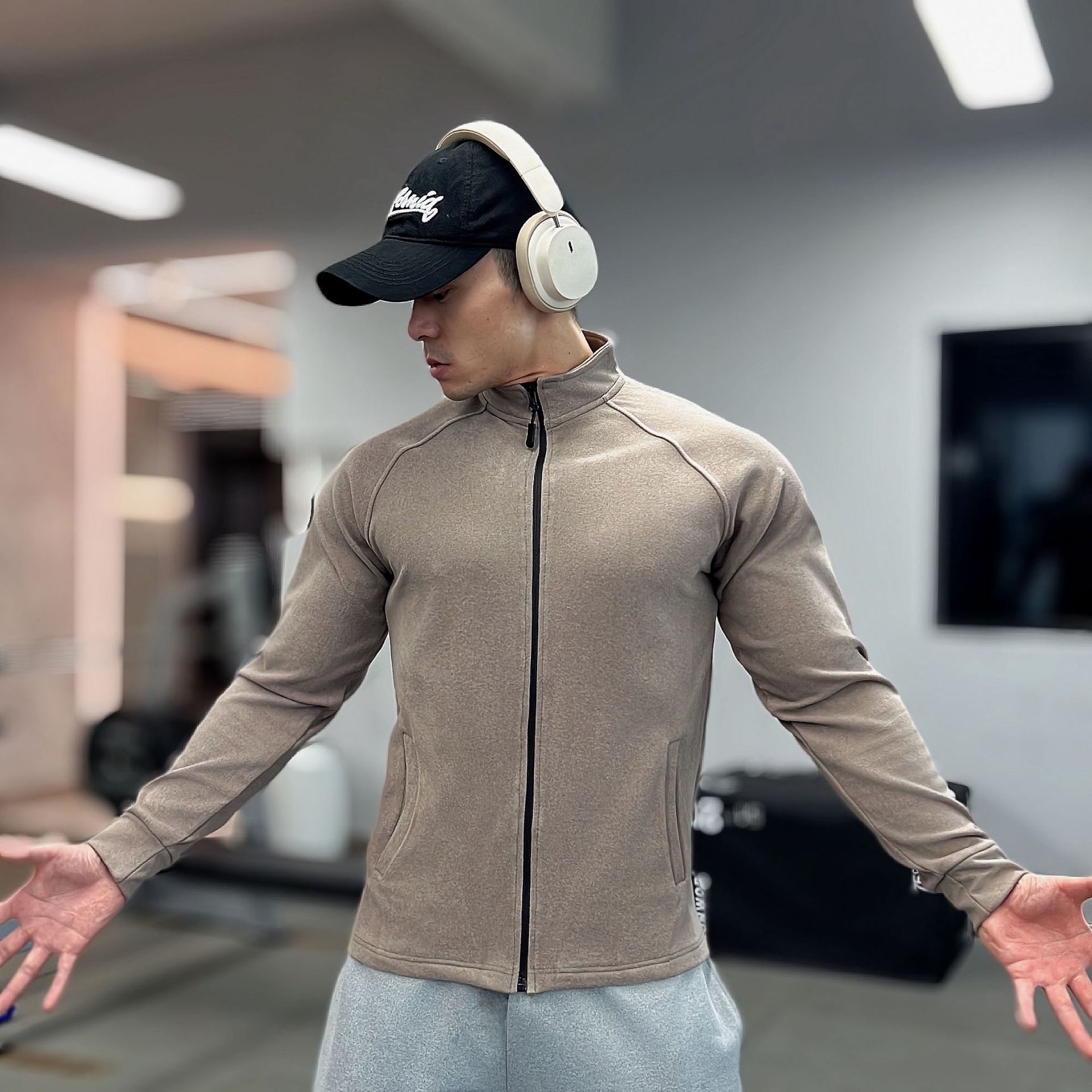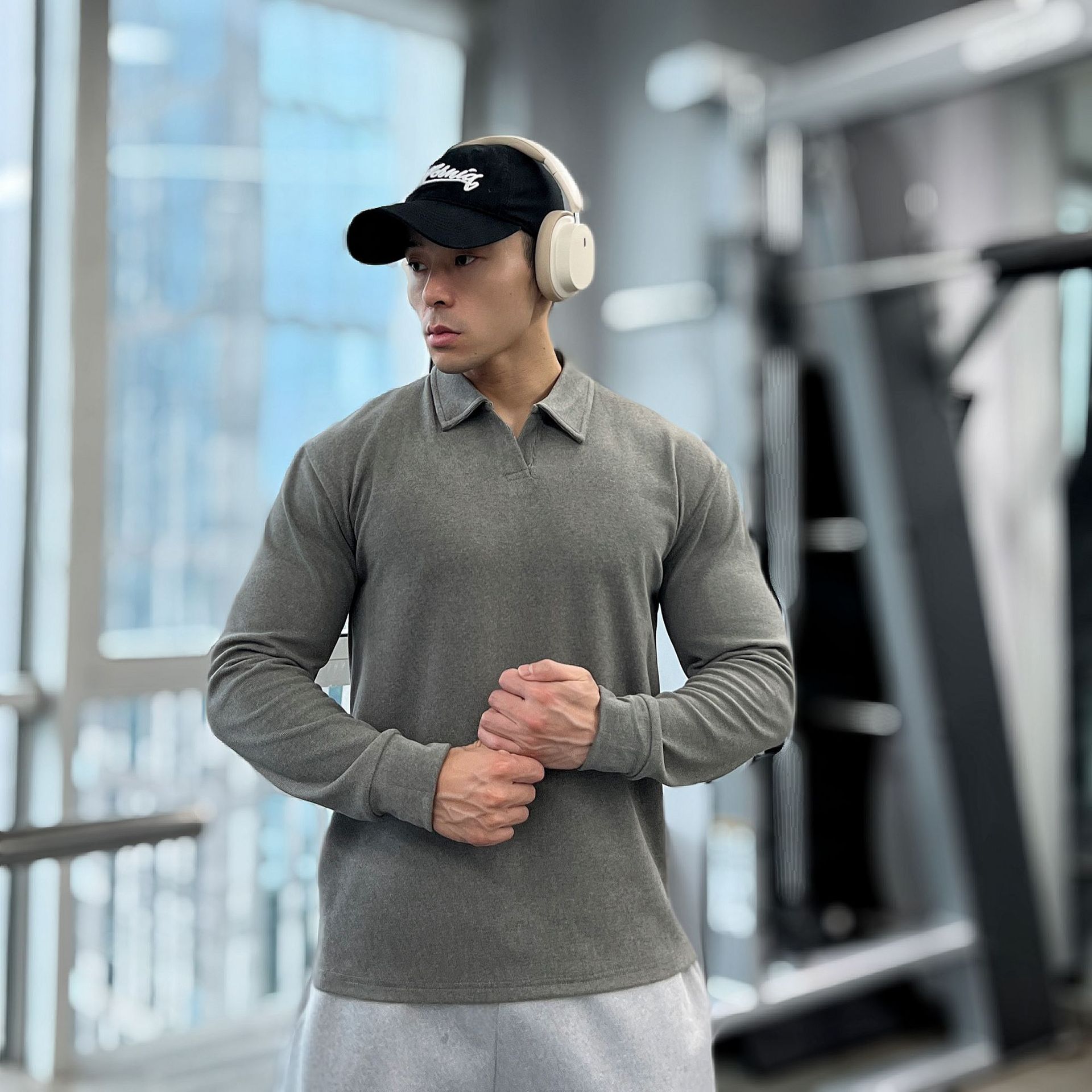 가을, 겨울 무거운 양면 독일 벨벳 따뜻한 슬림 피트니스 지퍼/레트로 폴로 칼라 스포츠 고탄력 바닥 긴팔 T스토어 가기
