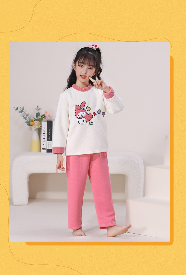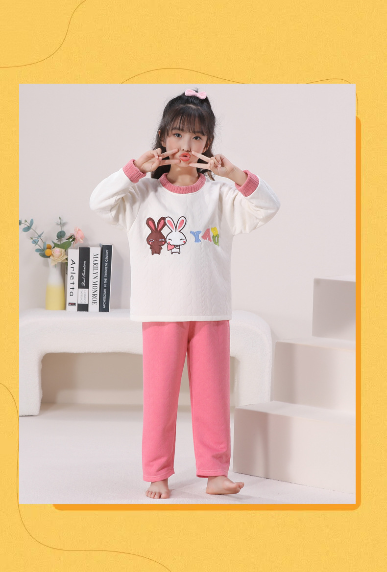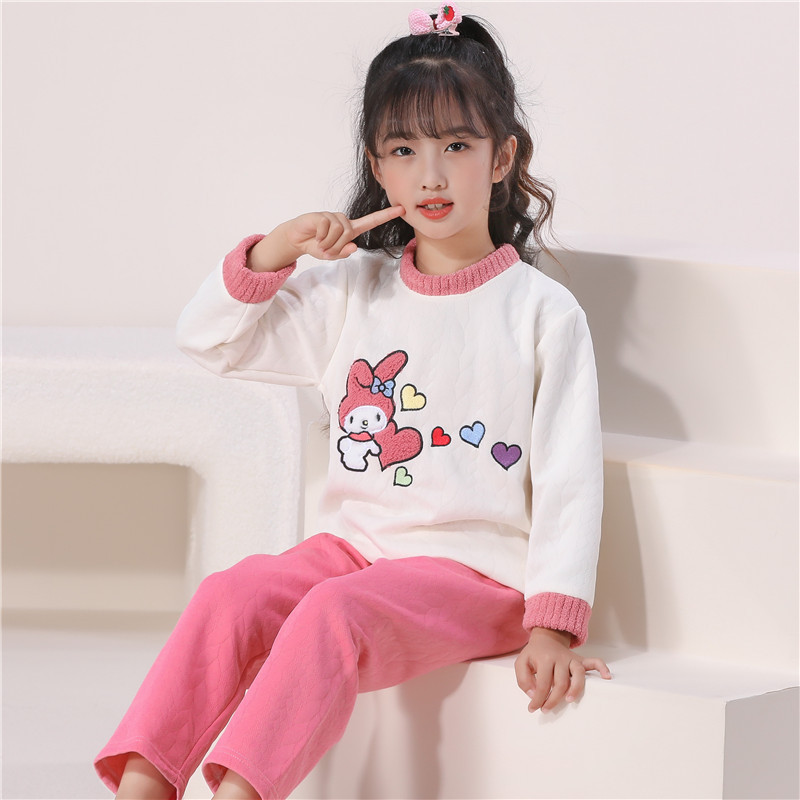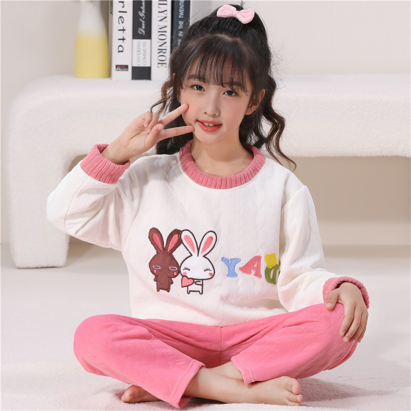 2024 가을과 겨울 새로운 여자 긴 소매 바지 둥근 목 어린이 속옷 세트 귀여운 소녀 아기 잠옷