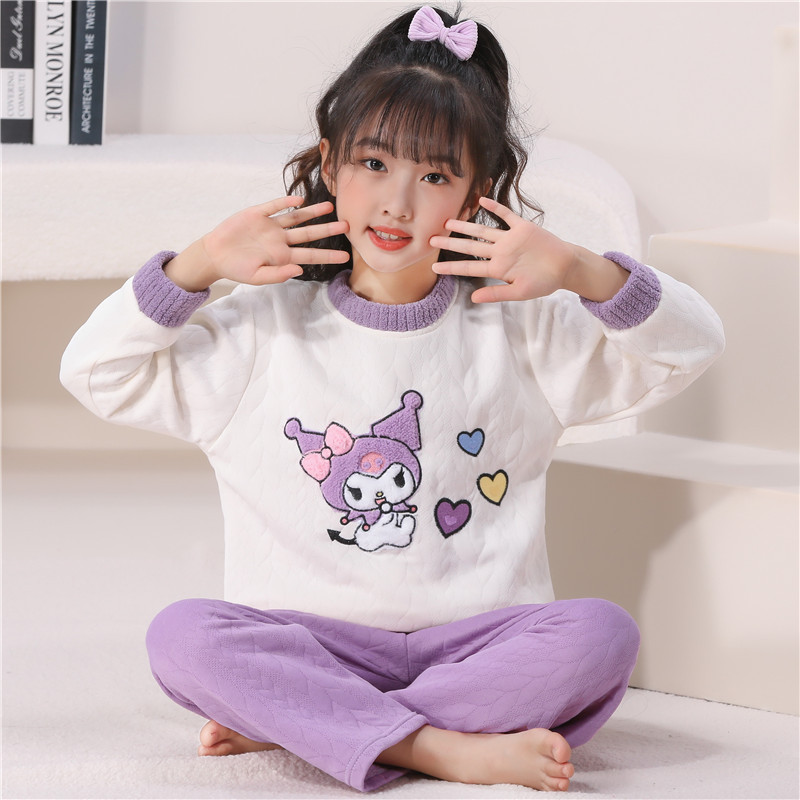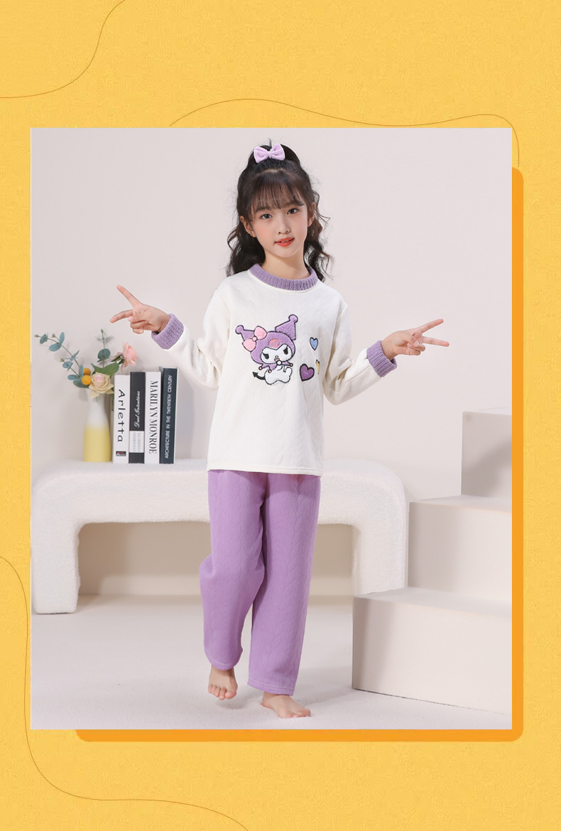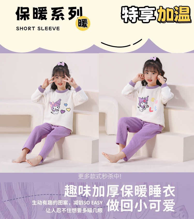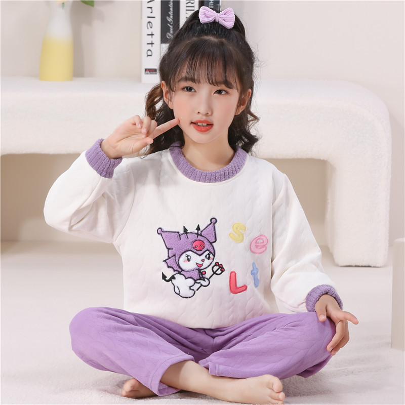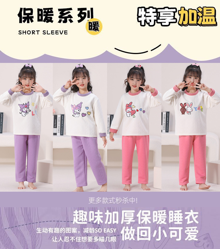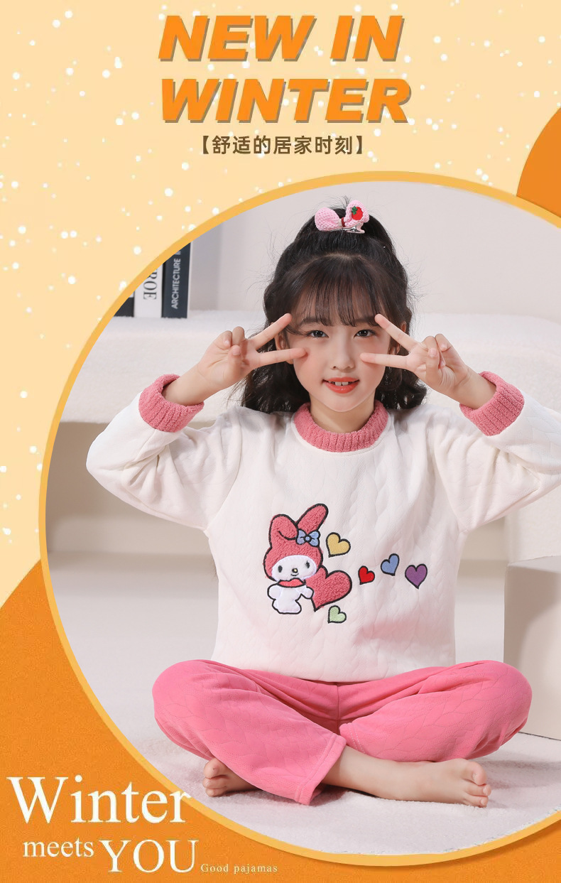 2024 가을과 겨울 새로운 여자 긴 소매 바지 둥근 목 어린이 속옷 세트 귀여운 소녀 아기 잠옷스토어 가기