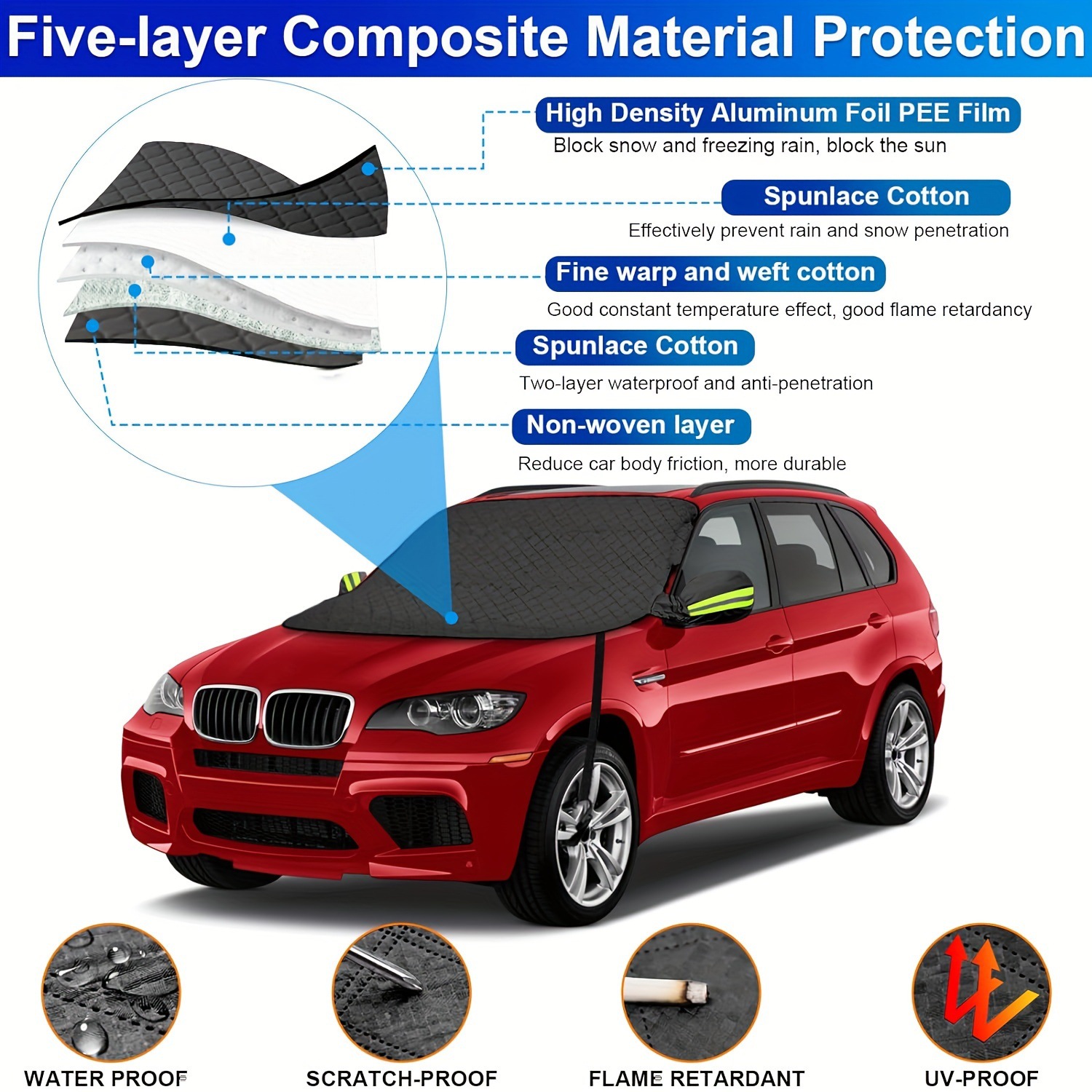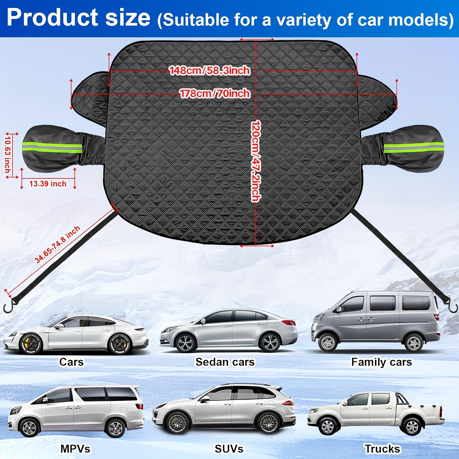 자동차 스노우 쉴드 두꺼운 앞 유리 눈 커버 부동액 블랙 5 층 면 마그네틱 스노우 쉴드 방풍 후크