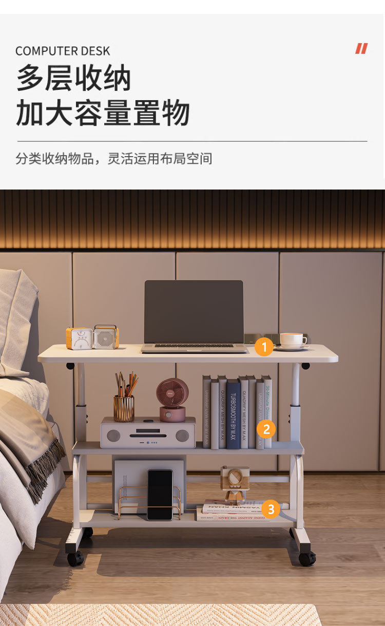 높이 조절 가능한 책상 다층 수납 이동식 작은 테이블 화장대 다층 수납 발코니 작은 테이블 침대 옆 테이블