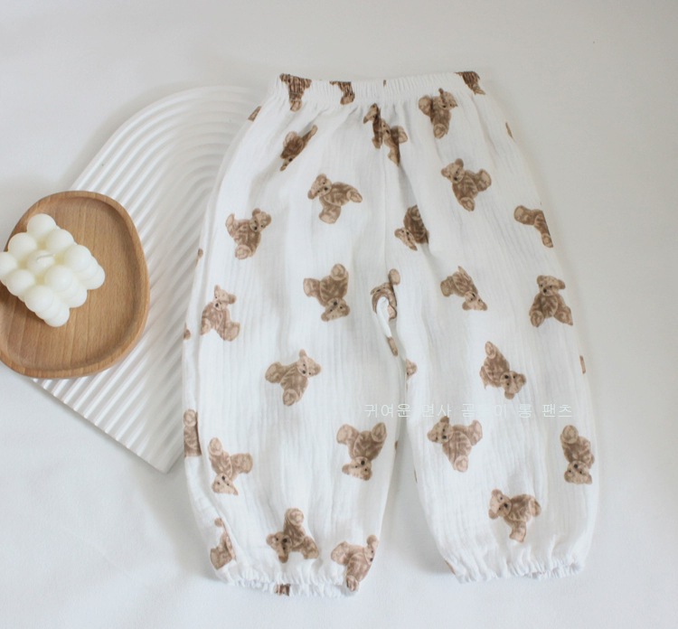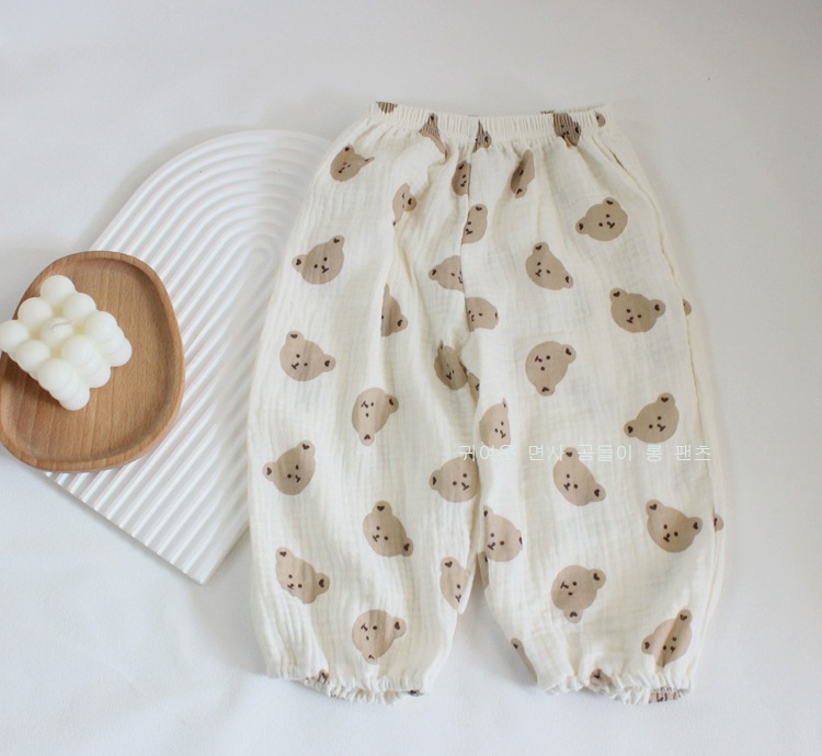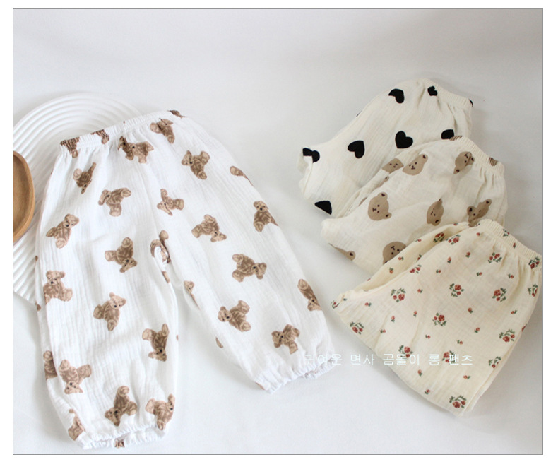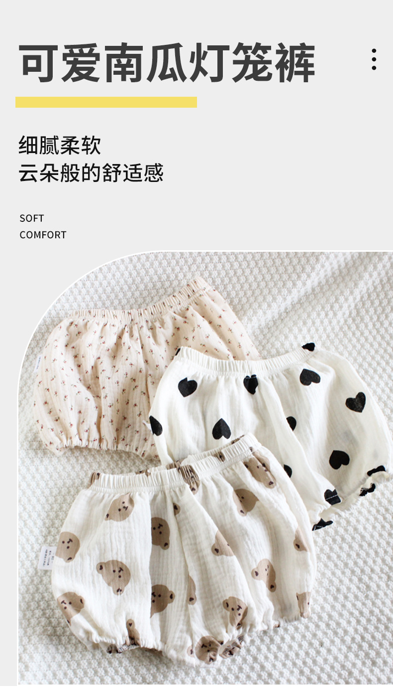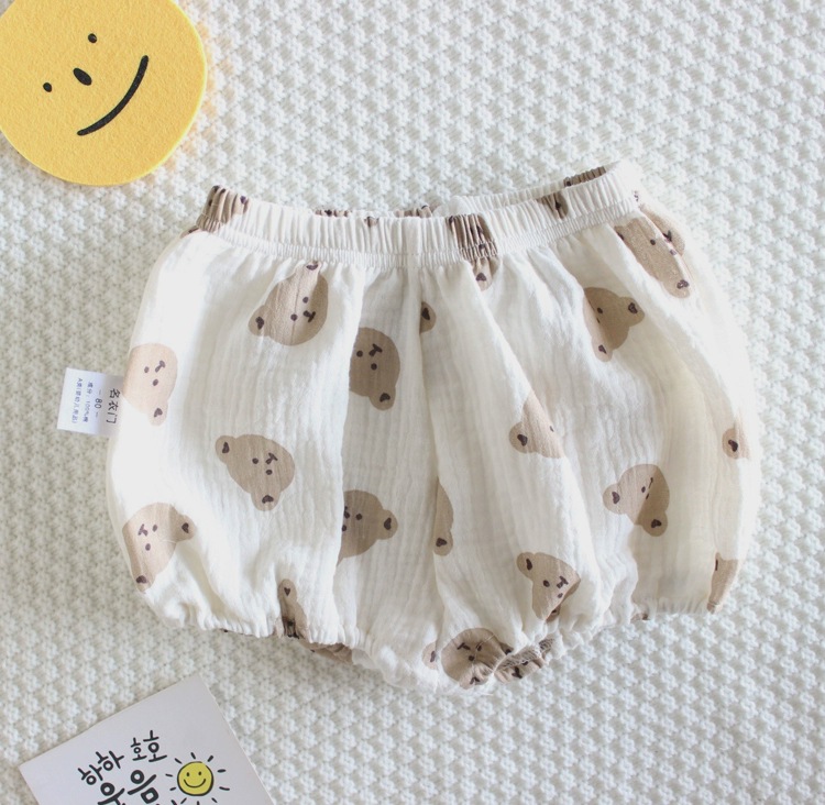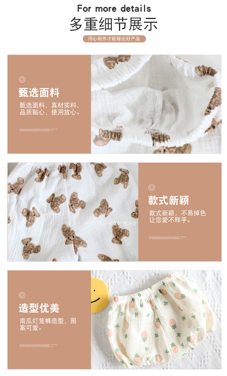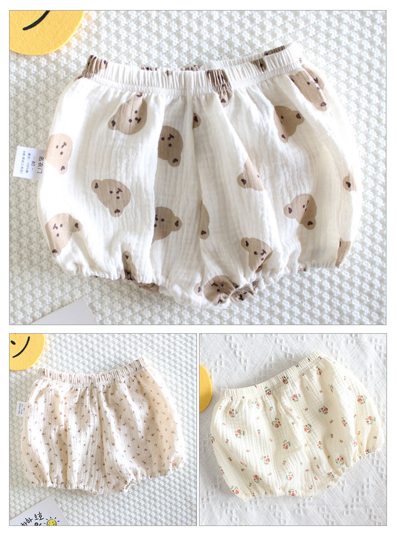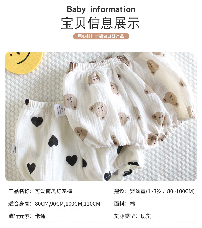 한국어 여름 아기 귀여운 대형 PP 호박 랜턴 바지 인쇄 곰 꽃 남성과 여성 아기 면화 거즈 반바지스토어 가기