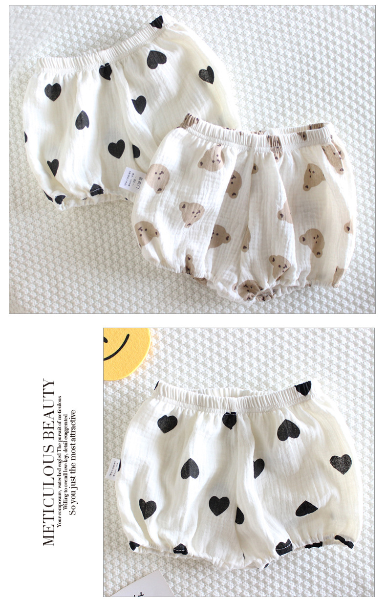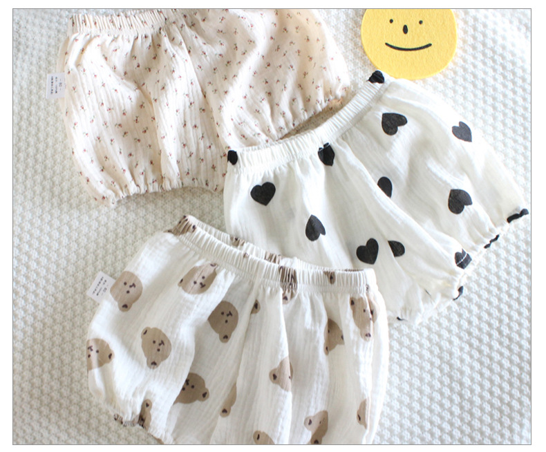 한국어 여름 아기 귀여운 대형 PP 호박 랜턴 바지 인쇄 곰 꽃 남성과 여성 아기 면화 거즈 반바지