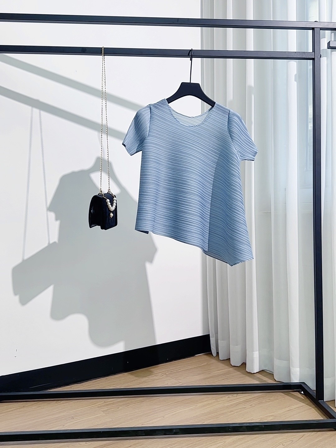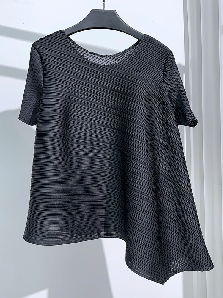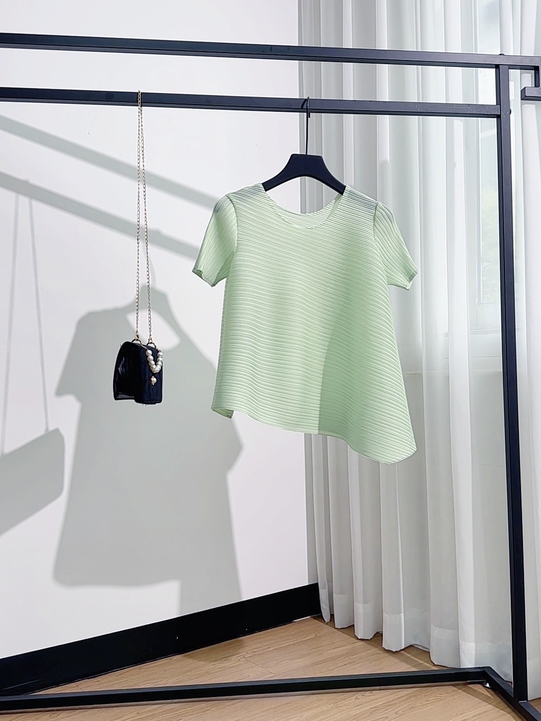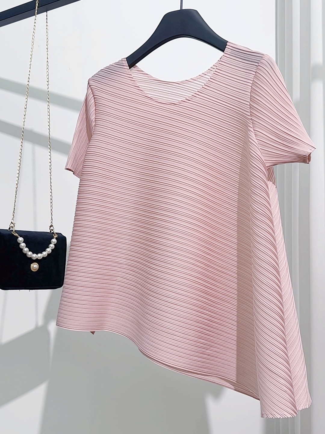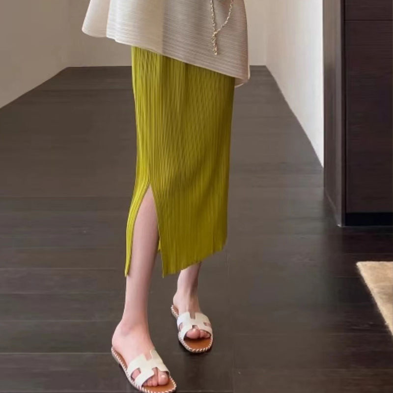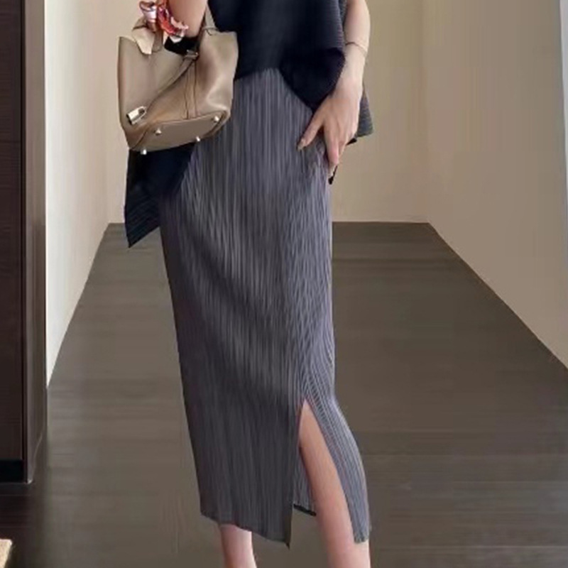 미야케 2024 새로운 스타일의 기질 사교계 솔리드 컬러 넓은 편안한 슬 랜트 탑 힙합 스커트 여름 세트 여성스토어 가기