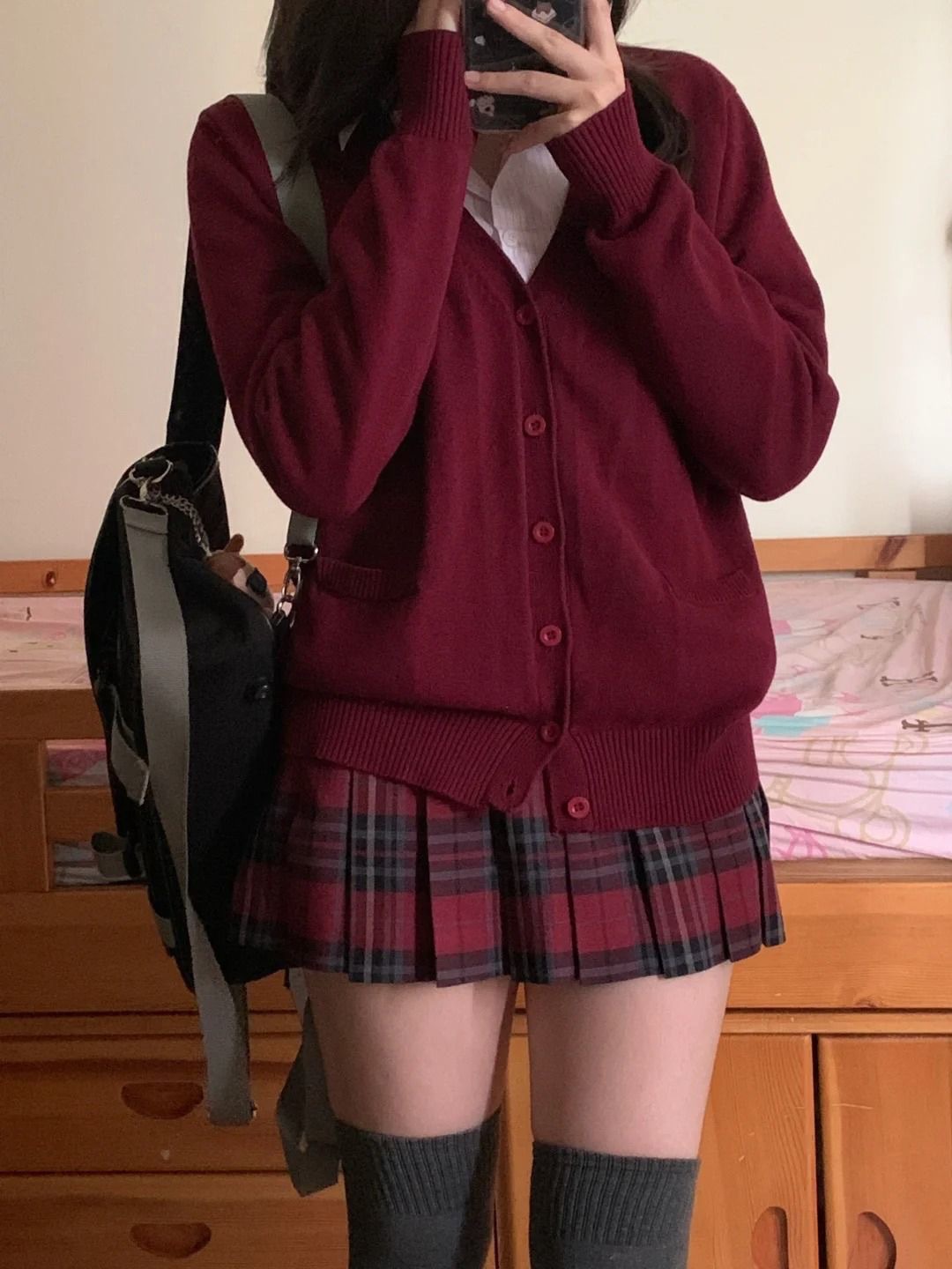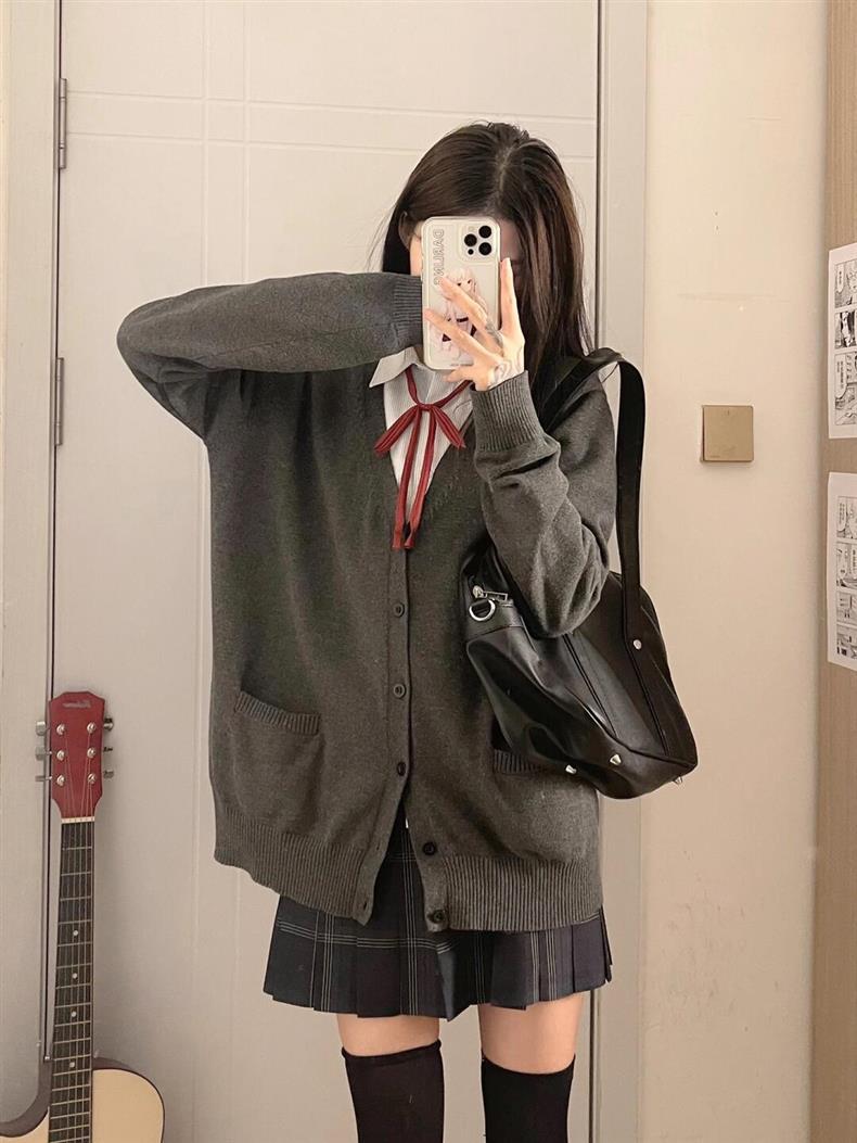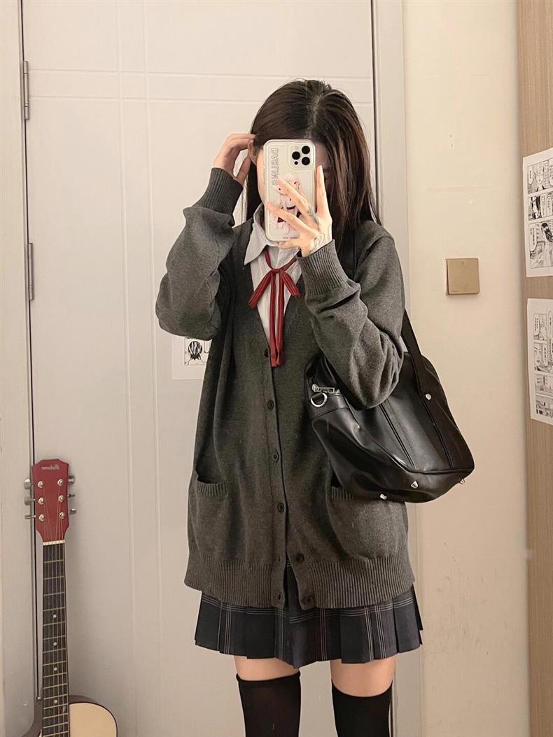 가와시마 개인 오리지널 JK 솔리드 컬러 스웨터 코트 가을과 겨울 일본 대학 스타일 학생 유니폼 니트 카디건스토어 가기