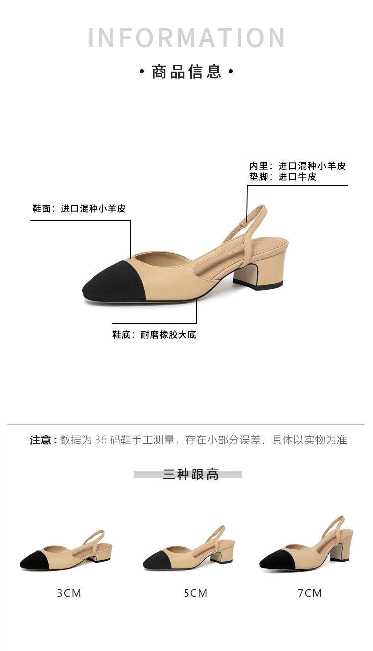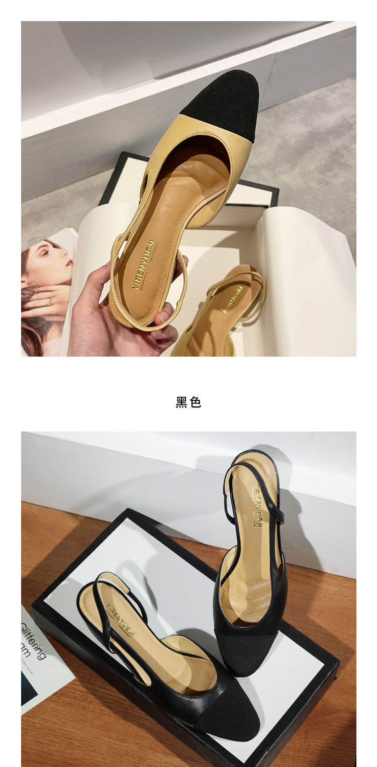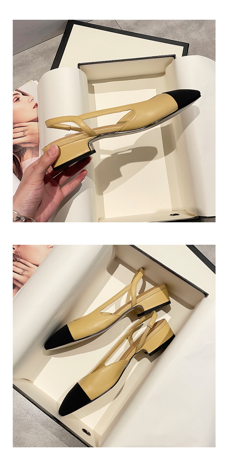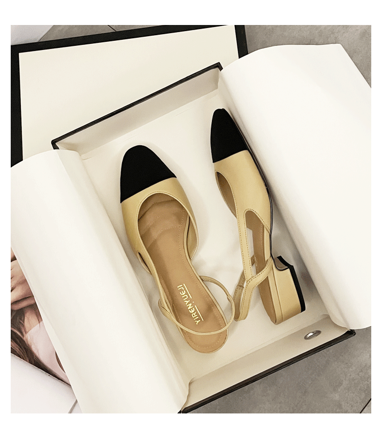 양가죽 발가락 작은 샤넬 스타일 샌들 여성의 2025 년 새로운 여름 아우터 착용 미드 힐 컬러 블록 프렌치 두꺼운 힐 하이힐 신발스토어 가기
