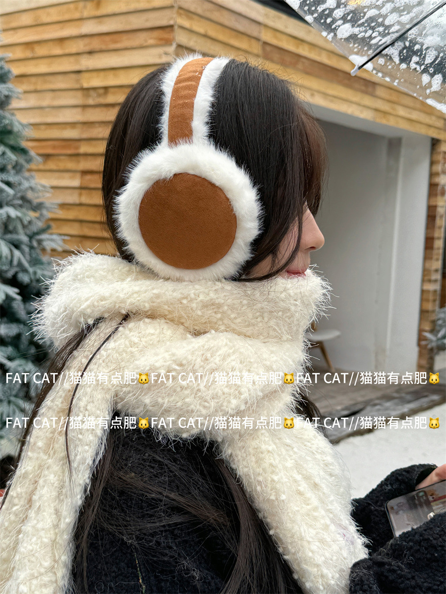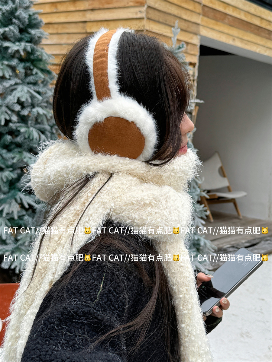 Maillard 다크 브라운 봉제 귀마개 여성 겨울 2024 새로운 따뜻한 내한심 자전거 귀 보호 귀 따뜻한 귀 덮개스토어 가기