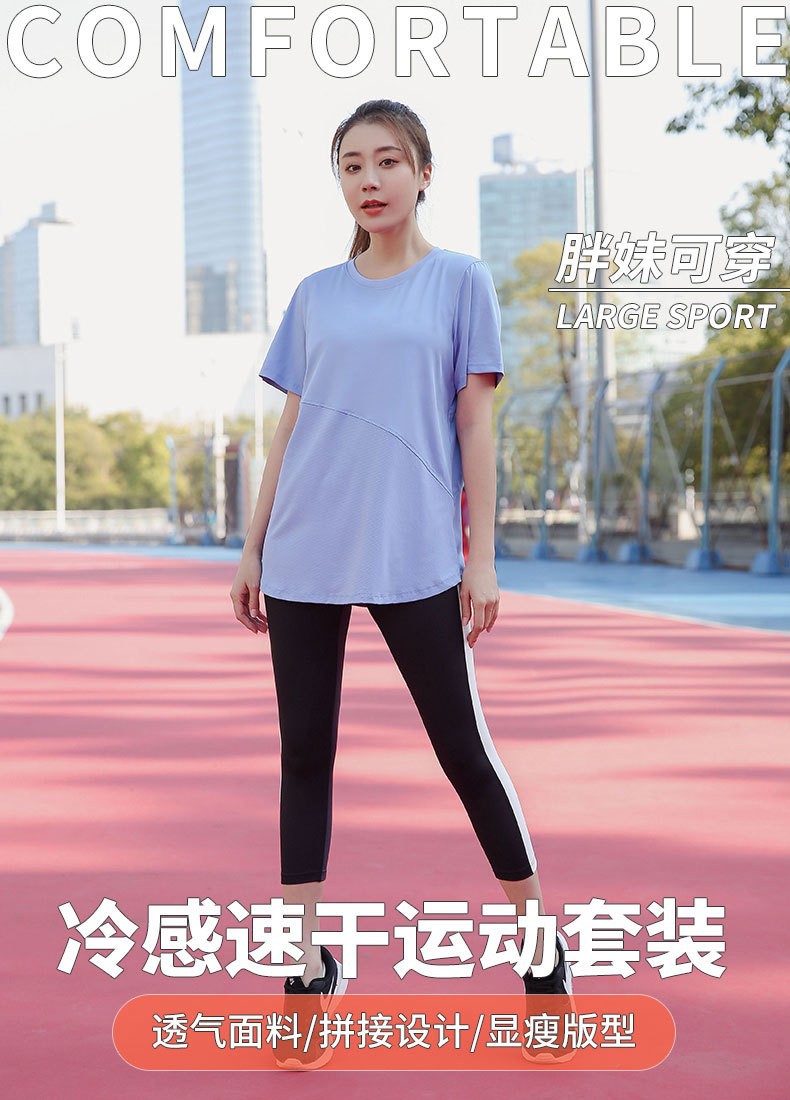 플러스 사이즈 스포츠 티셔츠 여자 여름 느슨한 달리기 200 진 훈련 피트니스 옷 통통녀 짧은 소매 요가 옷 세트스토어 가기