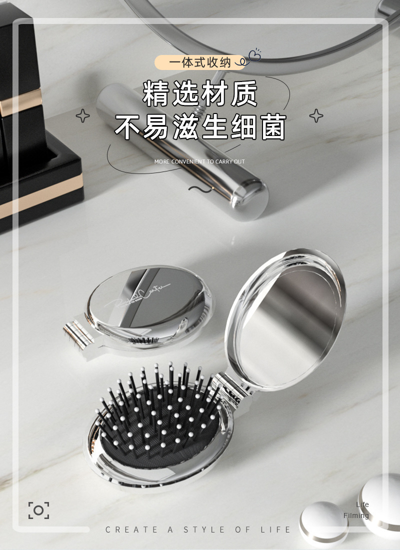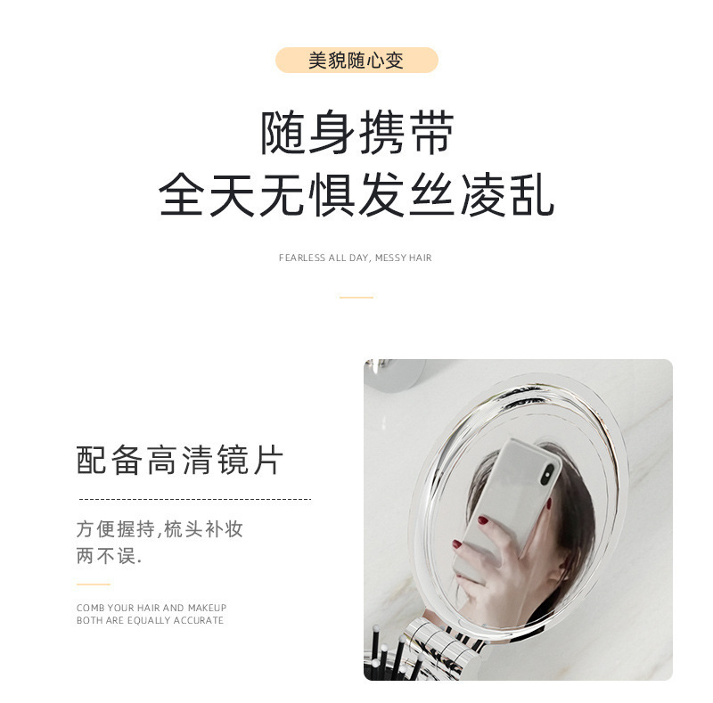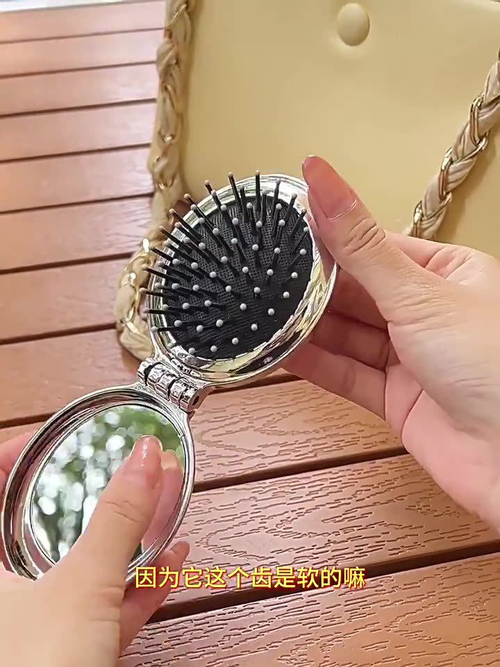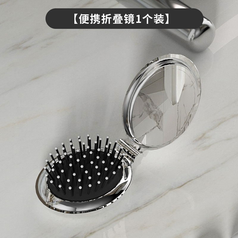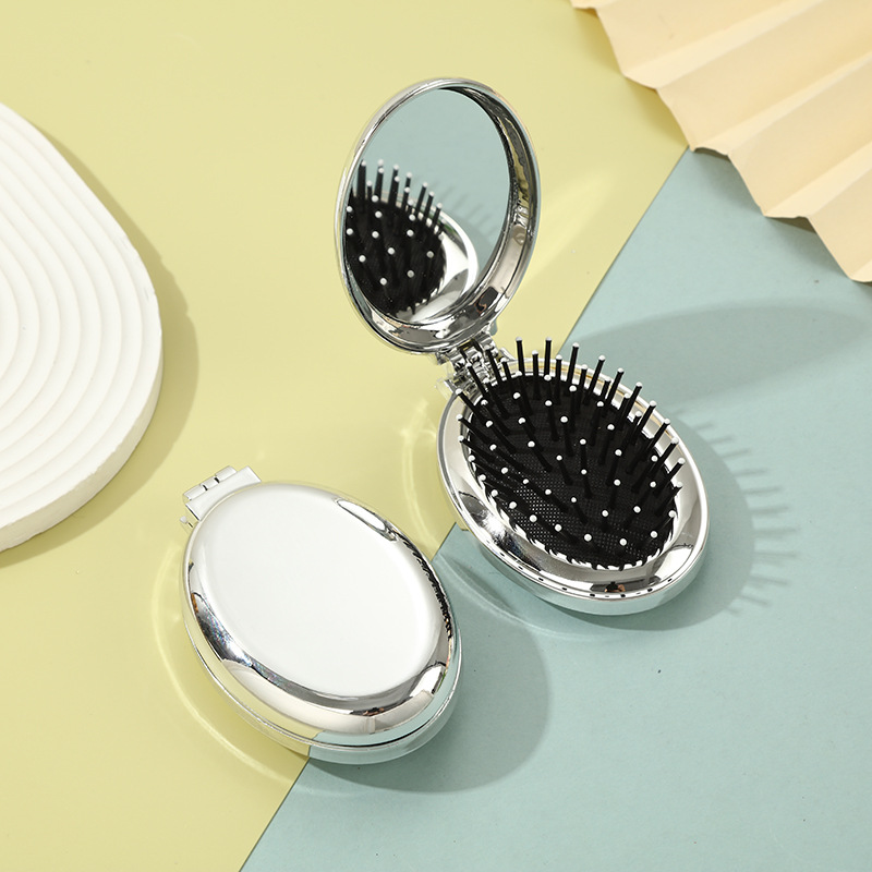타원형 휴대용 접이식 거울 빗, 여성 및 어린이용 소형 빗, 에어쿠션 빗, 머리카락을 부드럽게 해주는 마사지 미니 거울 일체형 빗스토어 가기
