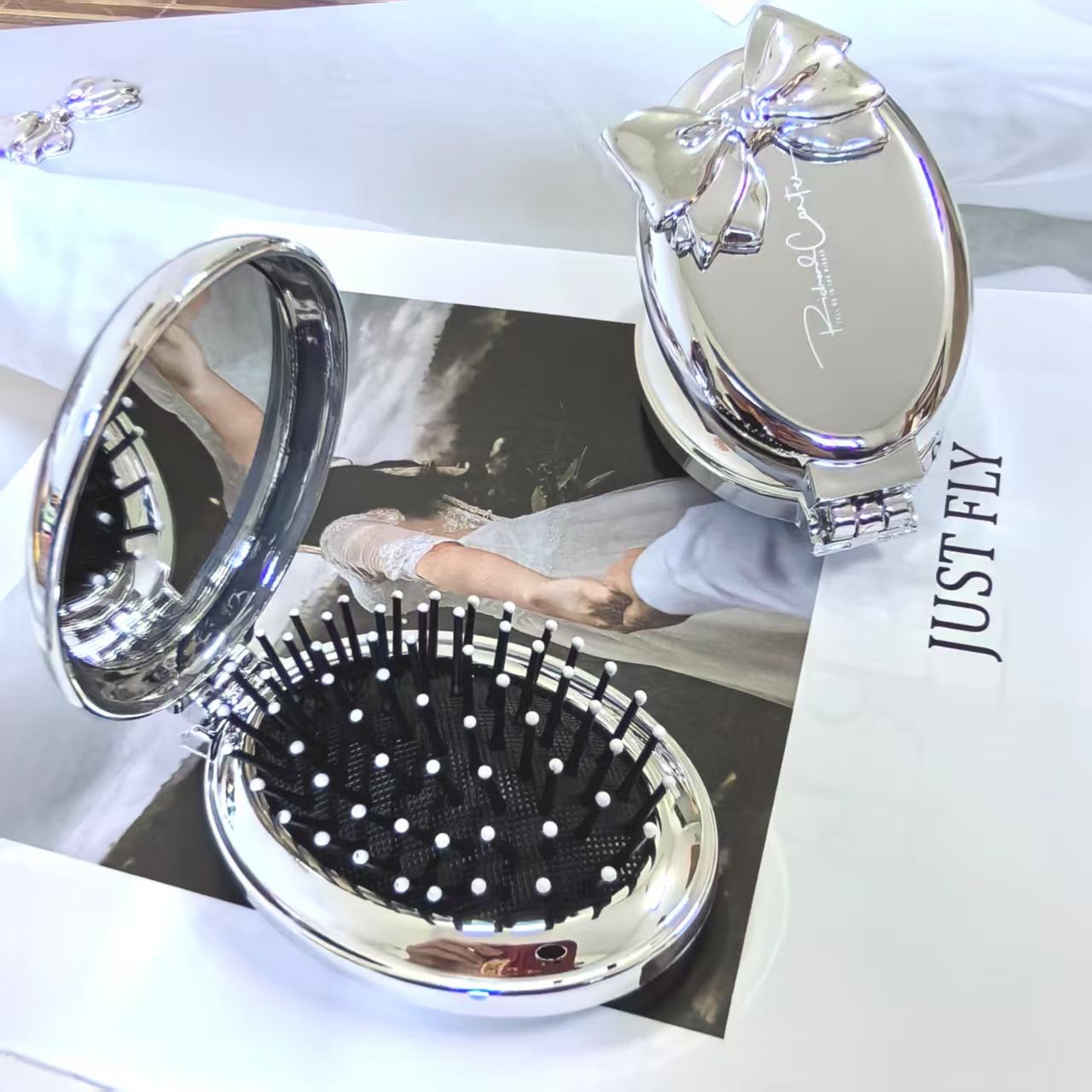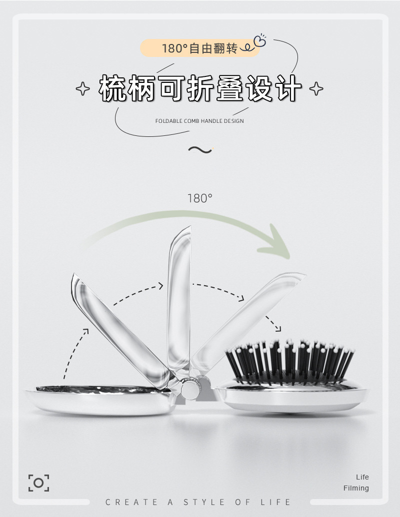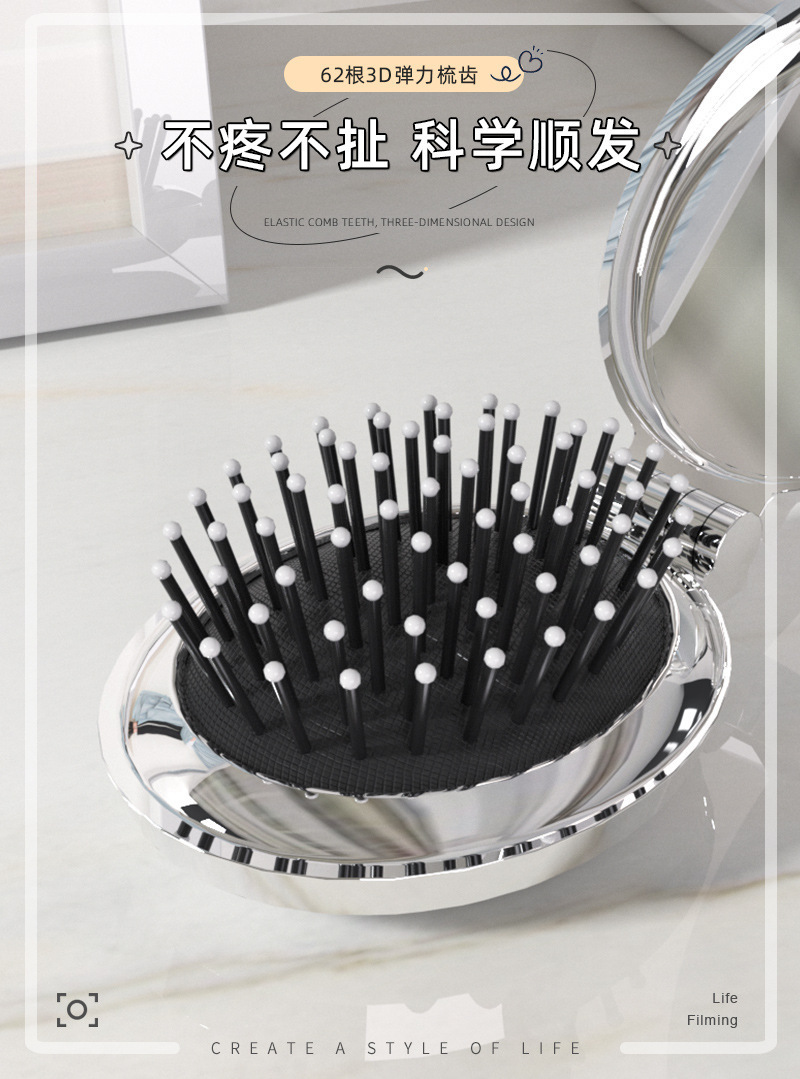 타원형 휴대용 접이식 거울 빗, 여성 및 어린이용 소형 빗, 에어쿠션 빗, 머리카락을 부드럽게 해주는 마사지 미니 거울 일체형 빗스토어 가기