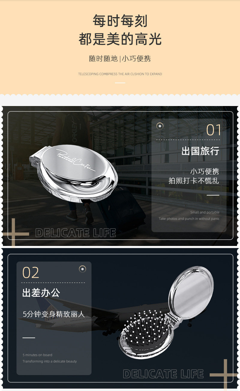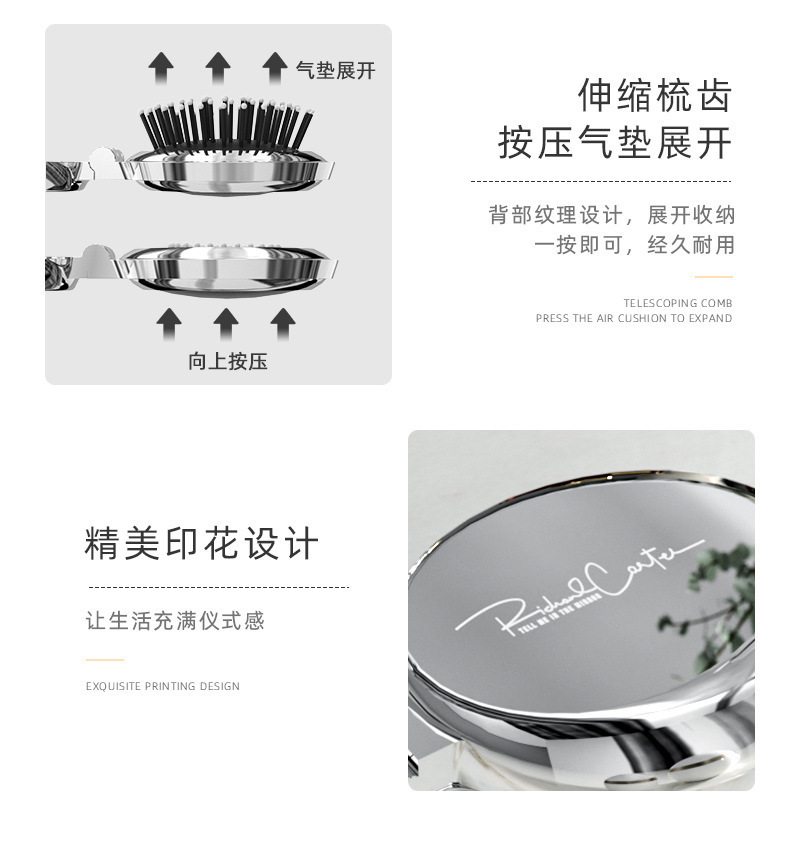 타원형 휴대용 접이식 거울 빗, 여성 및 어린이용 소형 빗, 에어쿠션 빗, 머리카락을 부드럽게 해주는 마사지 미니 거울 일체형 빗
