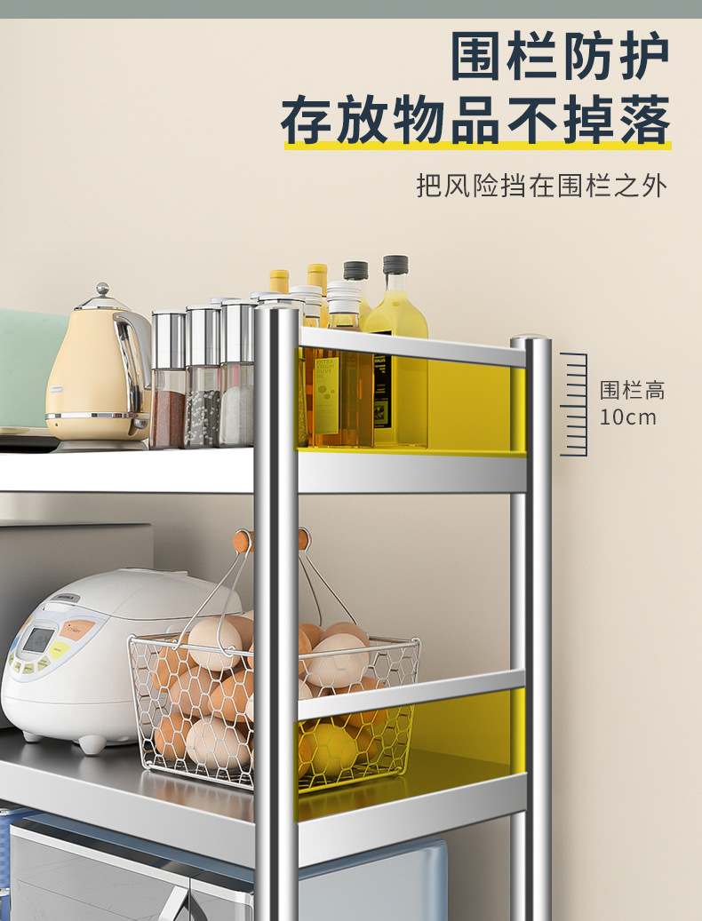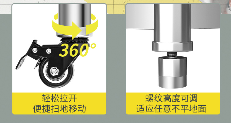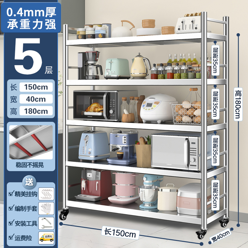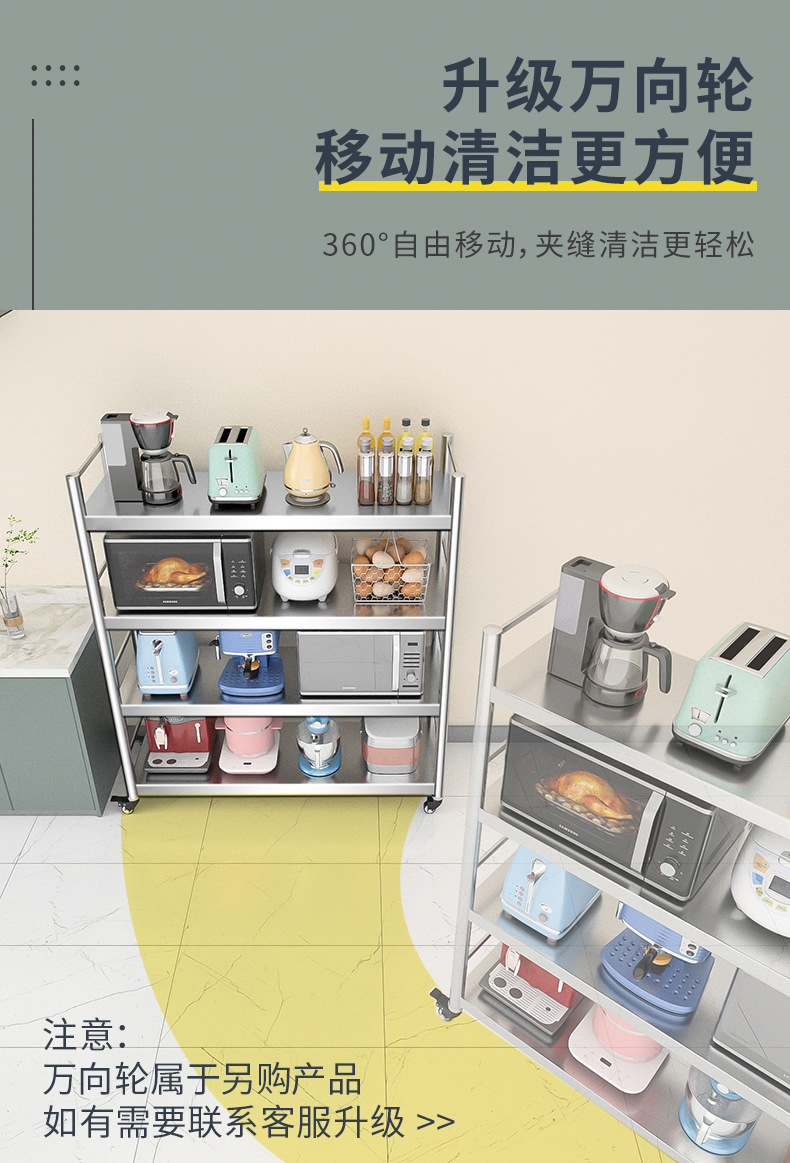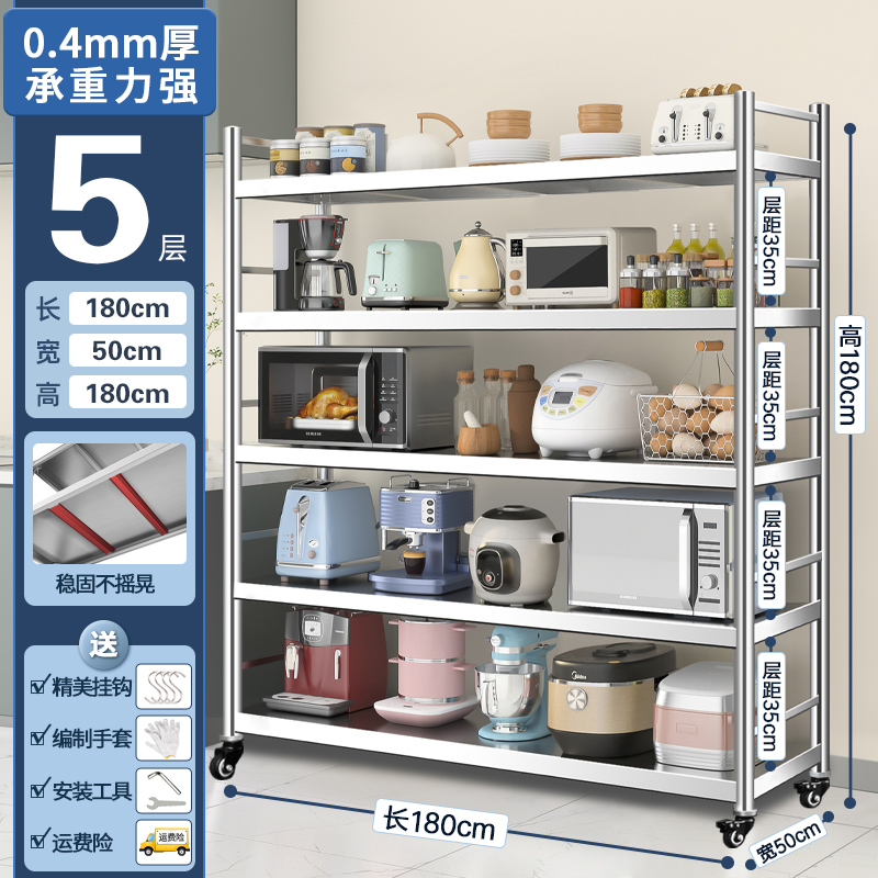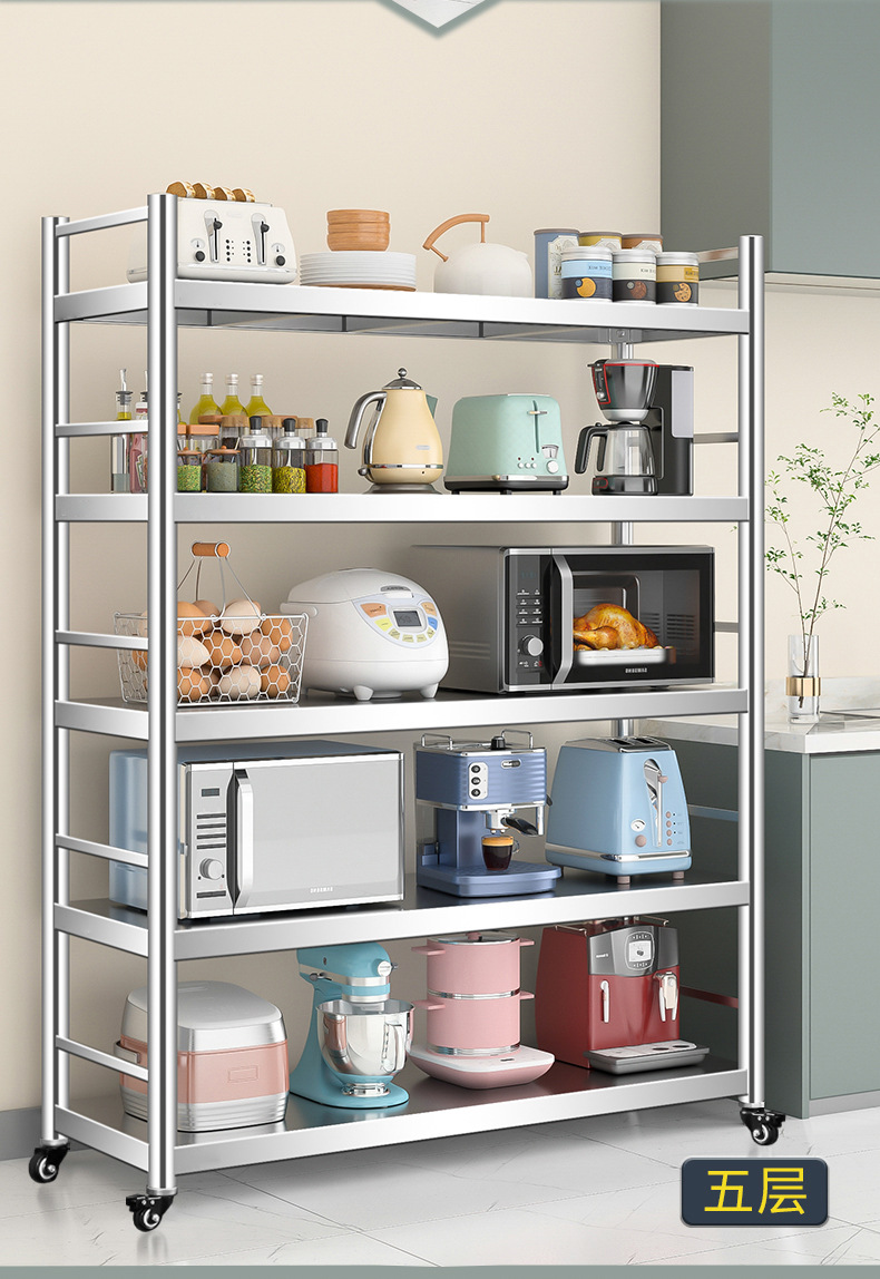 휠 선반이있는 스테인레스 스틸 주방 스토리지 랙 이동식 다층 바닥 다기능 스토리지 랙 스토리지 선반
