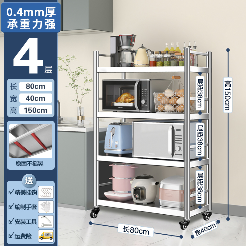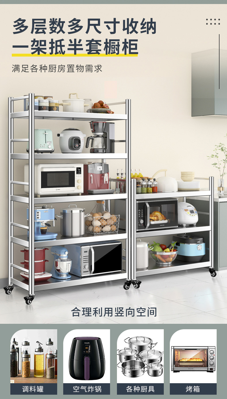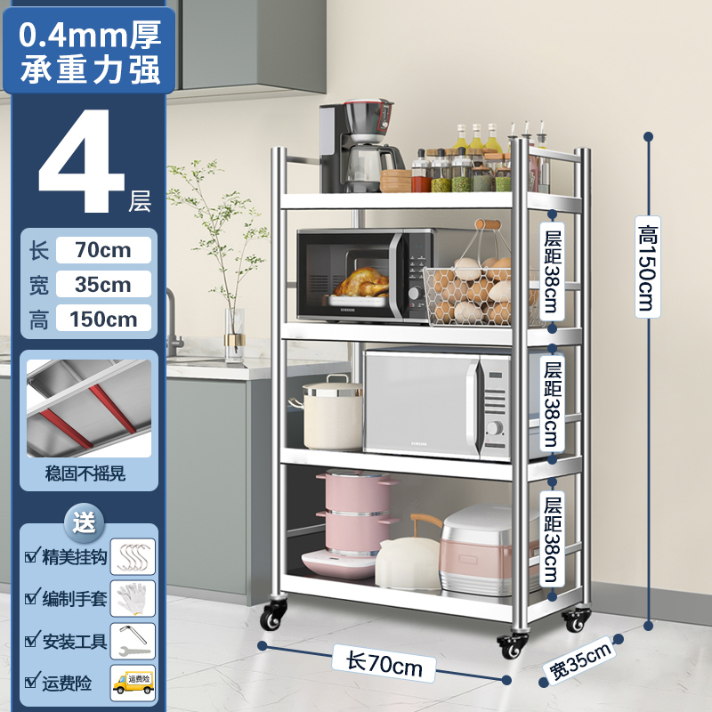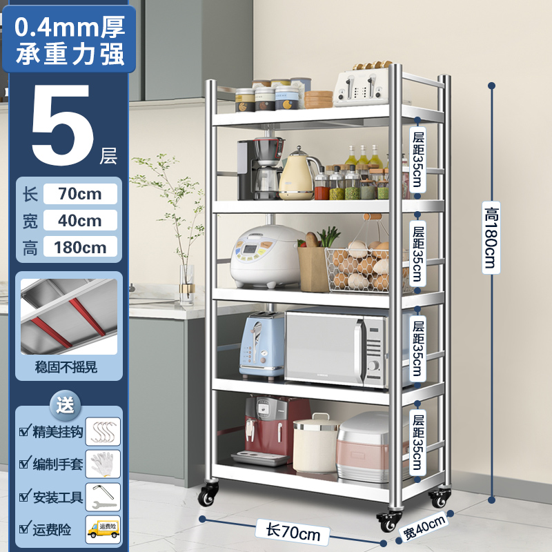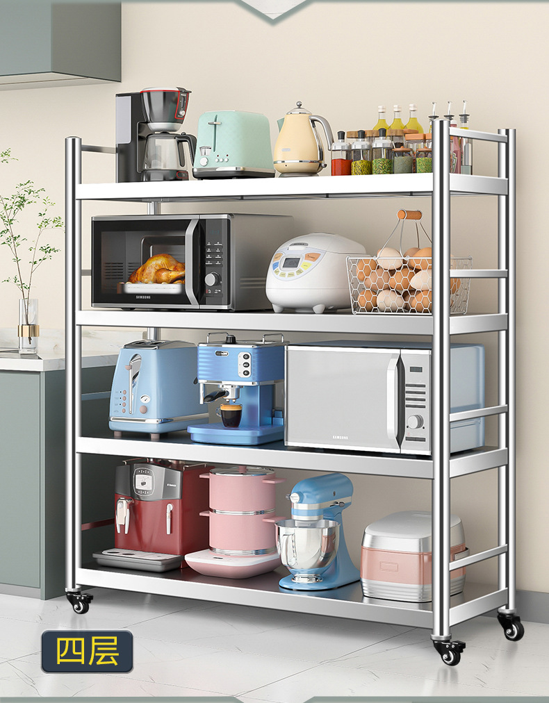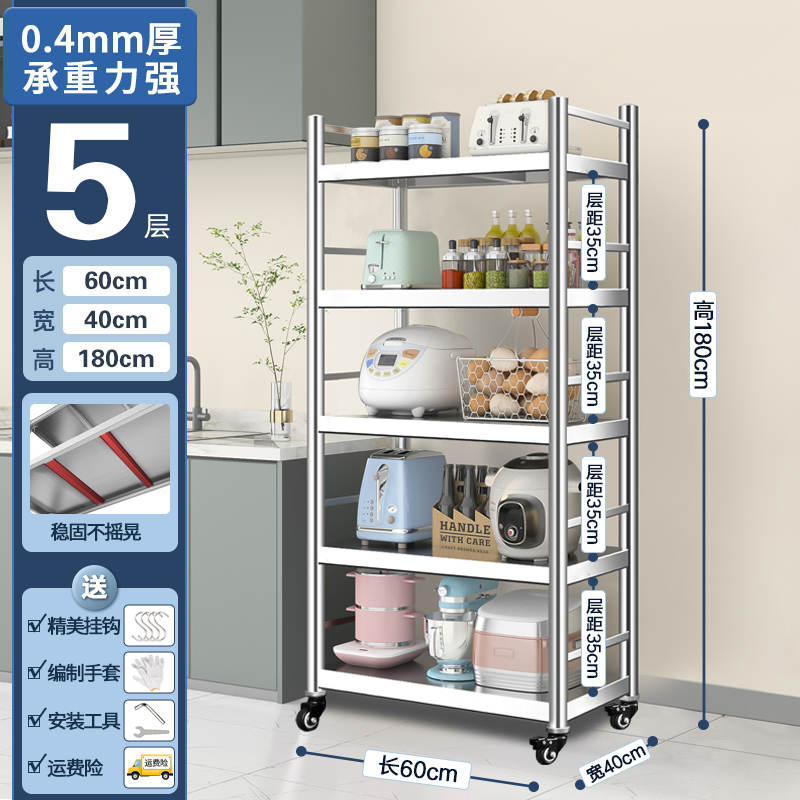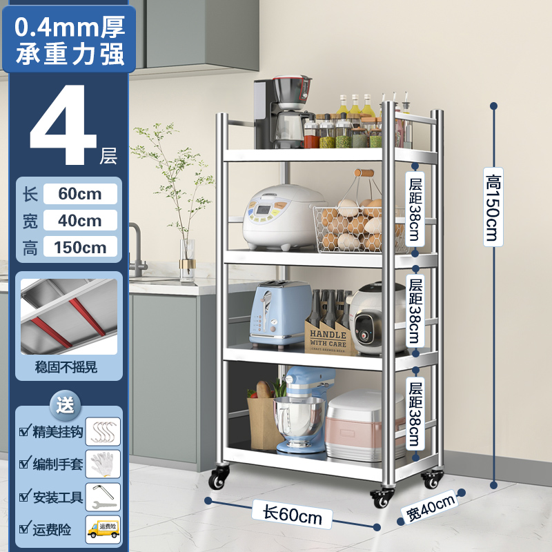 휠 선반이있는 스테인레스 스틸 주방 스토리지 랙 이동식 다층 바닥 다기능 스토리지 랙 스토리지 선반스토어 가기