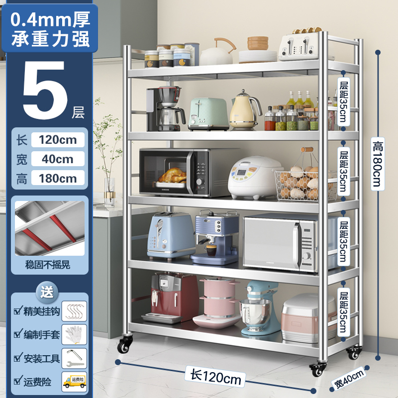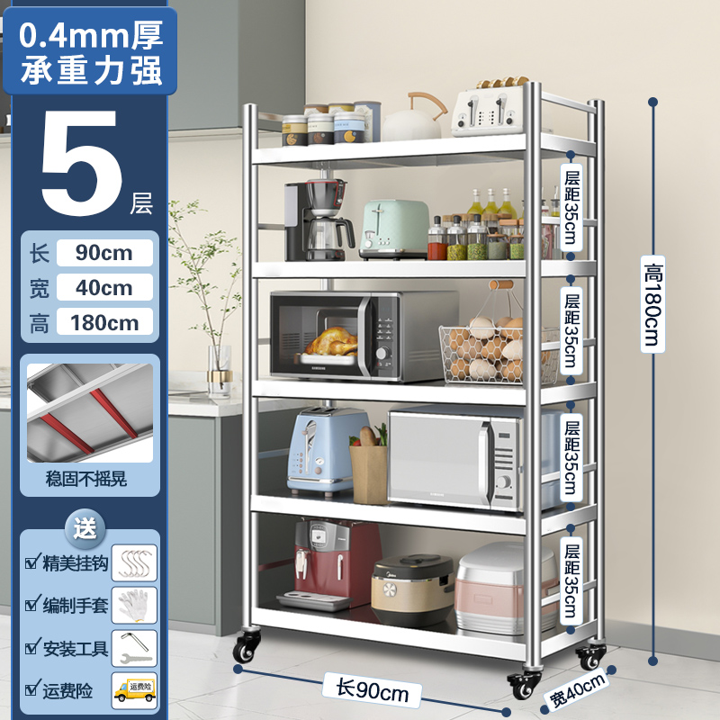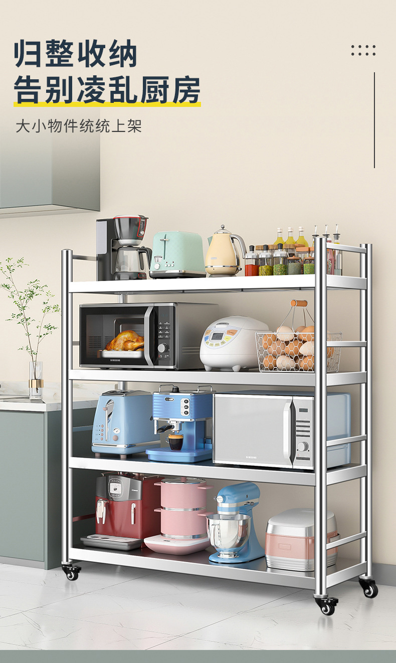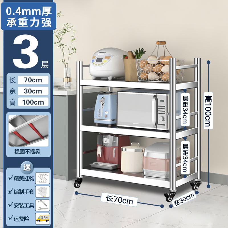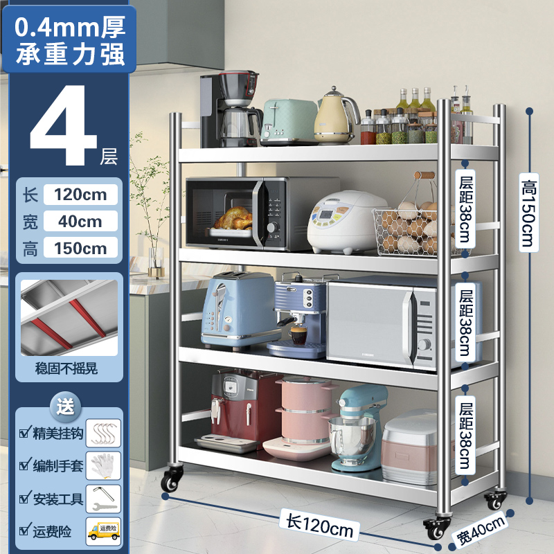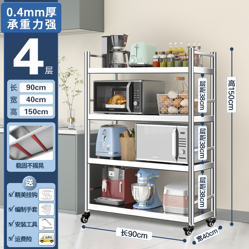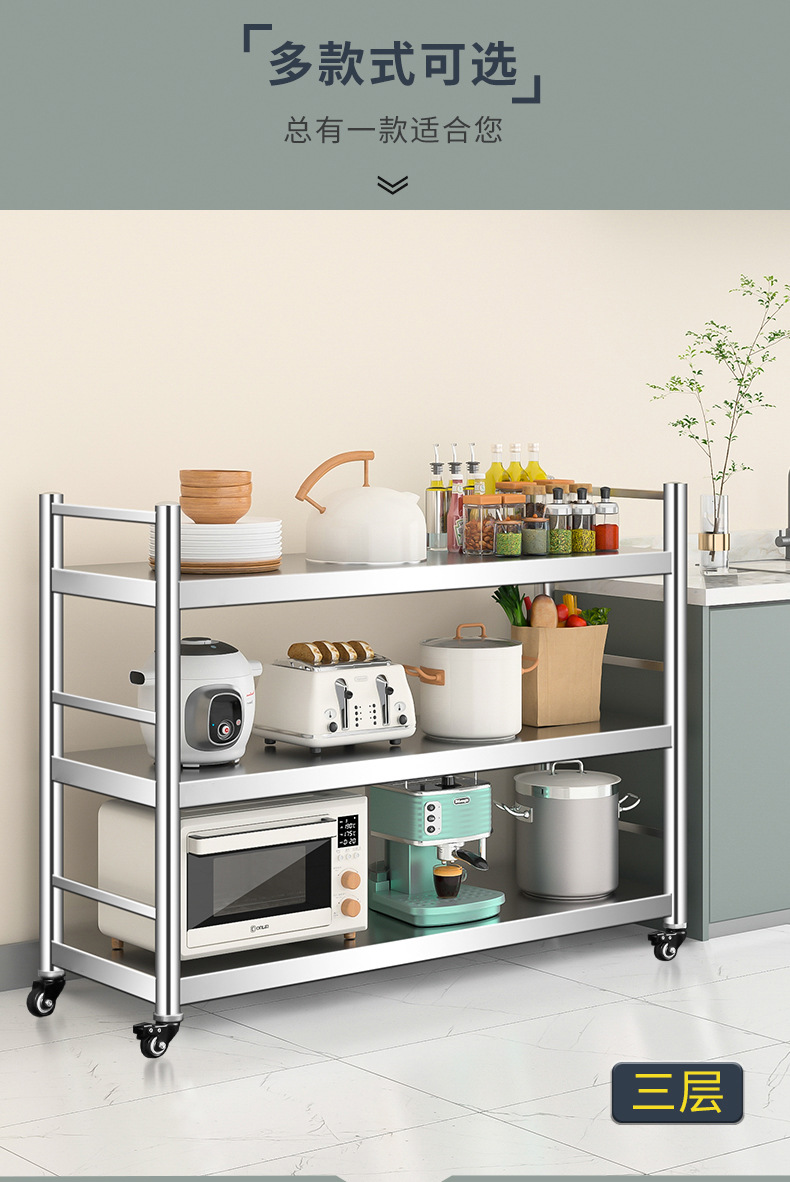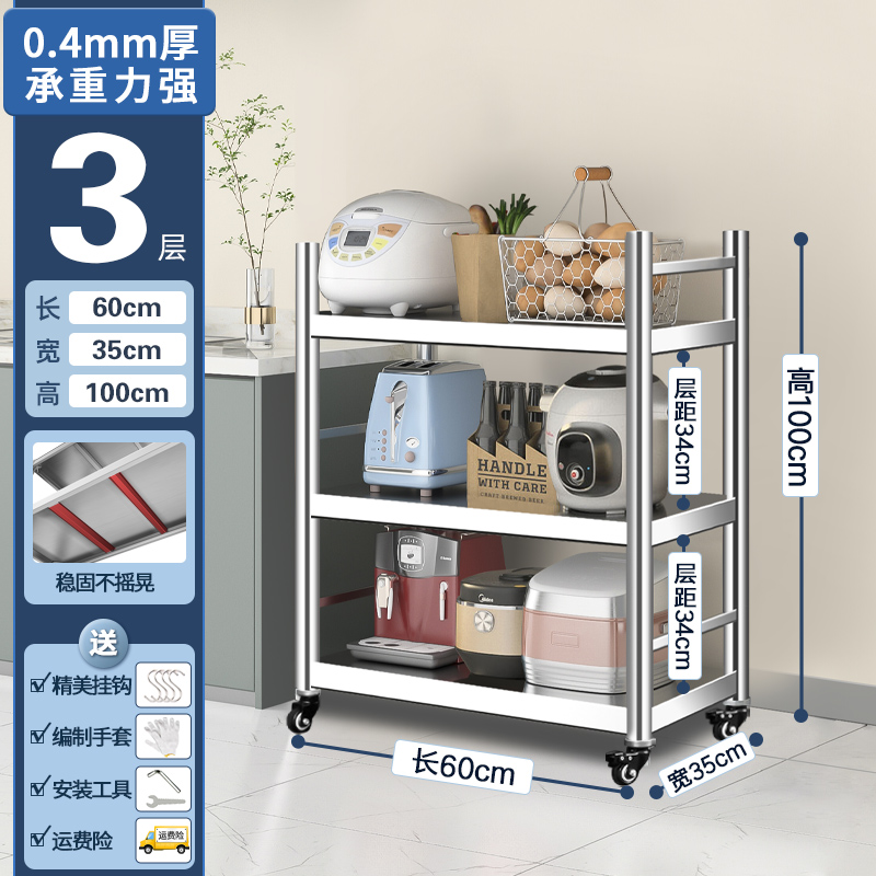 휠 선반이있는 스테인레스 스틸 주방 스토리지 랙 이동식 다층 바닥 다기능 스토리지 랙 스토리지 선반스토어 가기